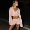 2025 Nuevo Conjunto de Moda Transfronteriza Europea y Americana Deseo Puro Sexy Top de Punto Shorts Casuales Conjunto de Dos Piezas Mujer