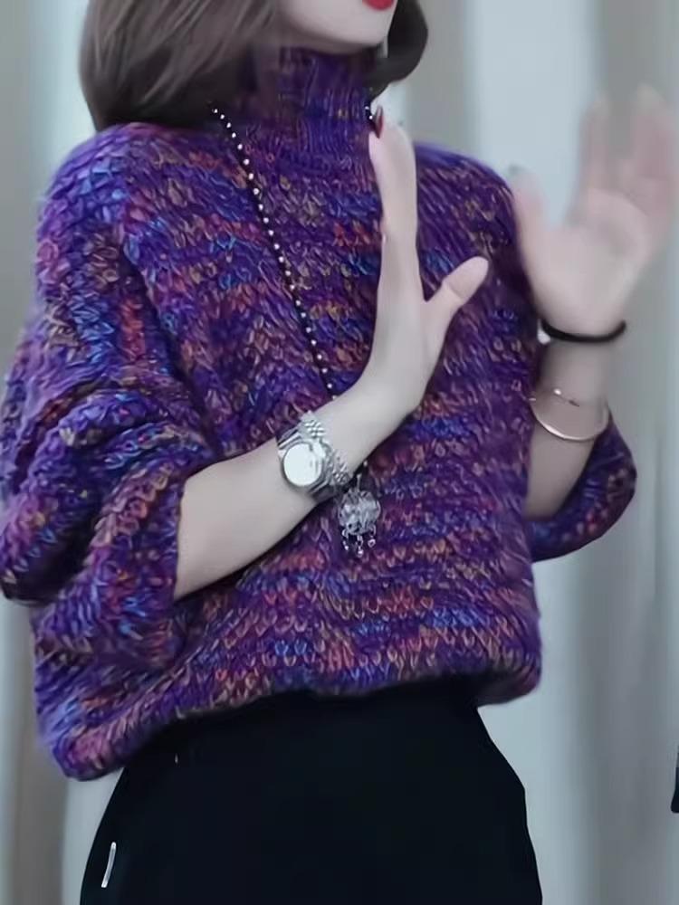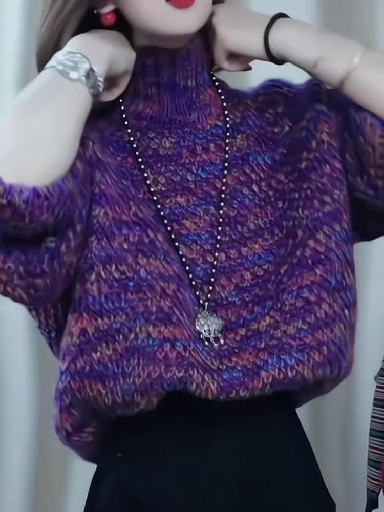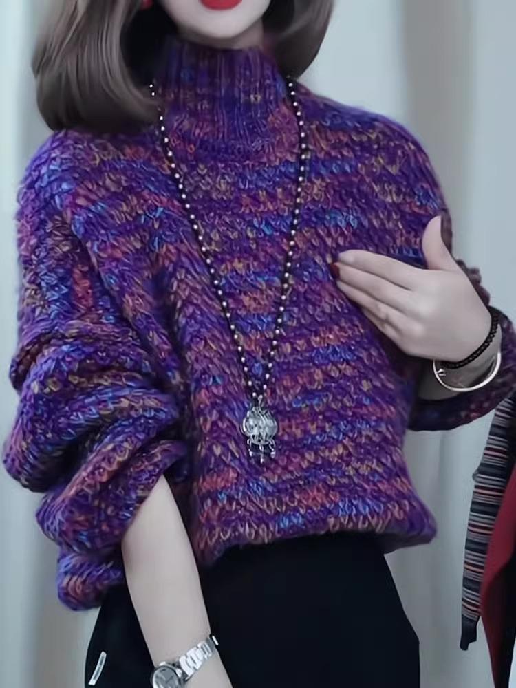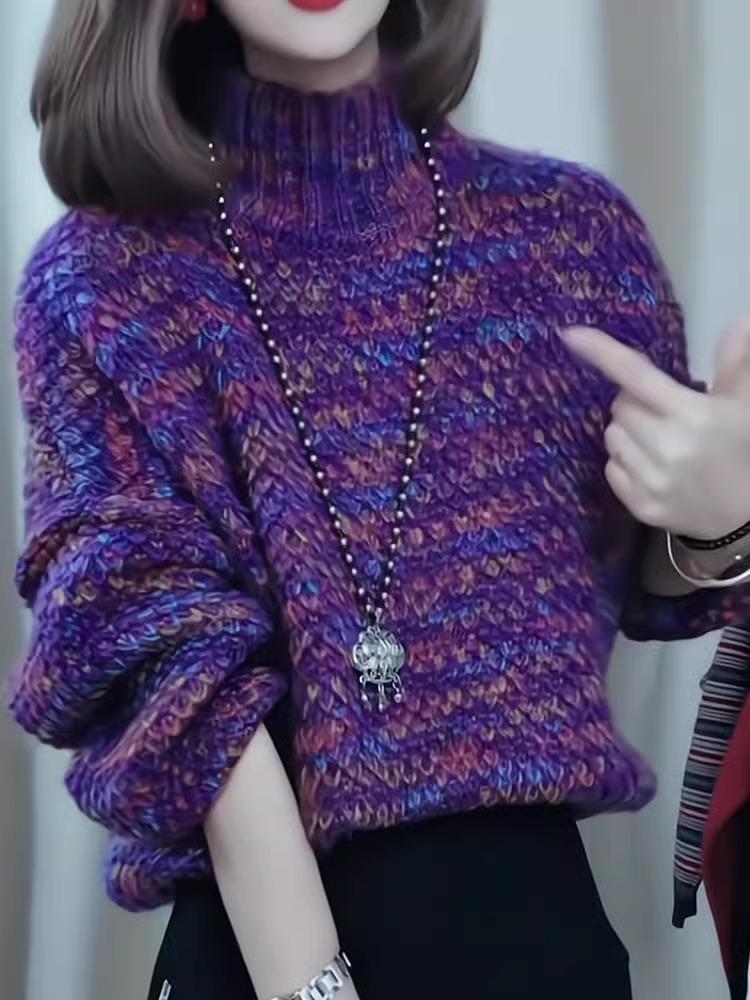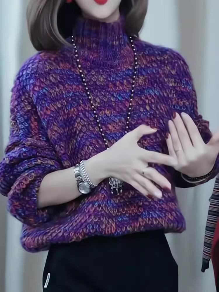Top de moda de alta gama primavera y otoño nuevo estilo de celebridad 2025 nuevo tejido suelto de cuello semi alto colorido