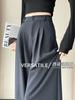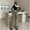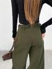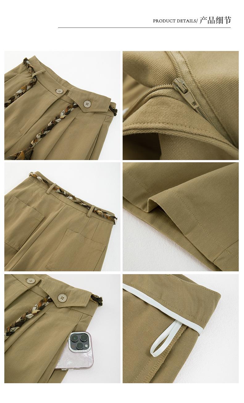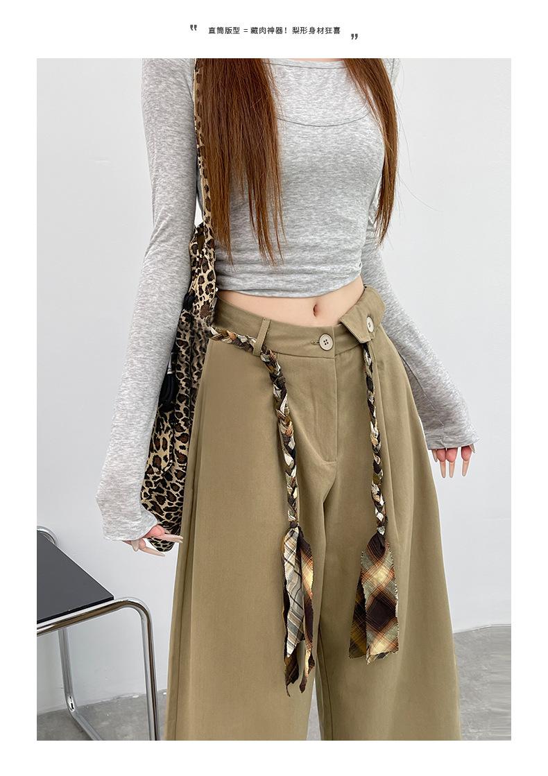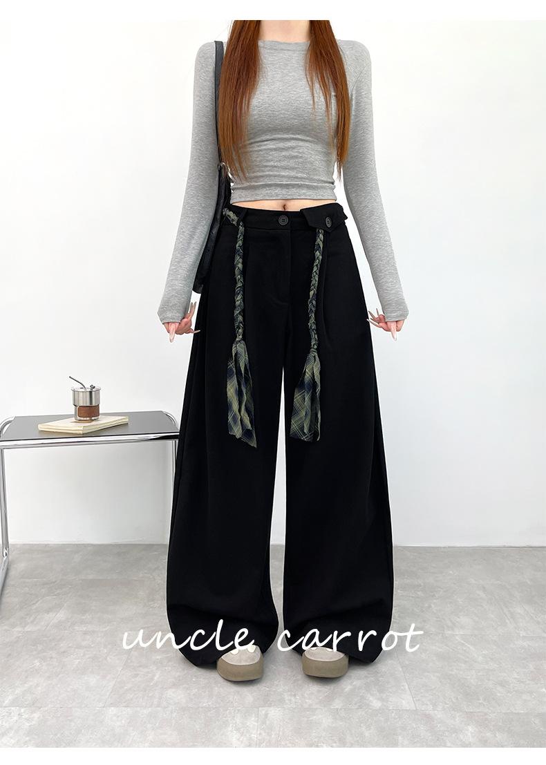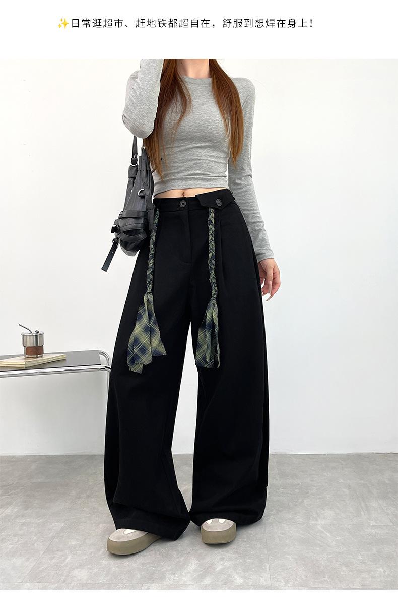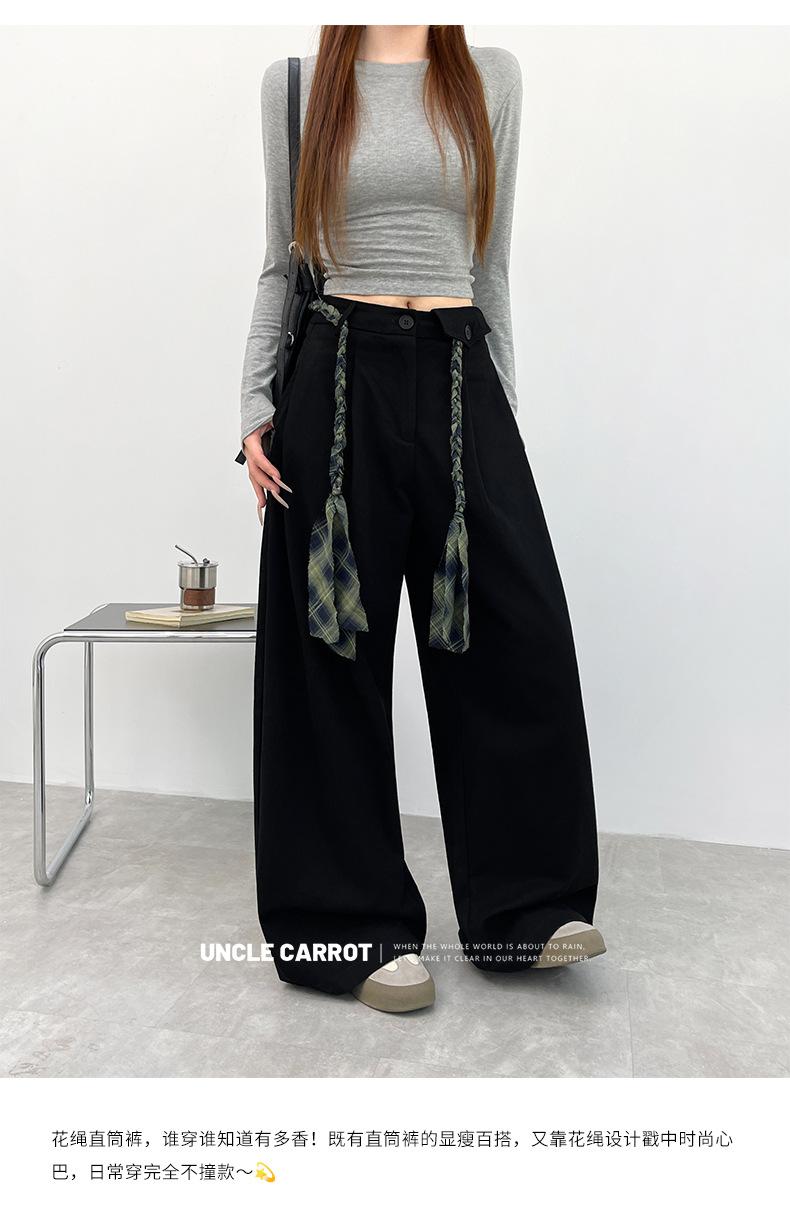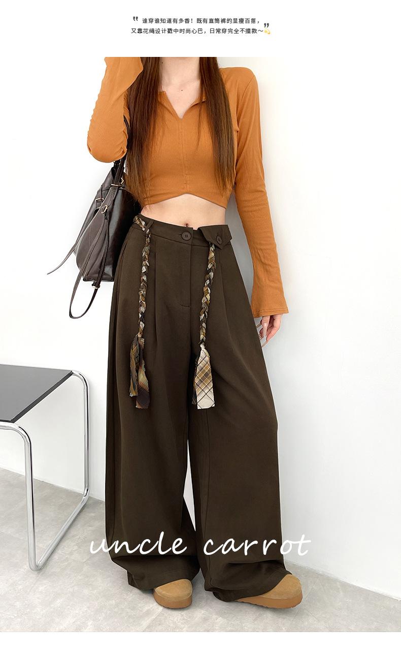 Pantalones de trabajo americanos de algodón lavado para mujer 2025 otoño nuevo diseño de cintura alta sentido de atar retro drapeado pantalones de pierna ancha