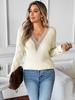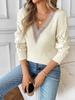 Suéter casual de punto de encaje con cuello en V y costuras cruzadas para Amazon Europa y América, temperamento elegante, manga larga para mujer