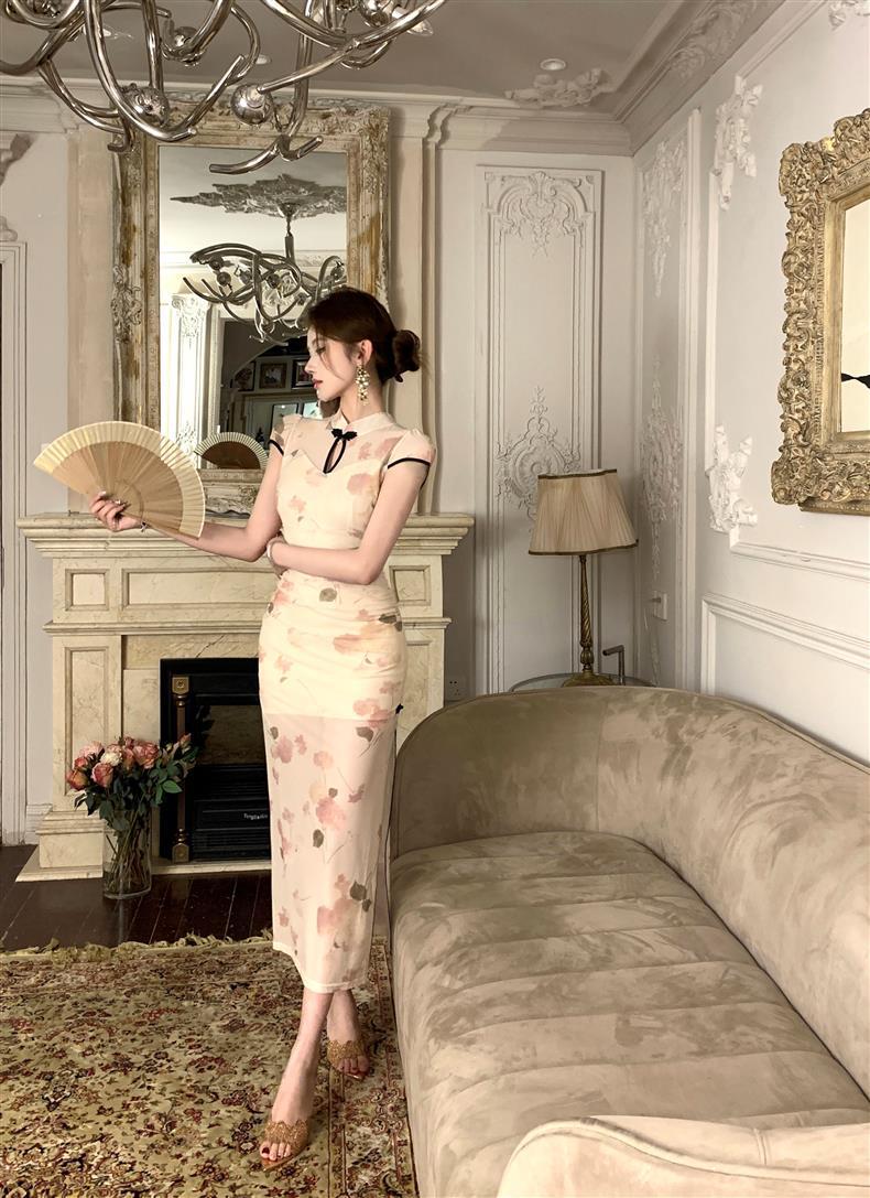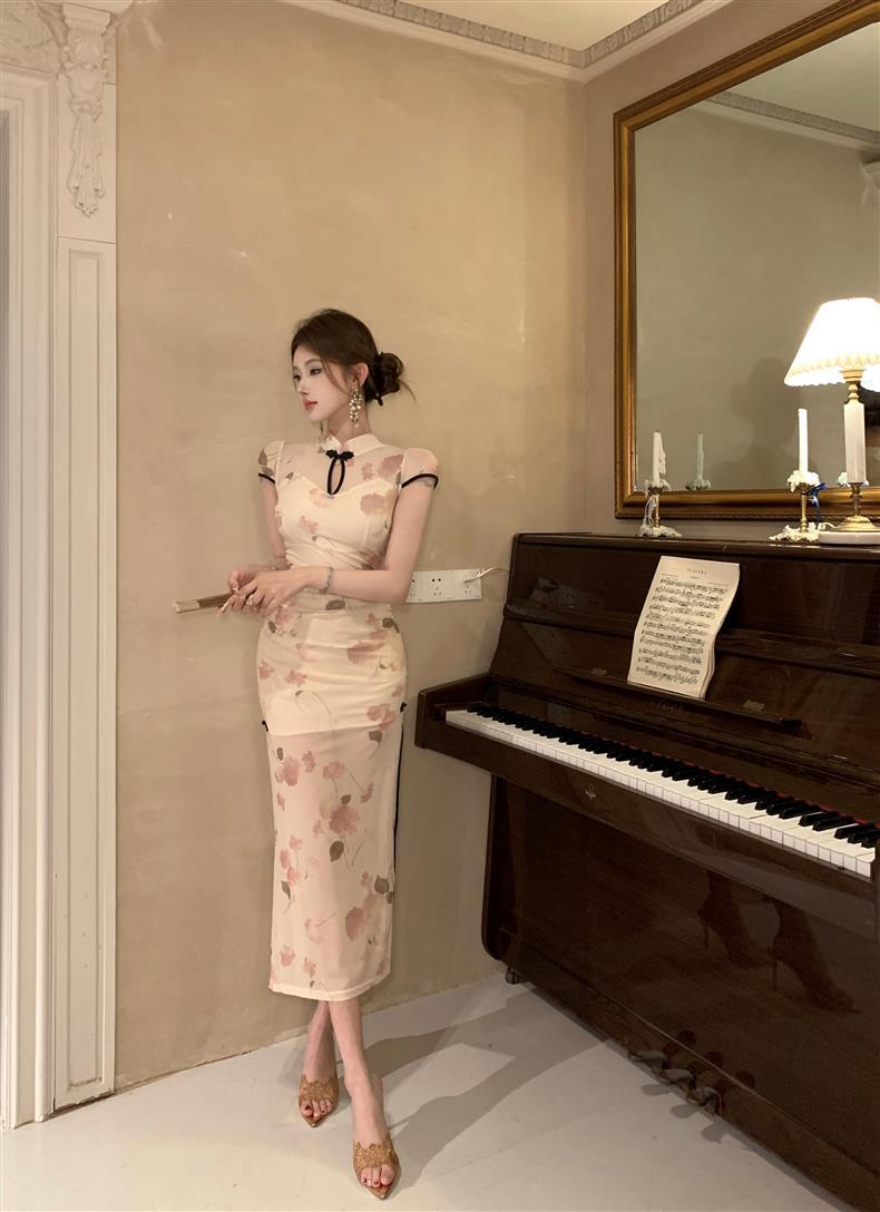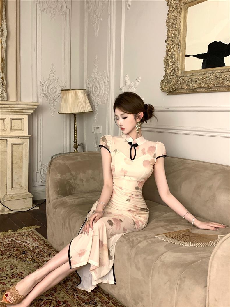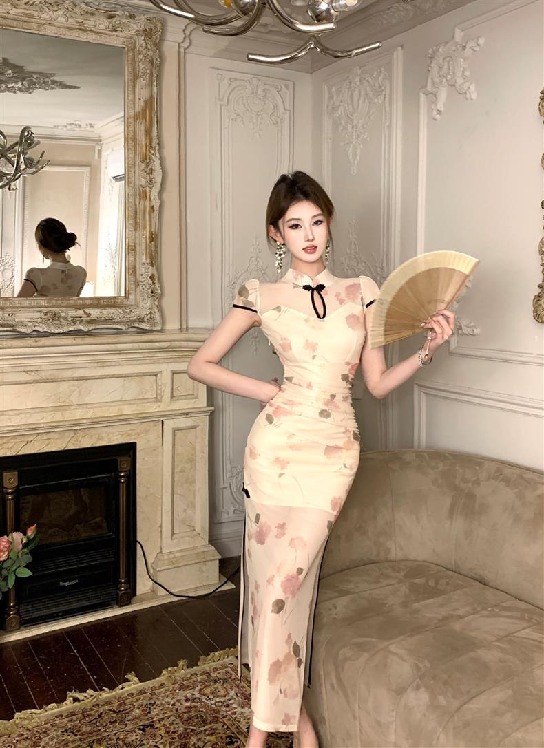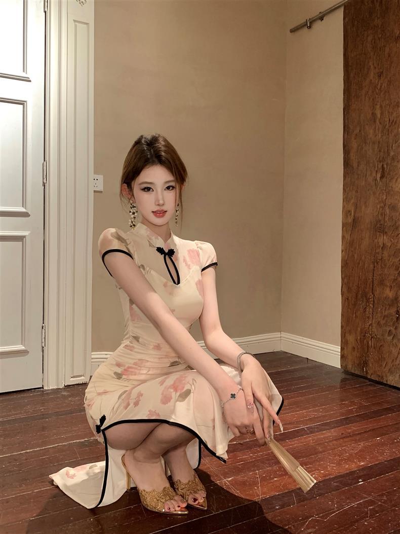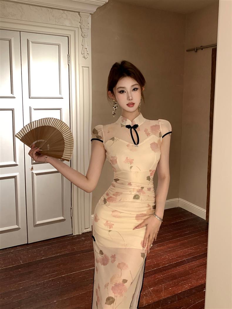 Vestido de Noche Nuevo Temperamento 2025 Vestido Sexy Adelgazante de Alta Gama Diseño de Abertura Retro Ceñido a la Cintura