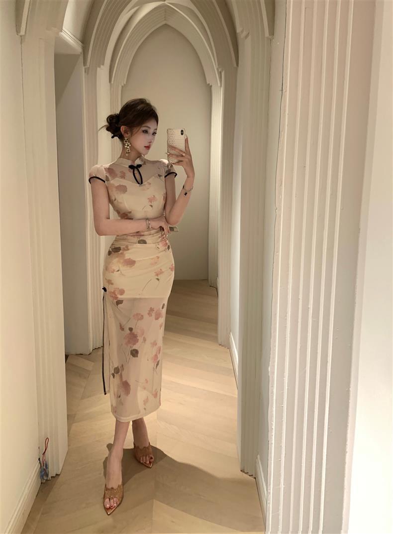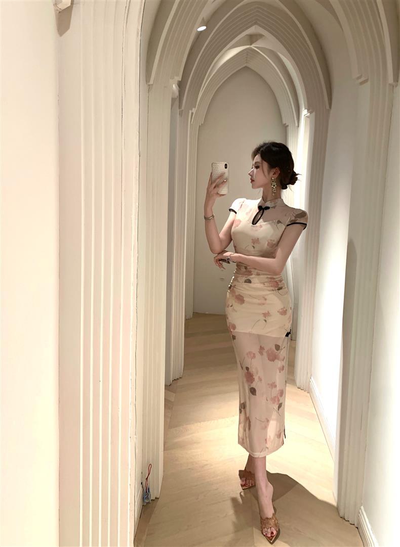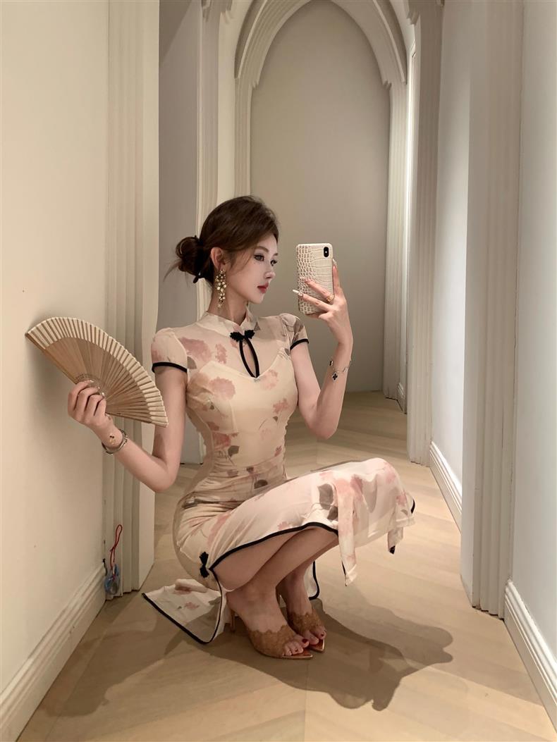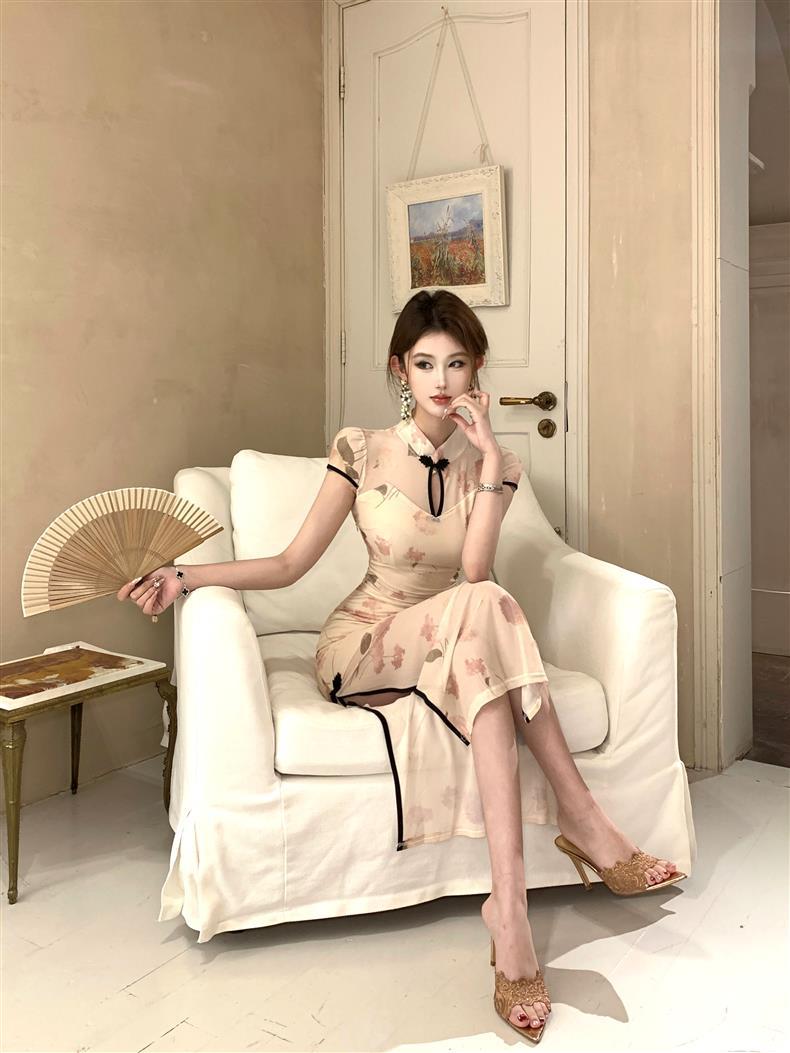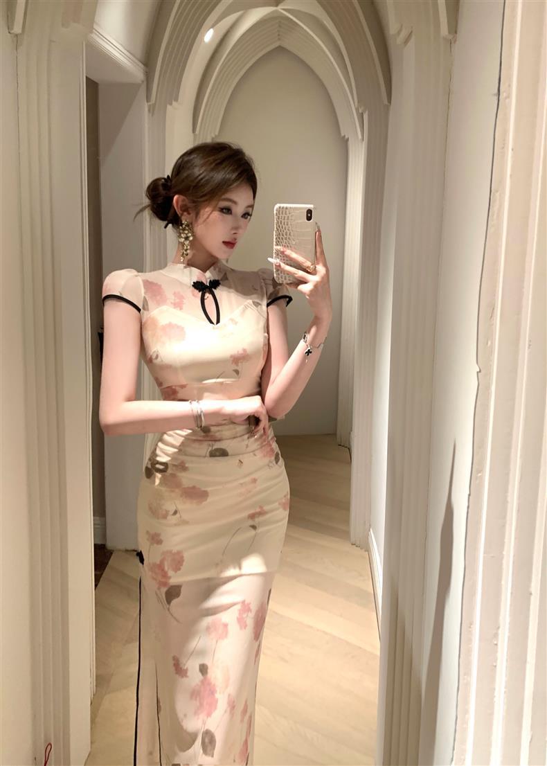 Vestido de Noche Nuevo Temperamento 2025 Vestido Sexy Adelgazante de Alta Gama Diseño de Abertura Retro Ceñido a la Cintura