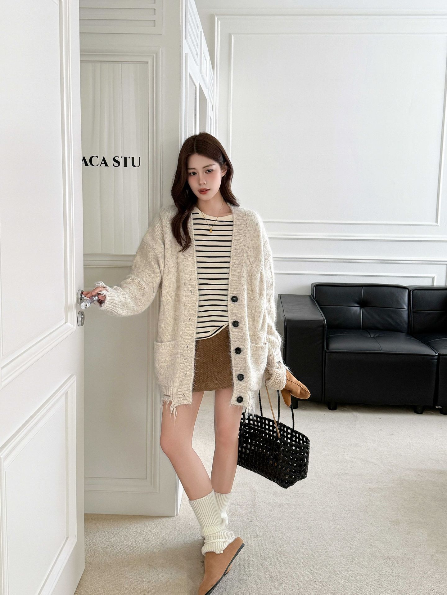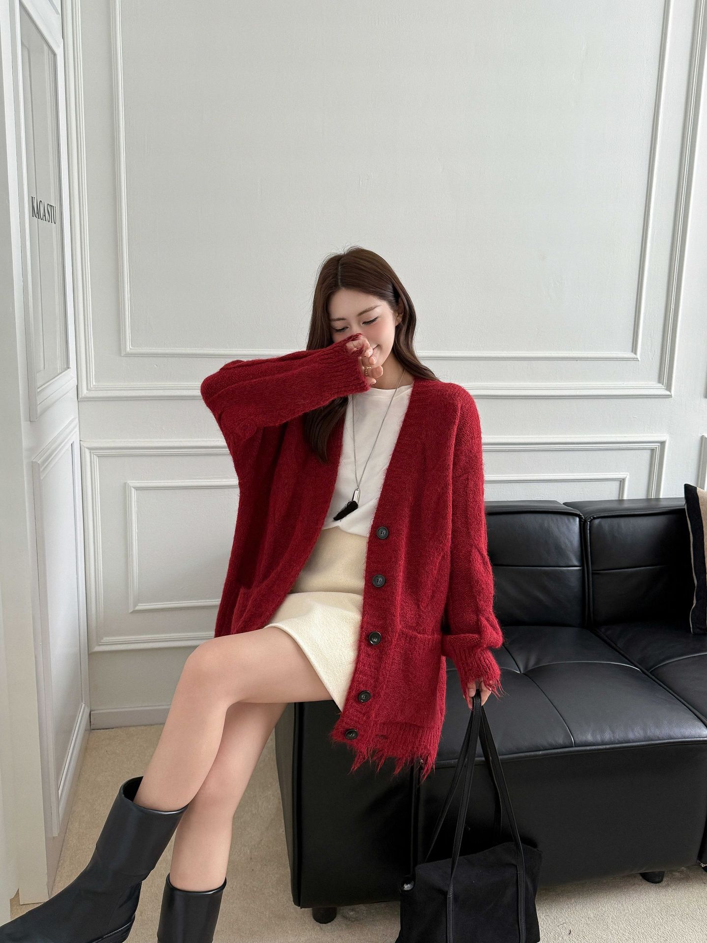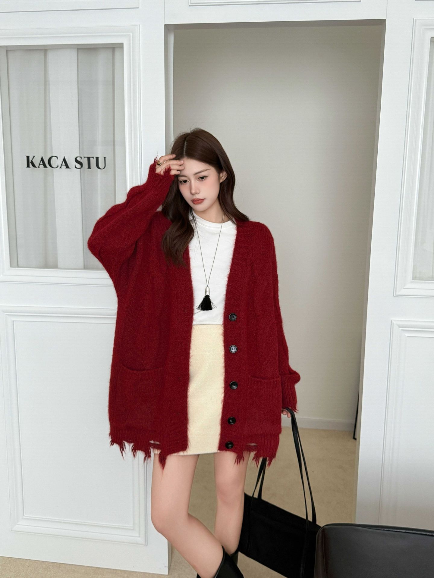 Nuevo Cárdigan de Punto Holgado y Perezoso Estilo Coreano Otoño/Invierno para Mujer, Diseño con Aberturas, Casual, Suéter Abrigo para Comercio Exterior Transfronterizo