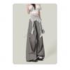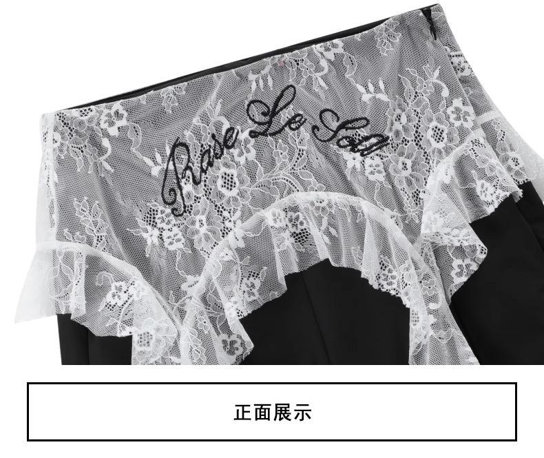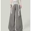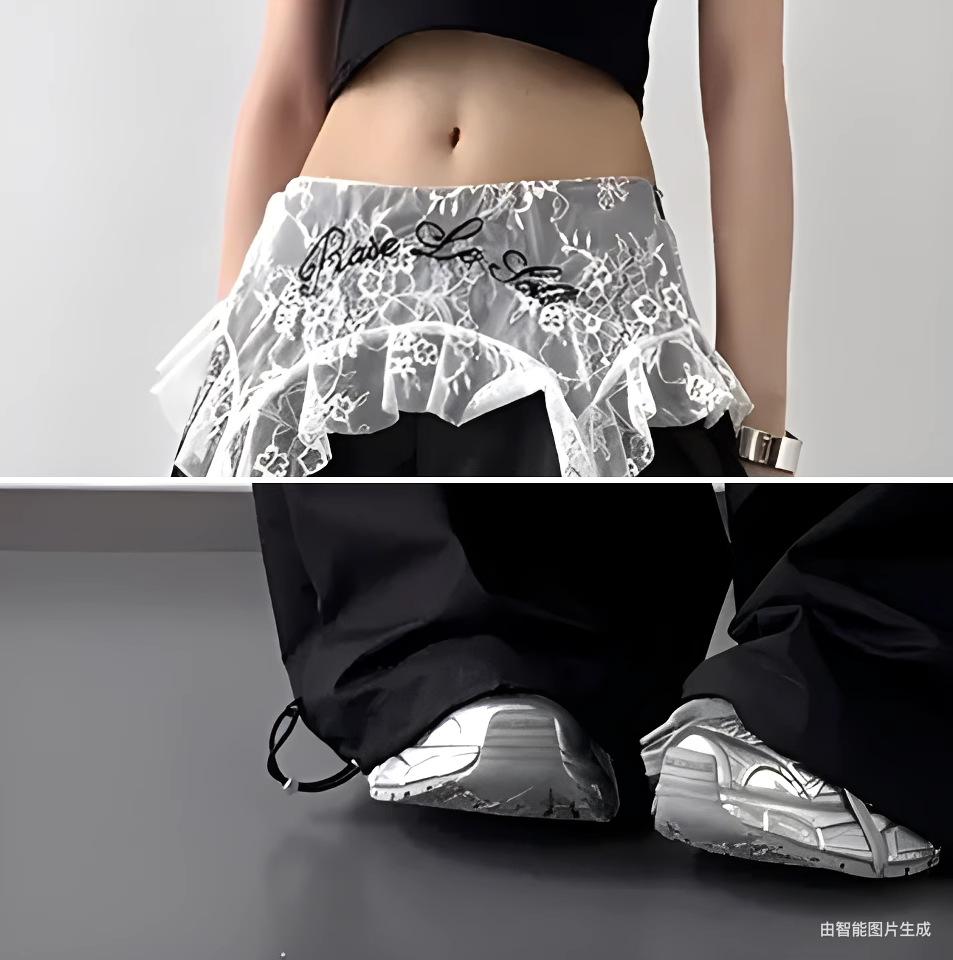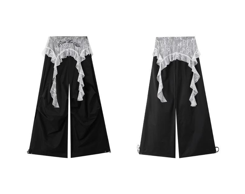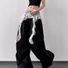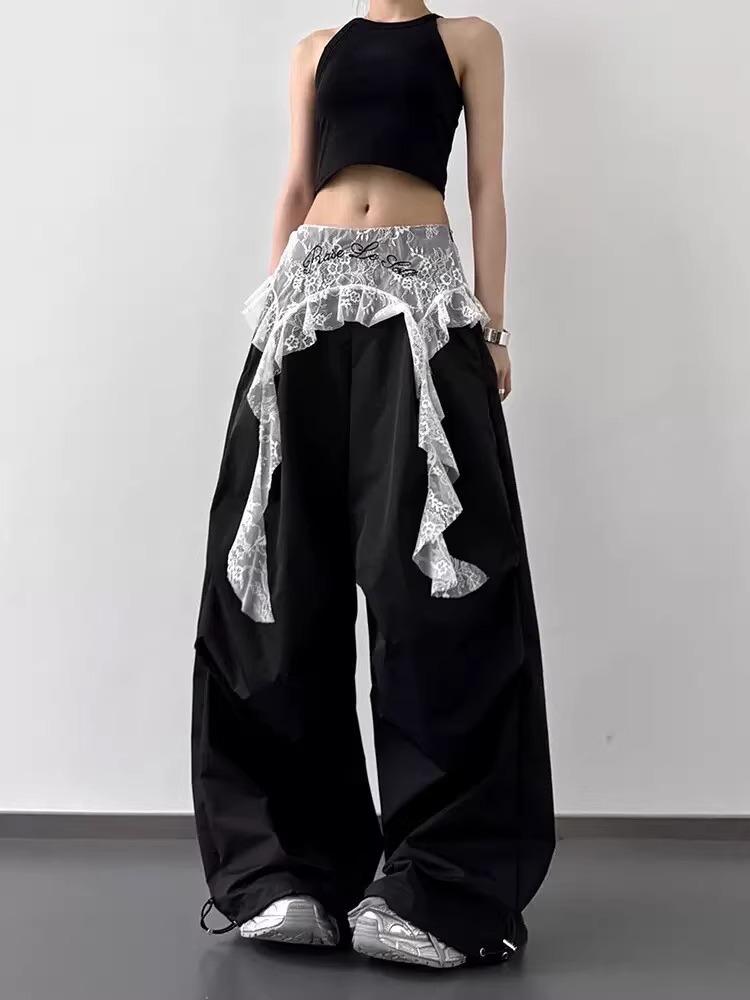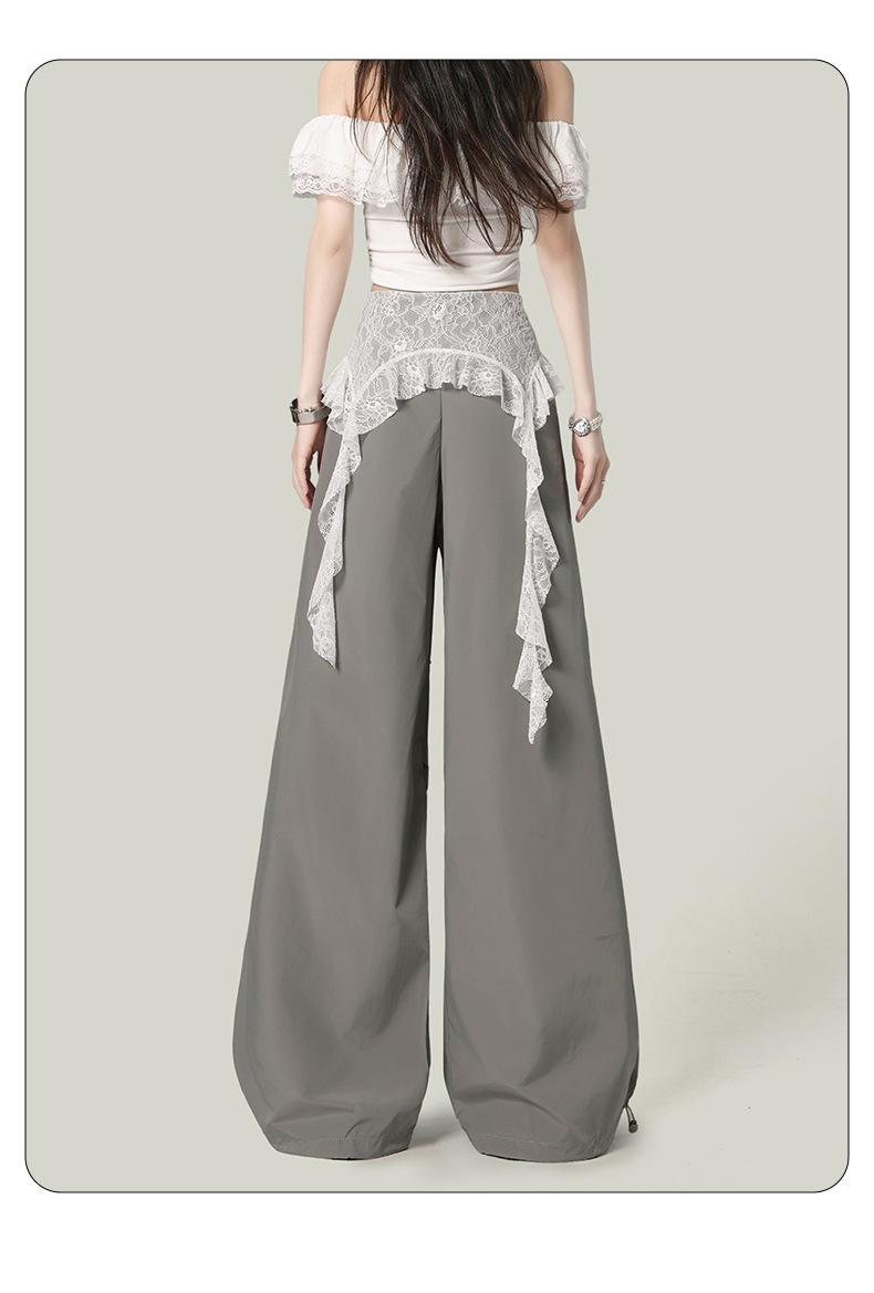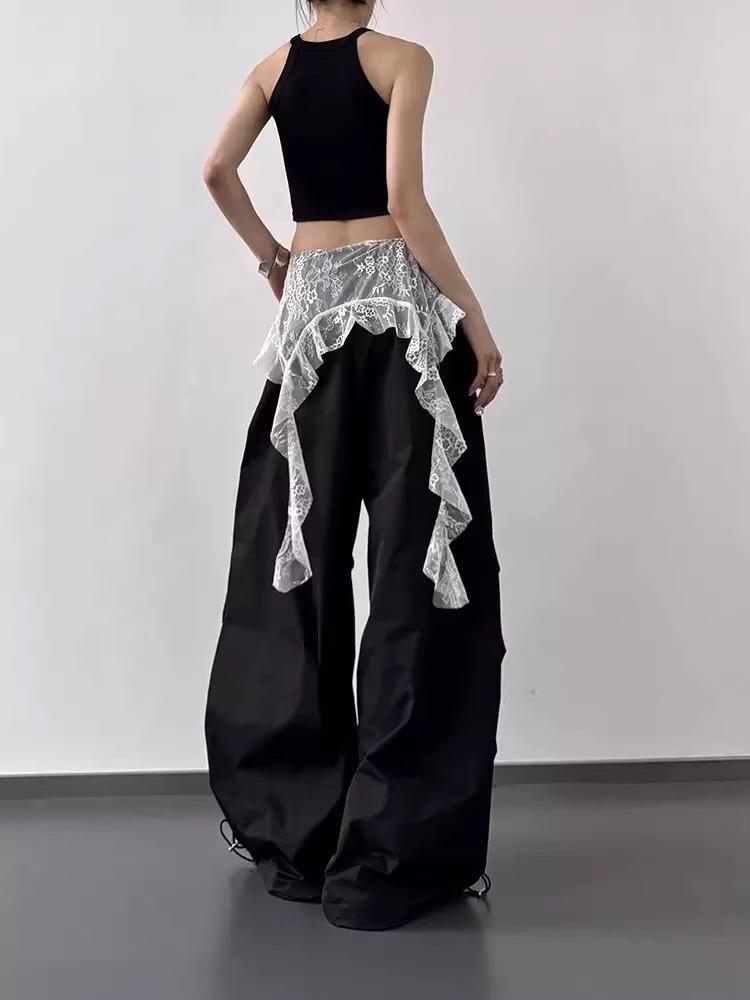 2025 Nuevo Verano Versátil Encaje Patchwork Suelto Casual Falso Dos Piezas Cargo Pierna Ancha Pantalones Largos Tendencia de Mujer