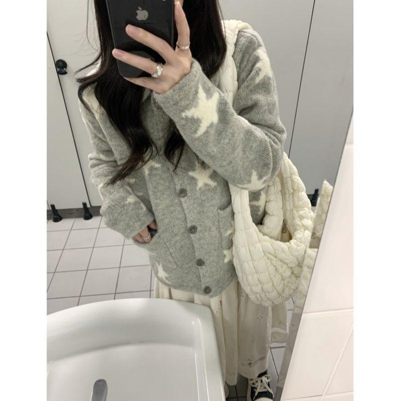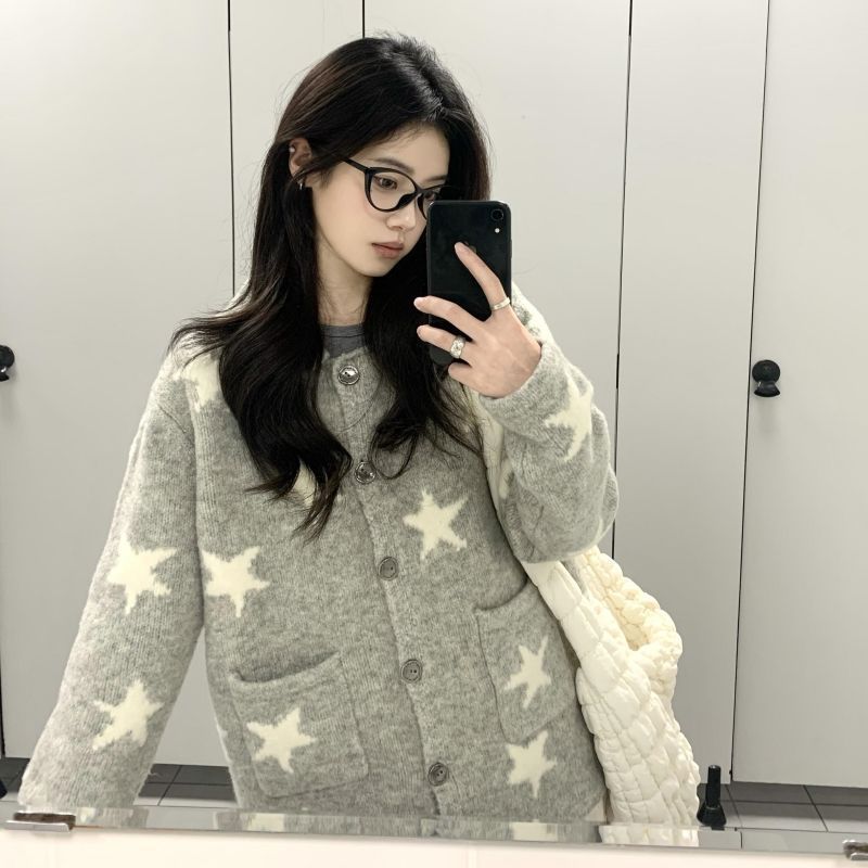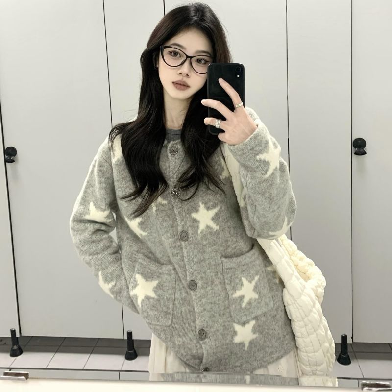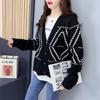 Nuevo Abrigo Suéter Jacquard Retro de Primavera y Otoño con Cuello Vuelto para Mujer, Cárdigan de Punto Suave y Dulce de Primavera y Otoño, Top Versátil en Tendencia