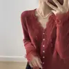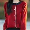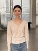 Camiseta base de encaje empalmada cárdigan de manga larga suéter top de primavera y otoño mujer top de punto francés mujer a la moda