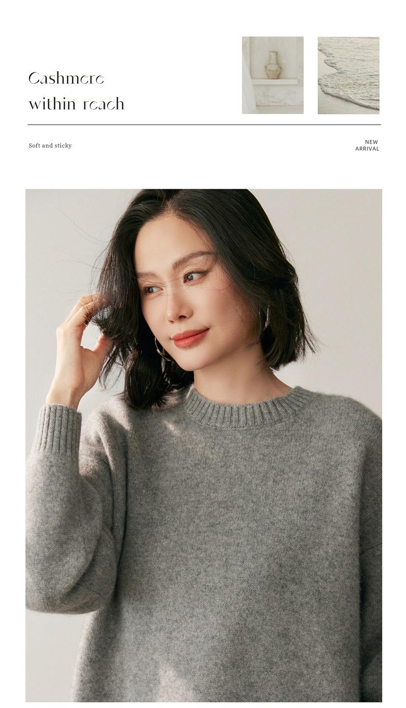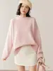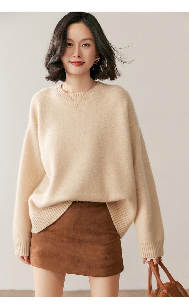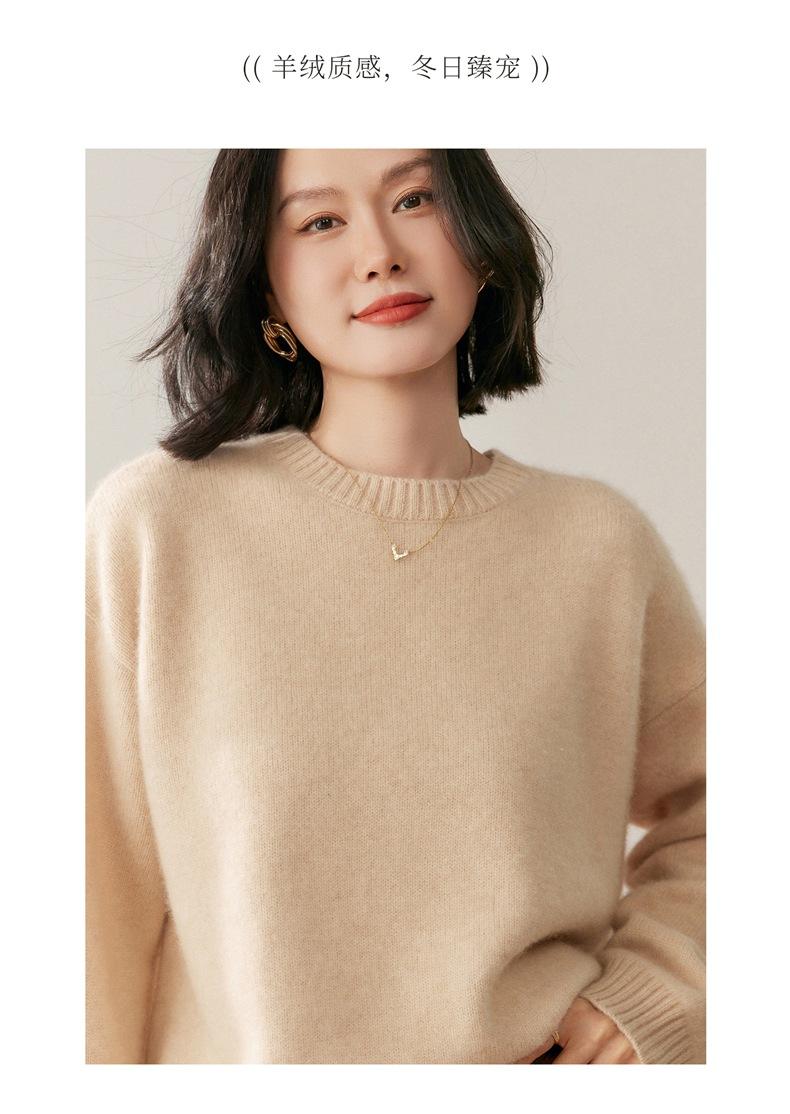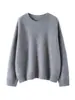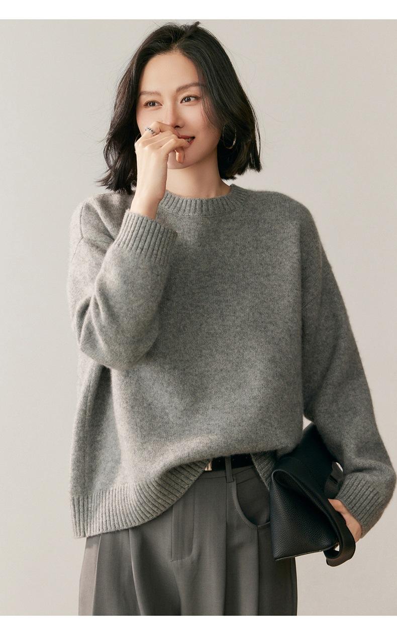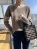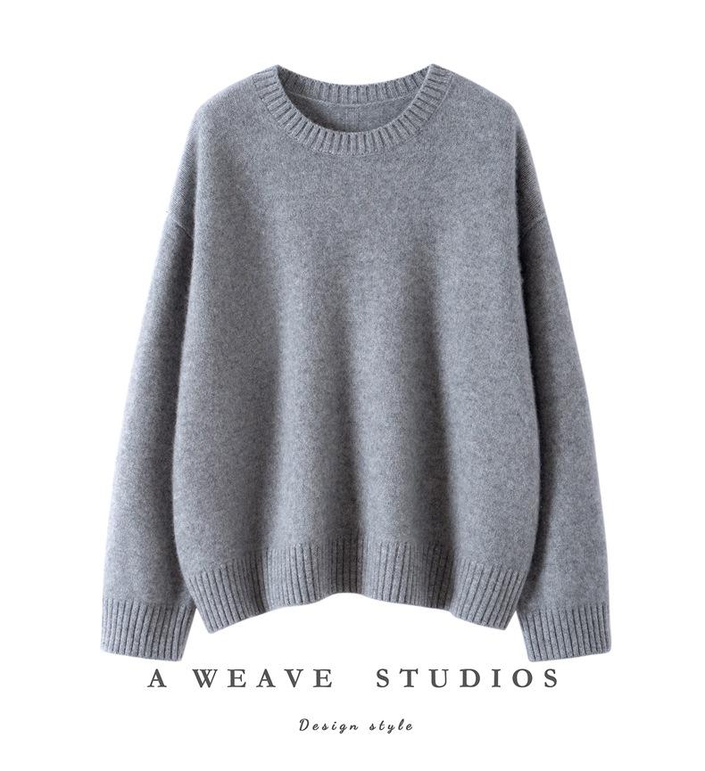 Nuevo Suéter de Cachemira Grueso de Otoño e Invierno para Mujer Cuello Redondo Holgado Tejido de Manga Larga Suéter Corto Camiseta Base Top