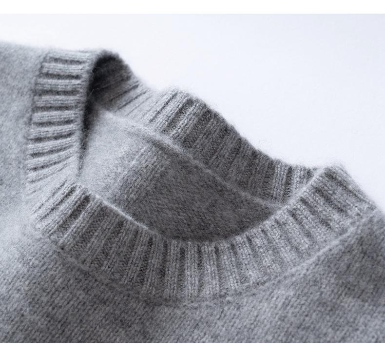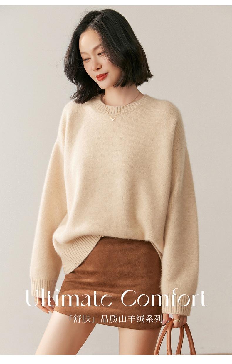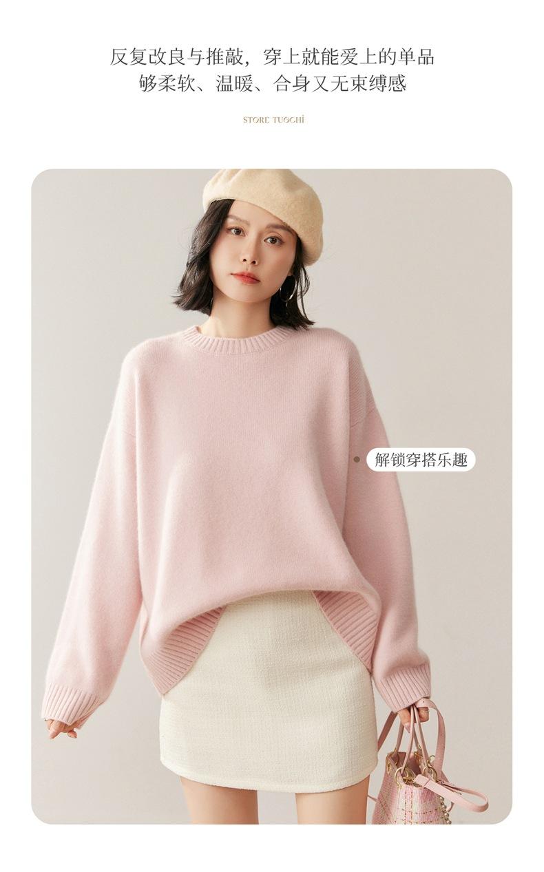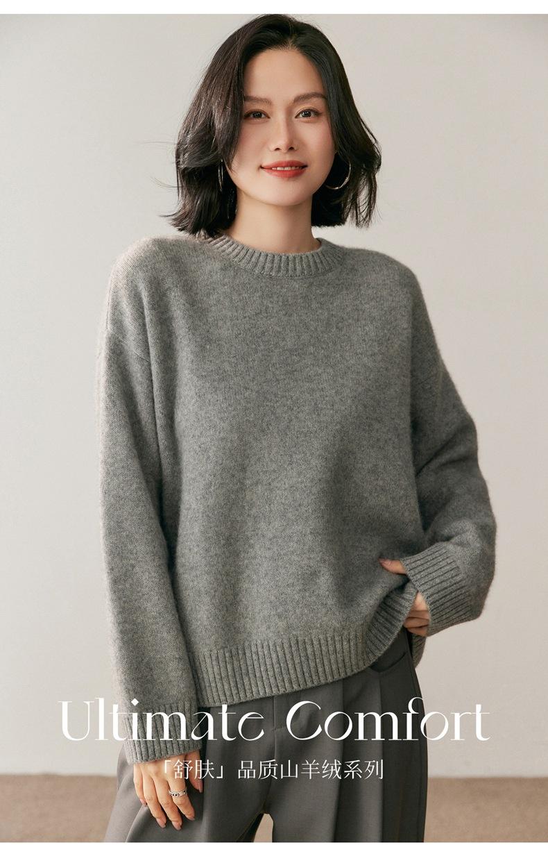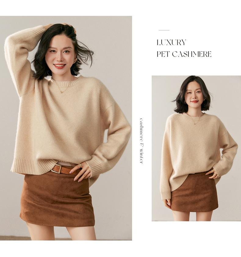 Nuevo Suéter de Cachemira Grueso de Otoño e Invierno para Mujer Cuello Redondo Holgado Tejido de Manga Larga Suéter Corto Camiseta Base Top