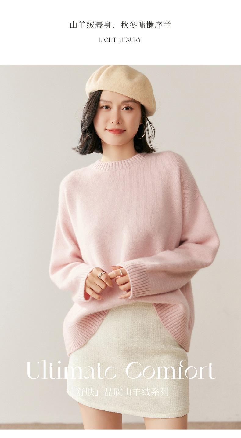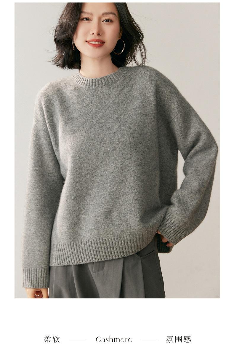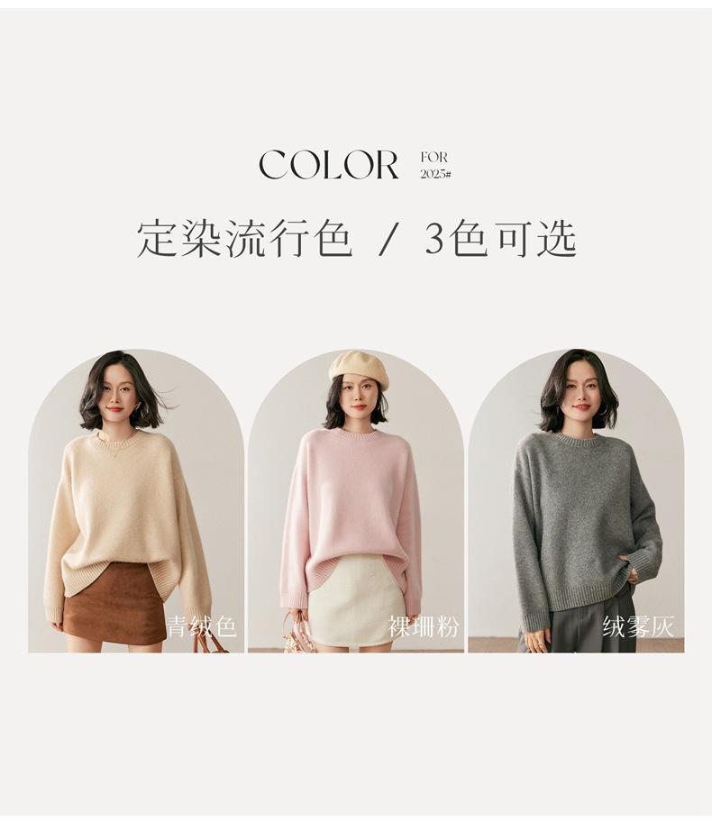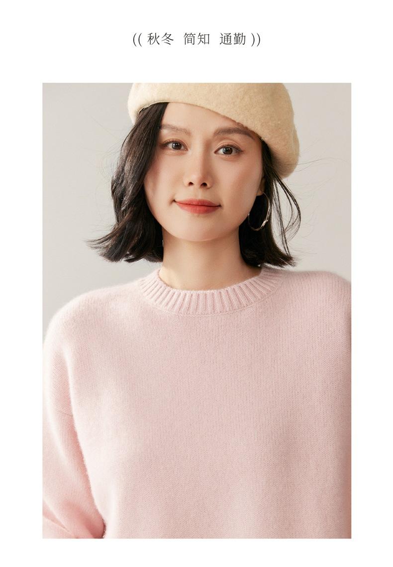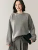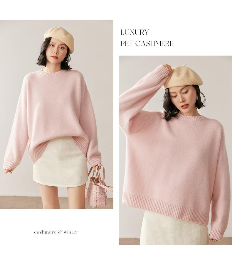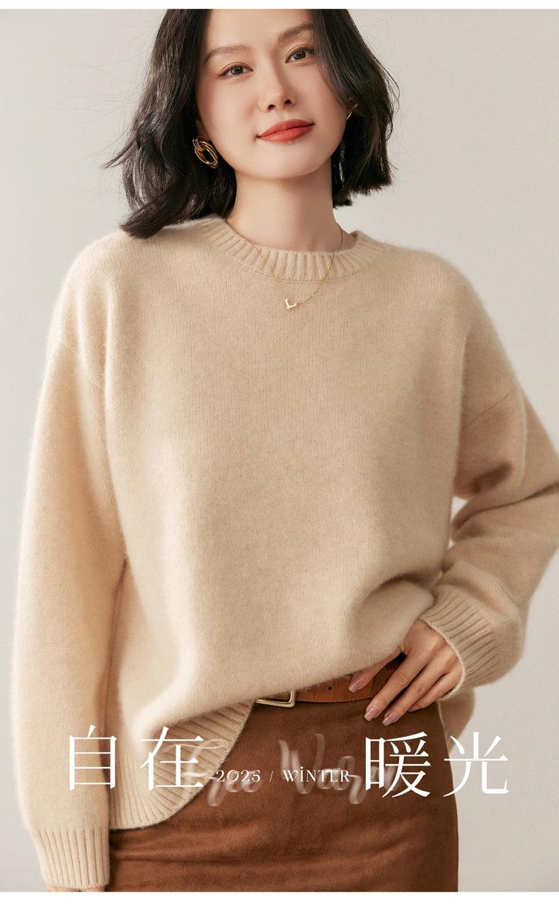 Nuevo Suéter de Cachemira Grueso de Otoño e Invierno para Mujer Cuello Redondo Holgado Tejido de Manga Larga Suéter Corto Camiseta Base Top