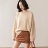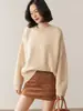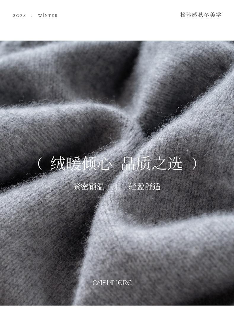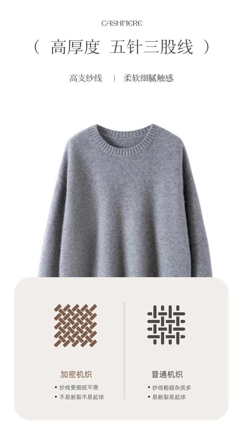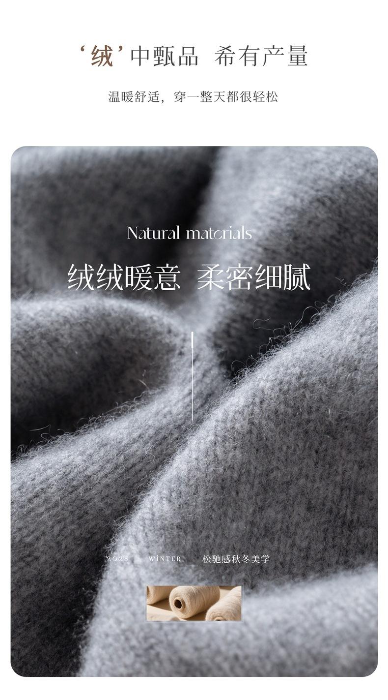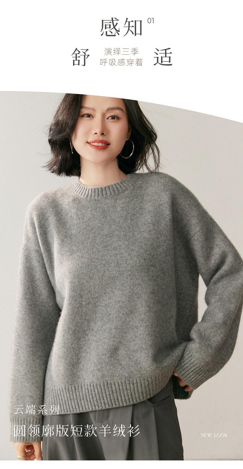 Nuevo Suéter de Cachemira Grueso de Otoño e Invierno para Mujer Cuello Redondo Holgado Tejido de Manga Larga Suéter Corto Camiseta Base Top