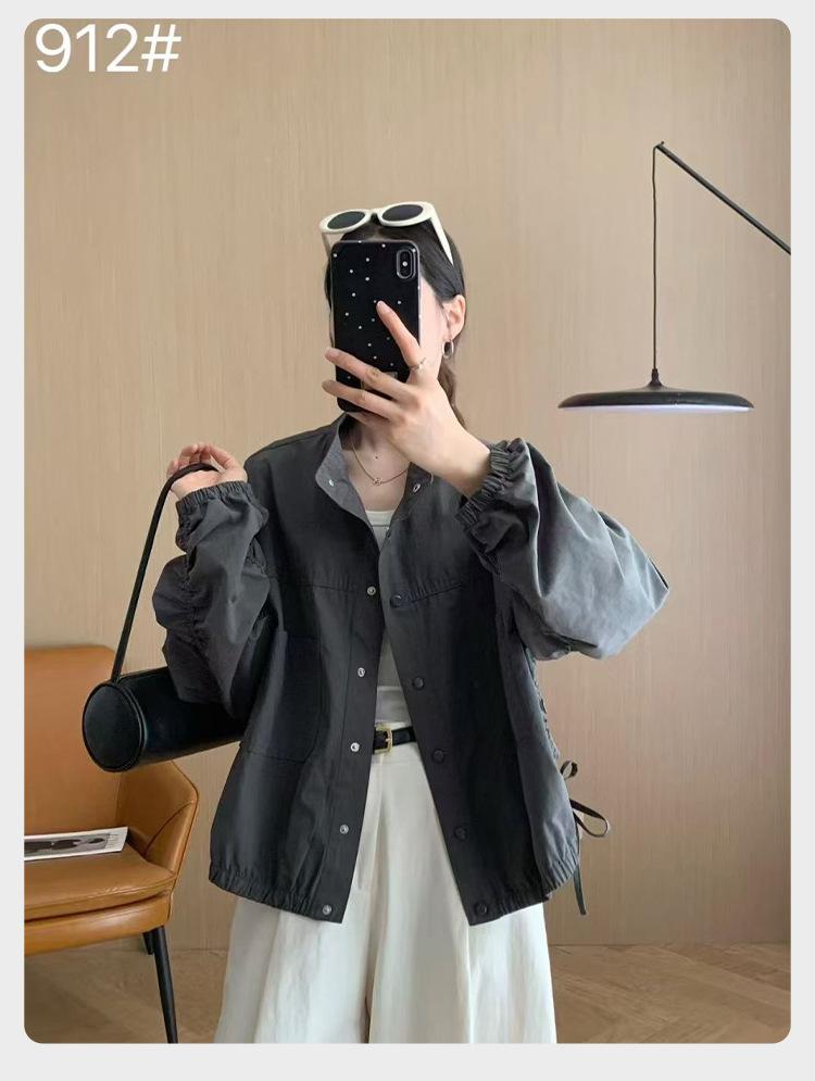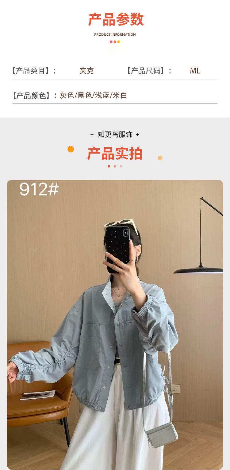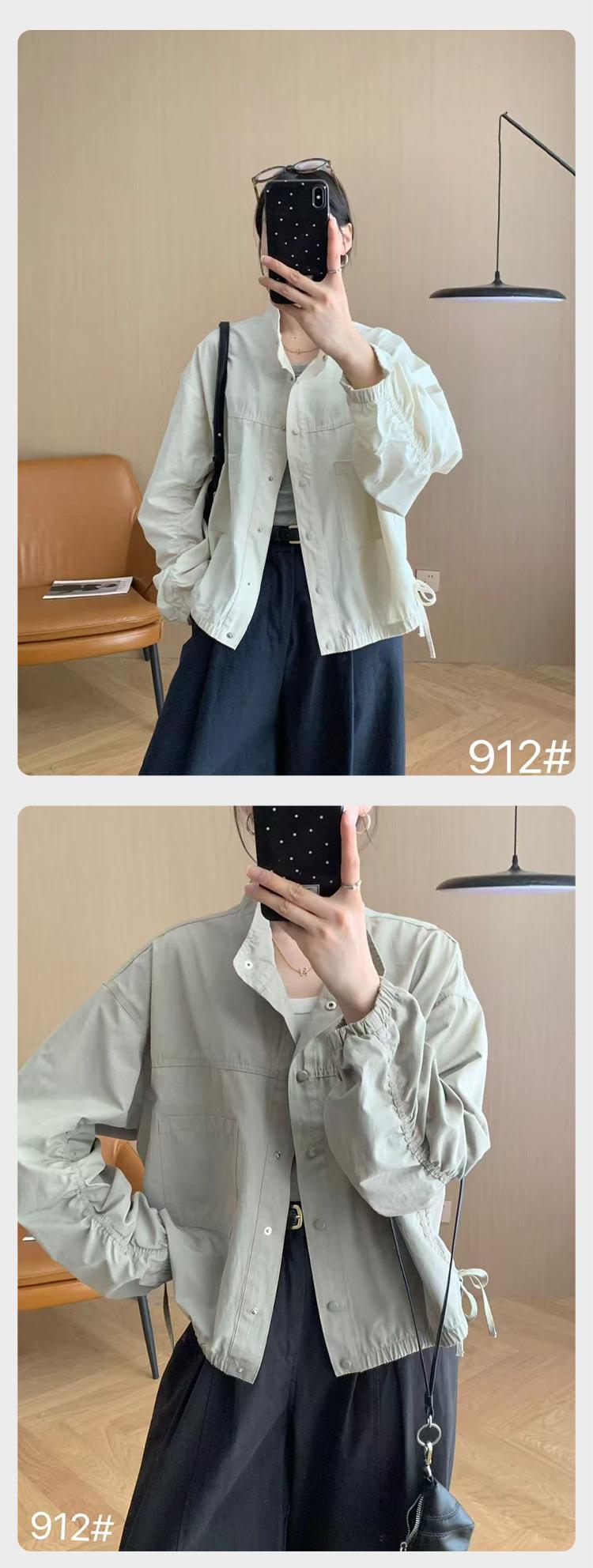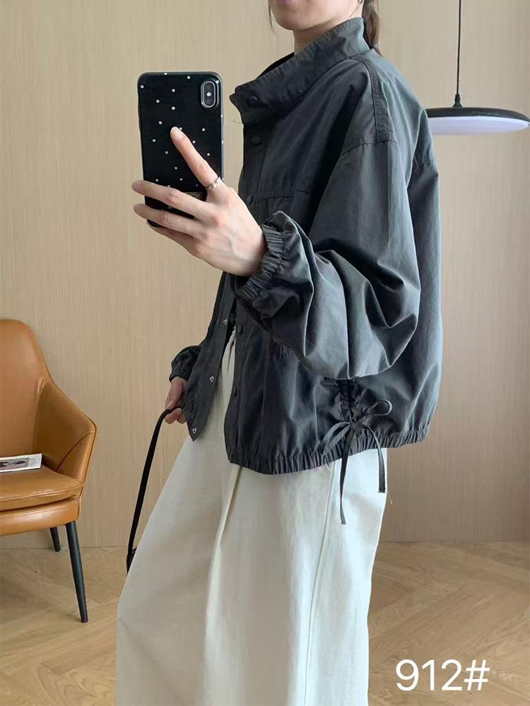 Dulce y Genial Chica Japonés Otoño Ropa Exterior Corta Ropa de Trabajo Estilo Funcional Diseño con Cordón Chaqueta con Cuello Alto para Mujer ZLG14