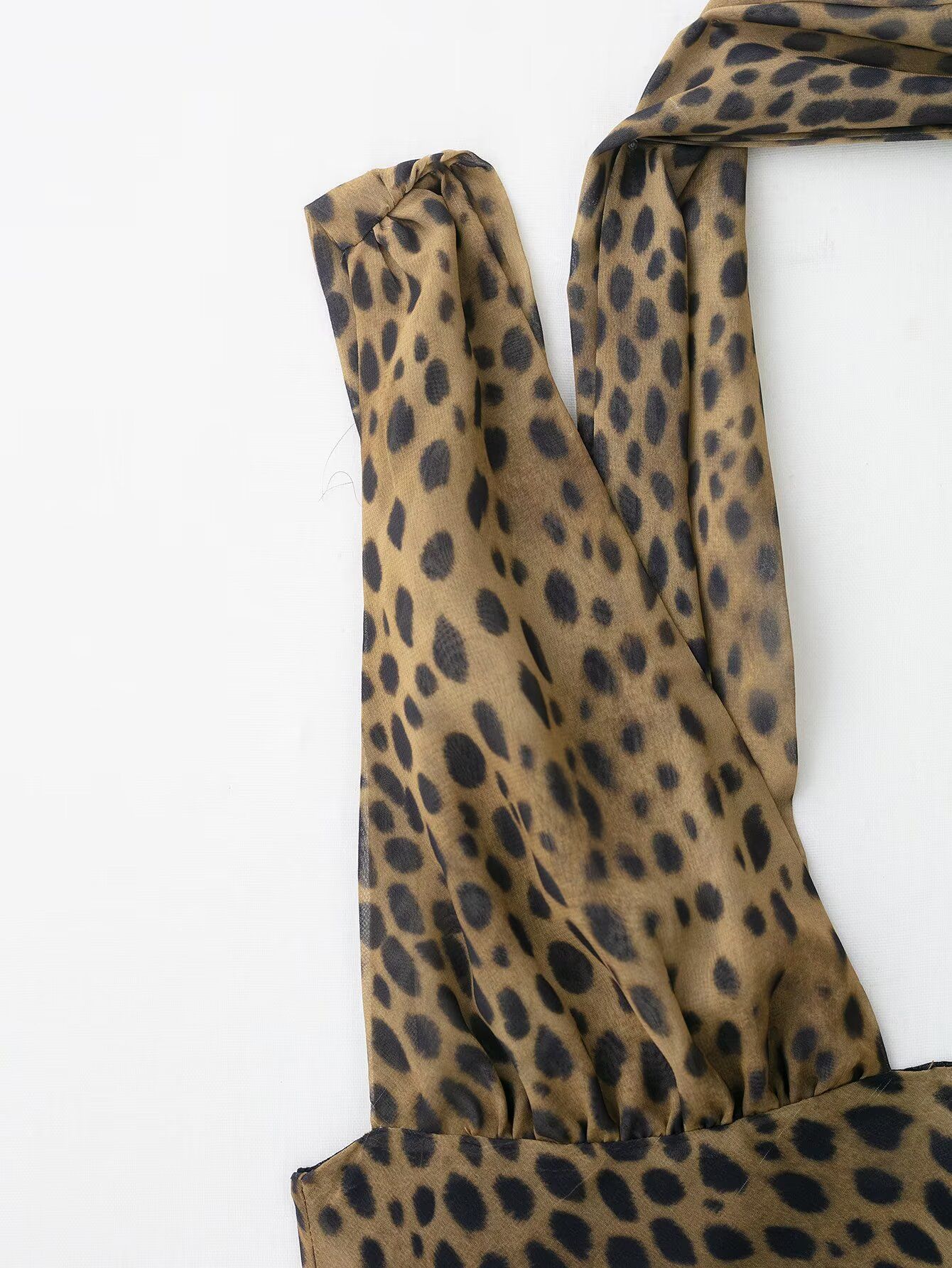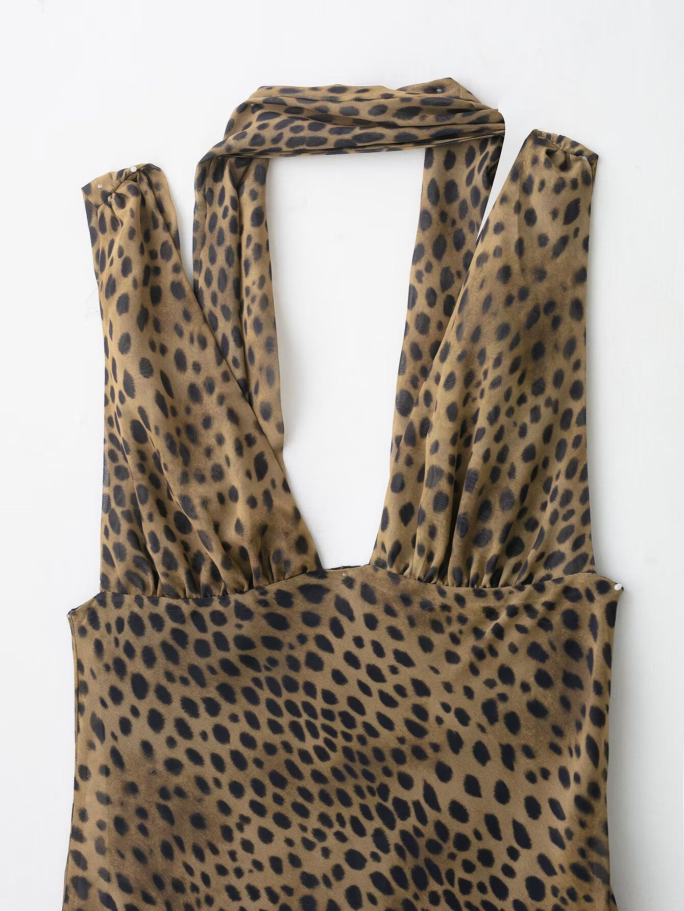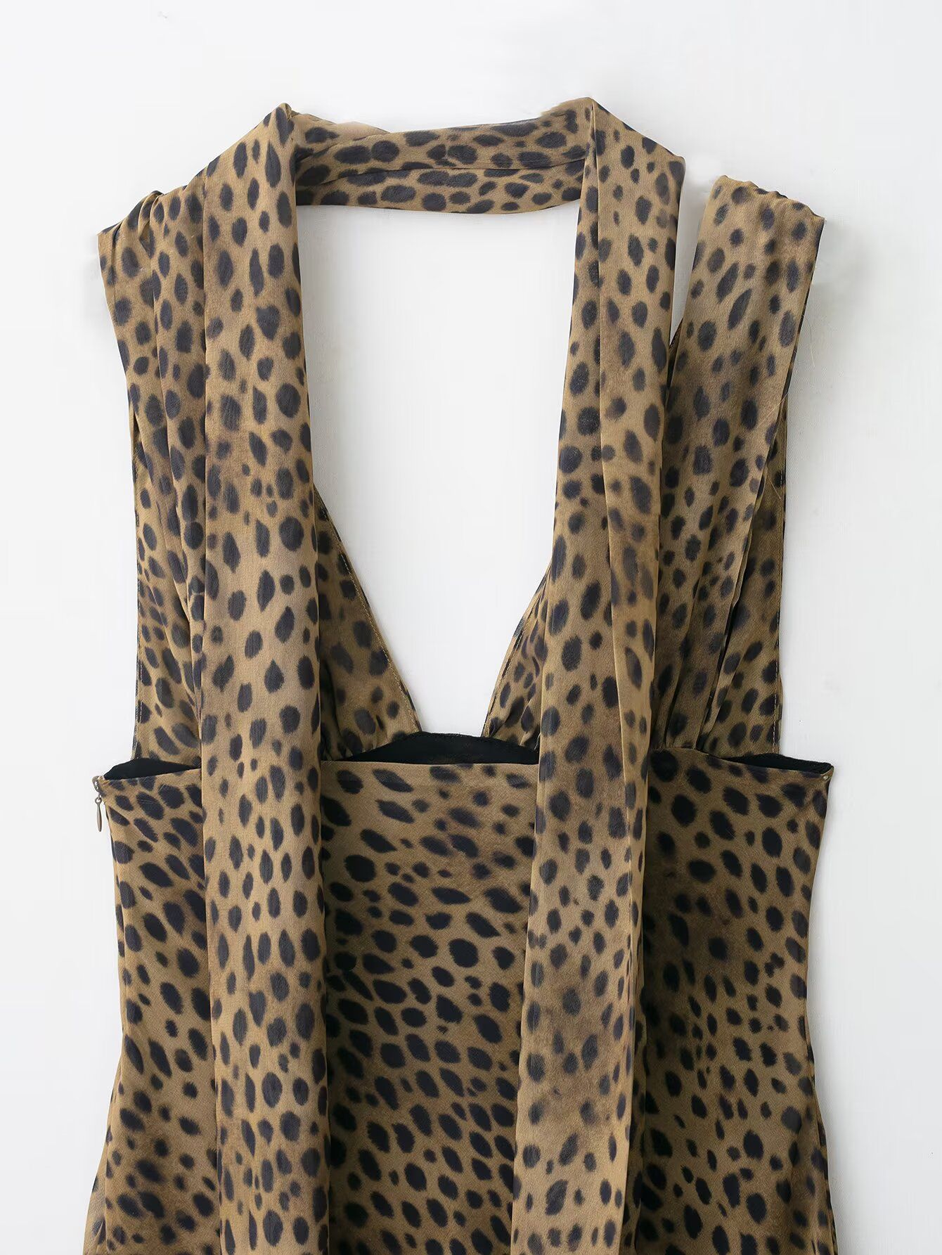 Amazon Comercio Exterior Transfronterizo Ropa de Mujer Otoño 2025 Nueva Moda Temperamento Estampado Animal Halter Vestido Bodycon