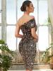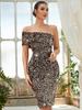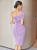 Nuevo vestido morado sexy europeo y americano sin tirantes con hombros descubiertos, lentejuelas brillantes, vestido de noche de fiesta de celebridad personalizado