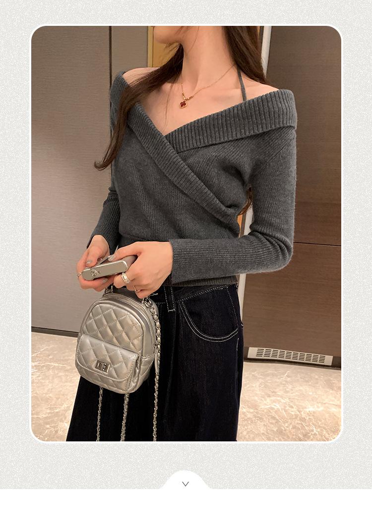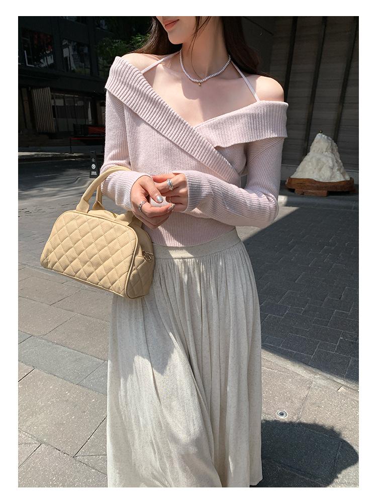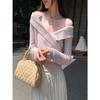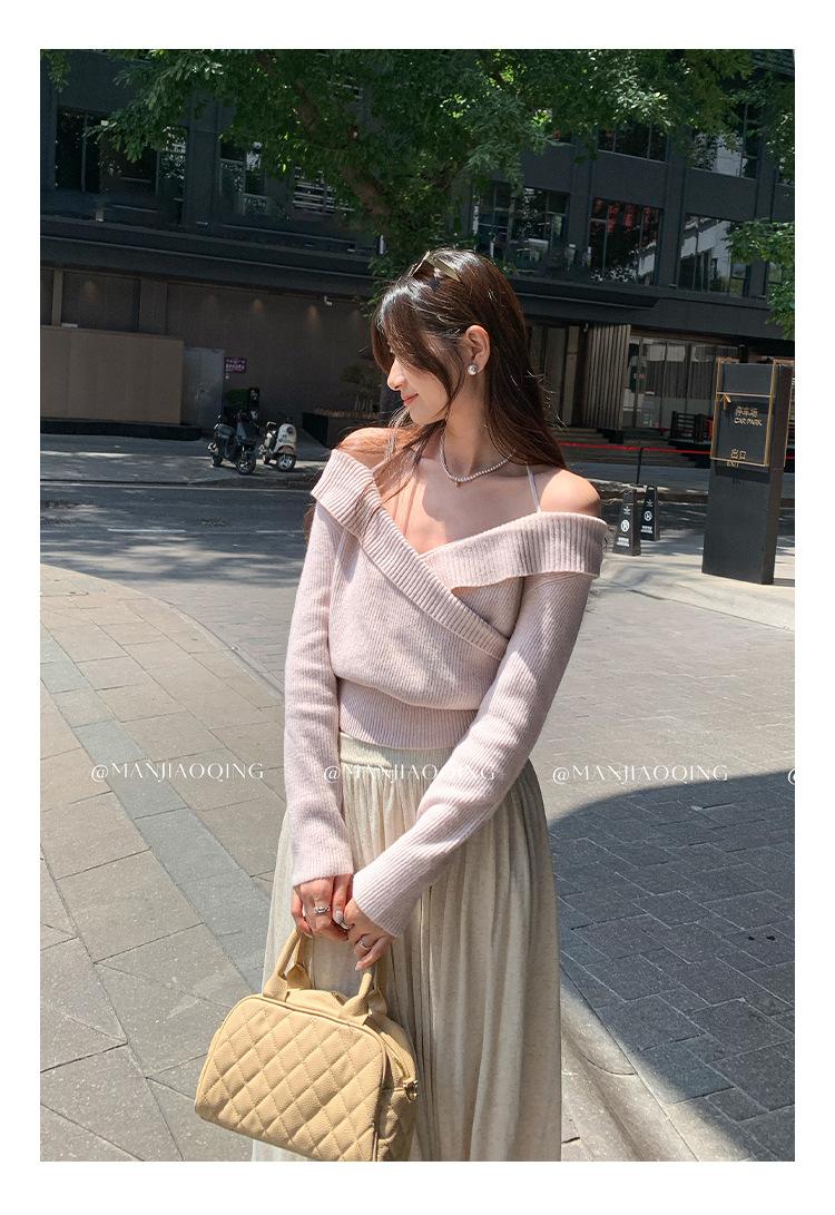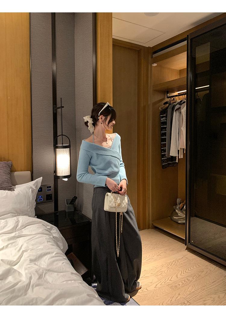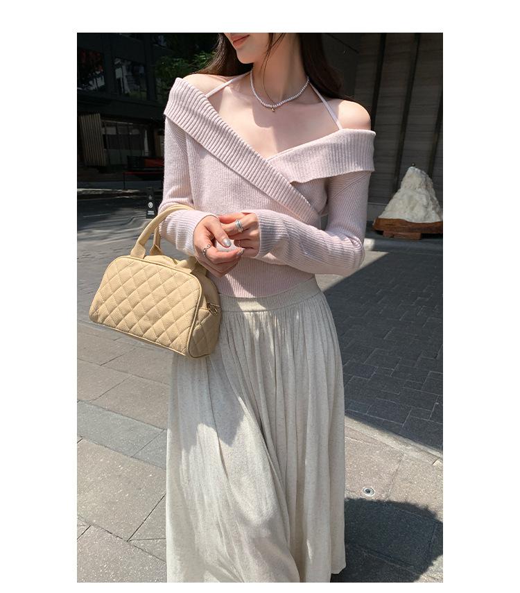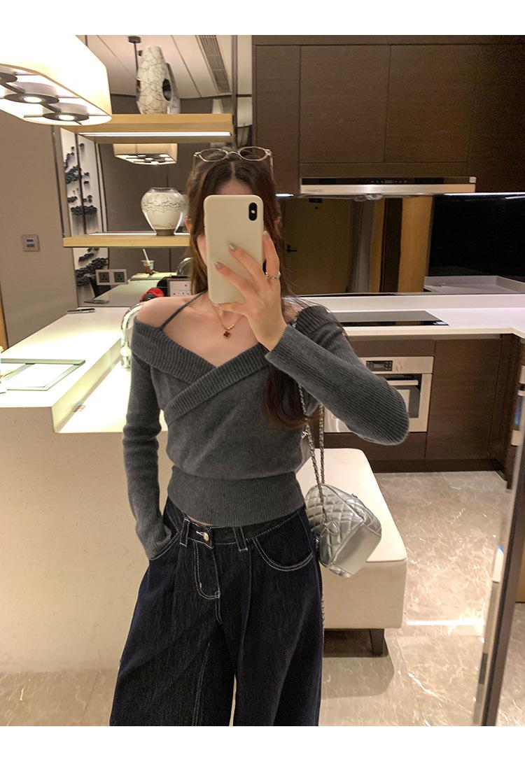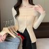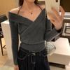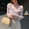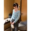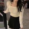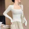 Camiseta de Punto de Manga Larga Ajustada con Cuello Cuadrado Estilo Chic Coreano para Mujer Otoño 2025 Nuevo Diseño Nicho Top Interior