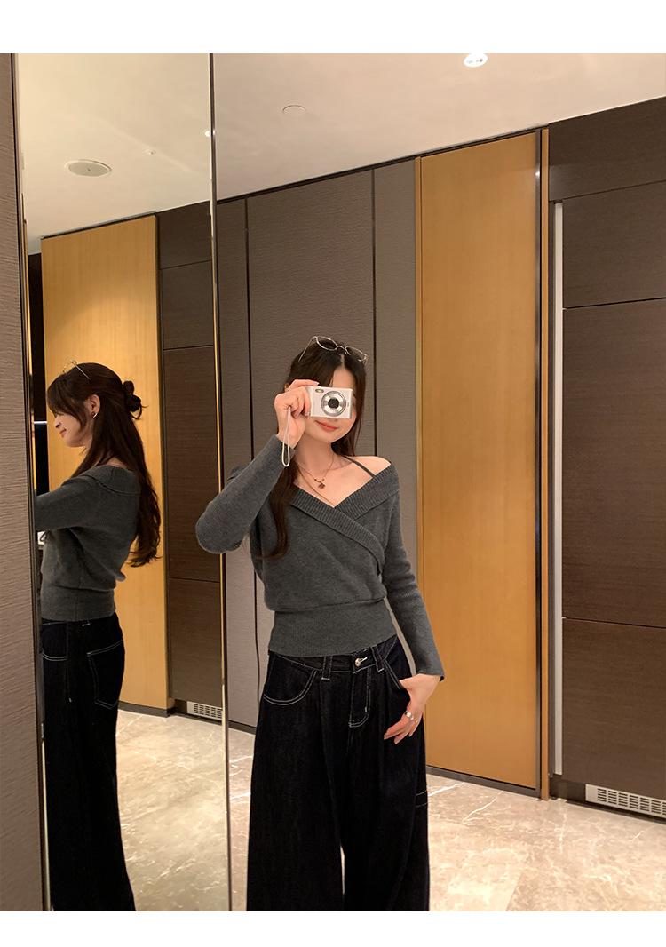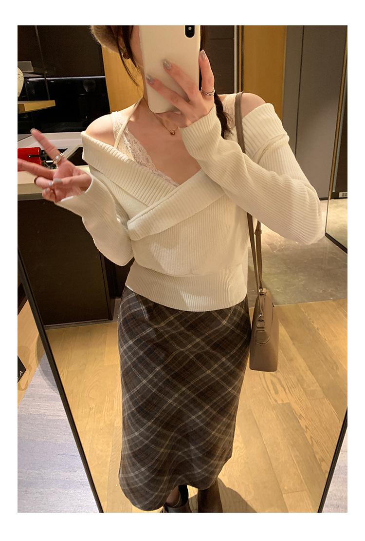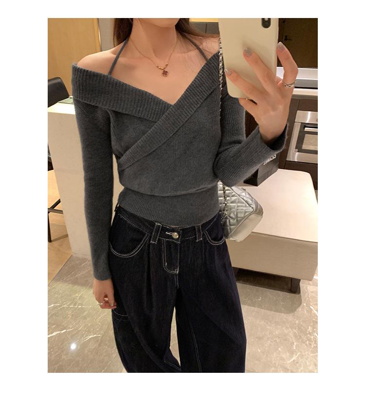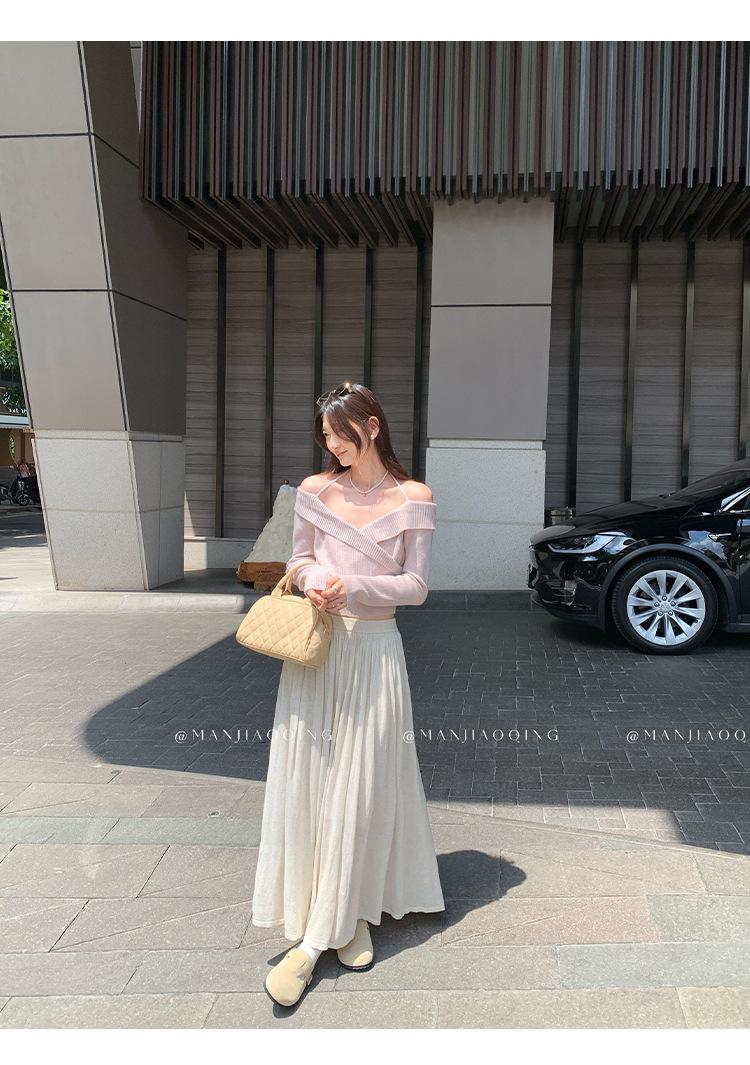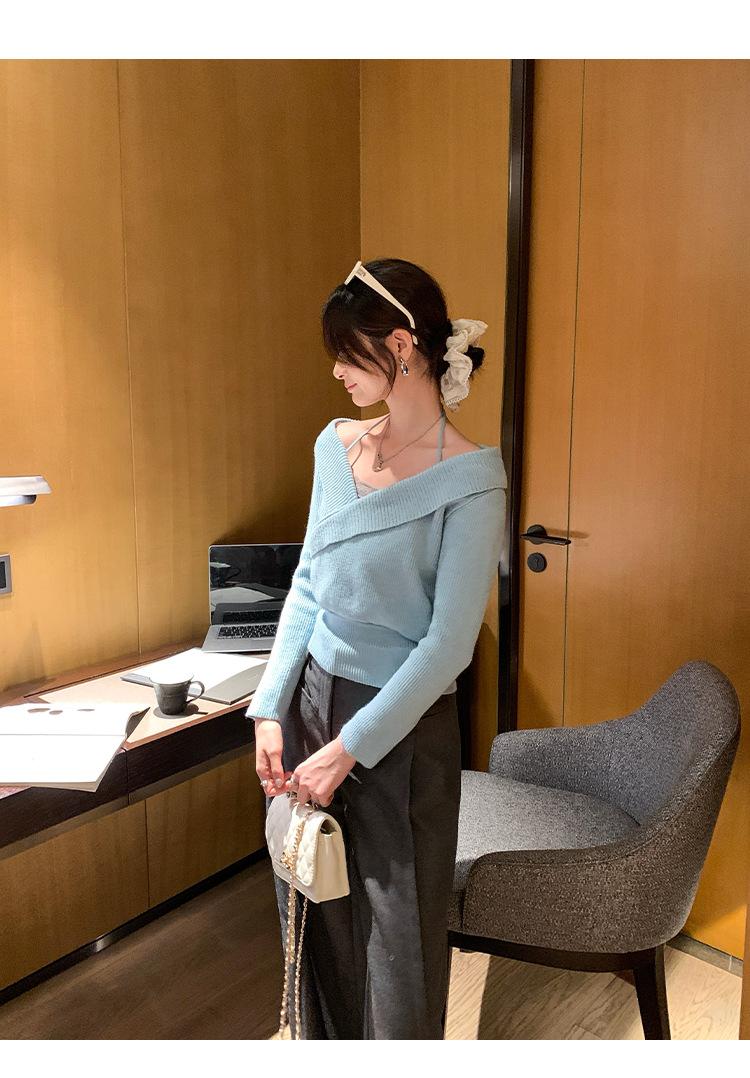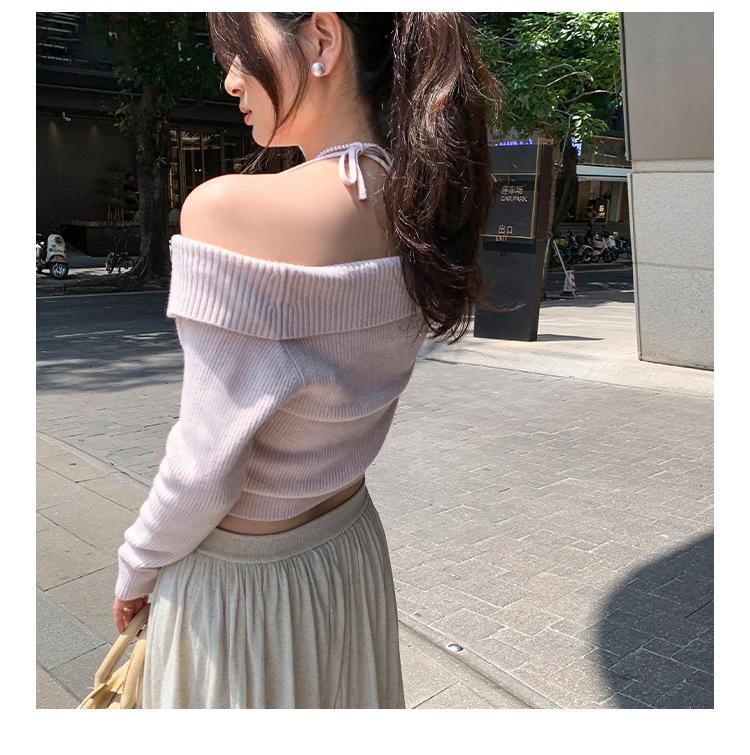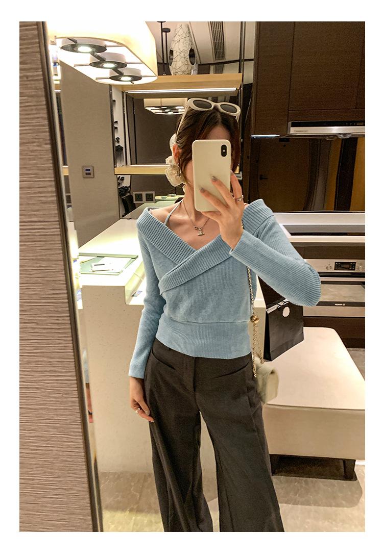 Camiseta de Punto de Manga Larga Ajustada con Cuello Cuadrado Estilo Chic Coreano para Mujer Otoño 2025 Nuevo Diseño Nicho Top Interior