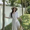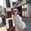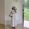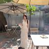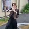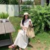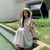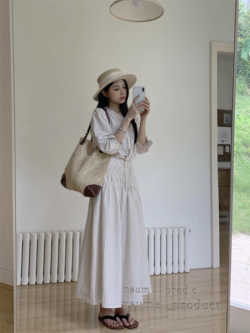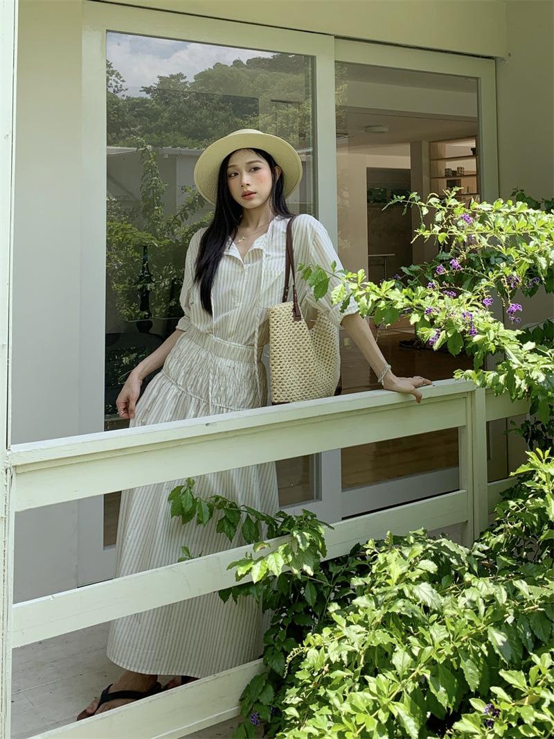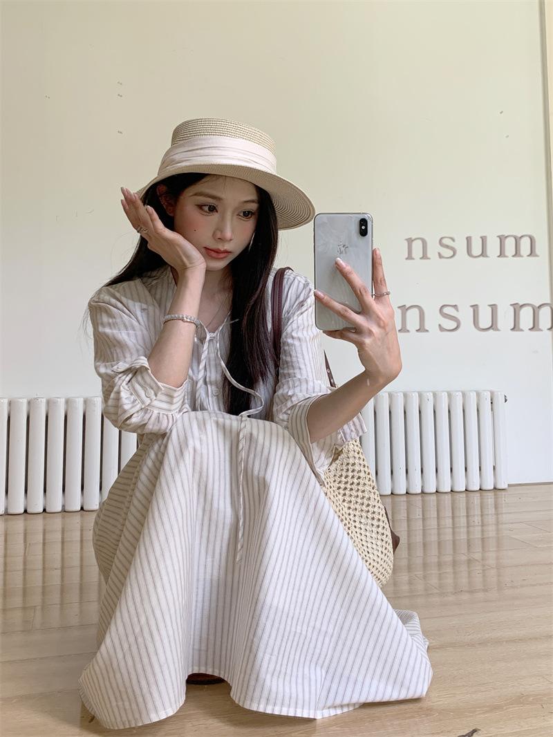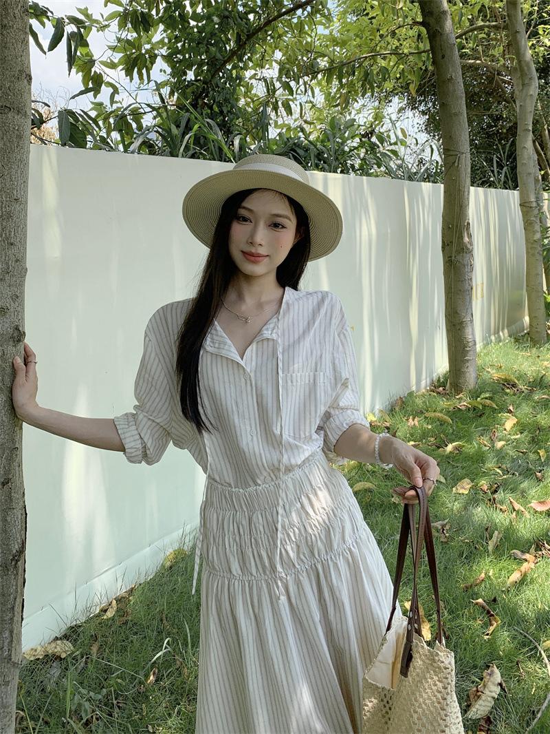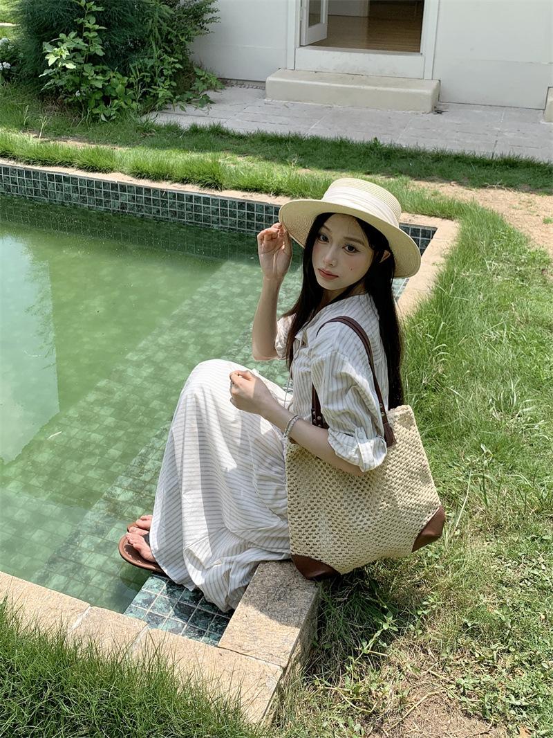 Foto Real de Traje de Verano Nicho Rayado Conjunto Coreano de Dos Piezas, Camisa Elegante Holgada y Floja + Traje de Falda Larga