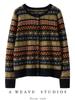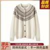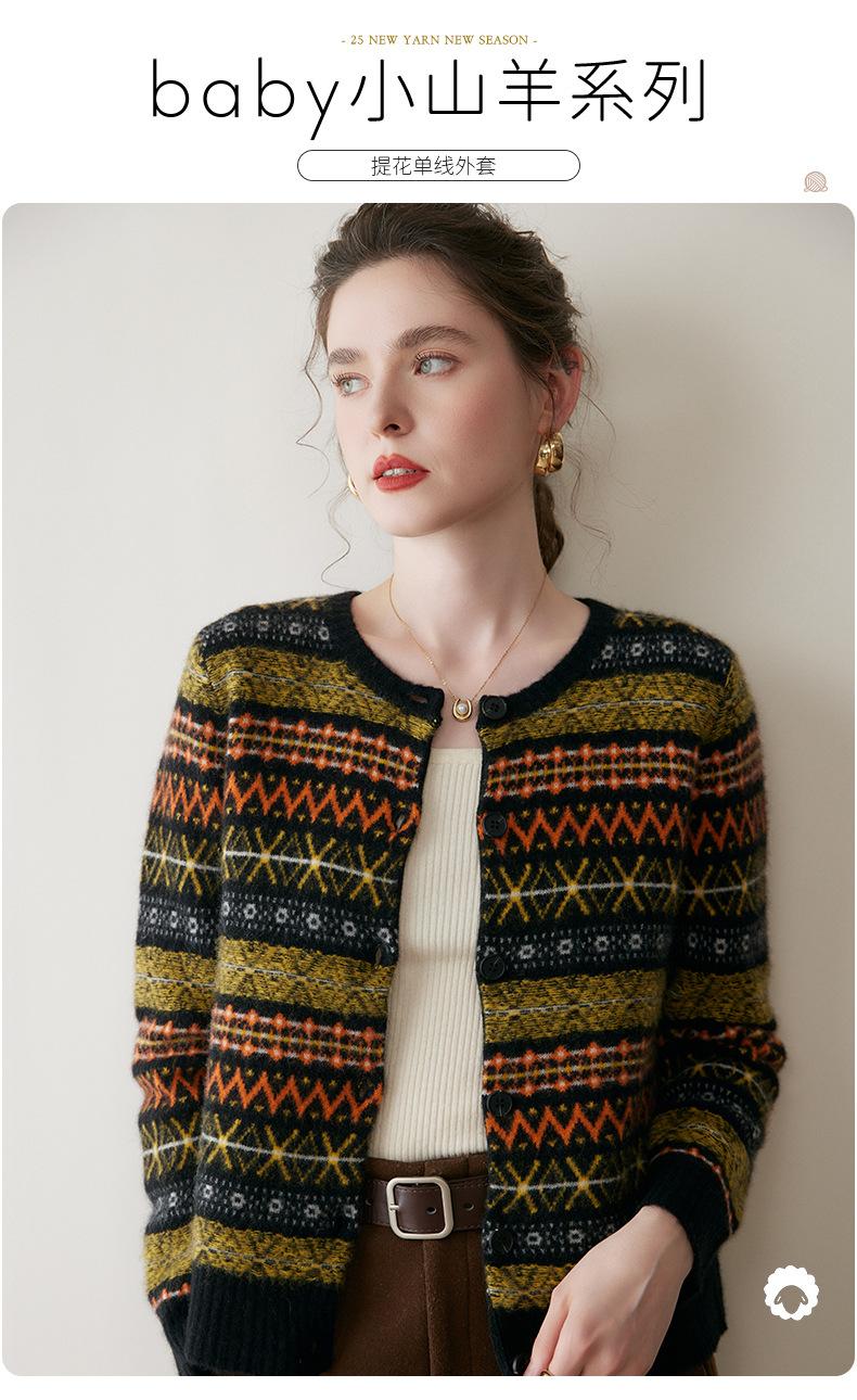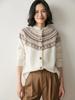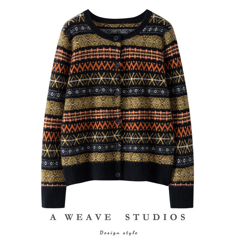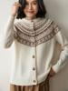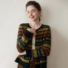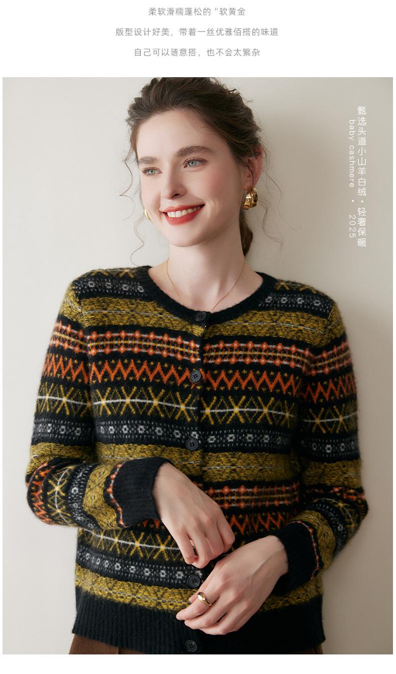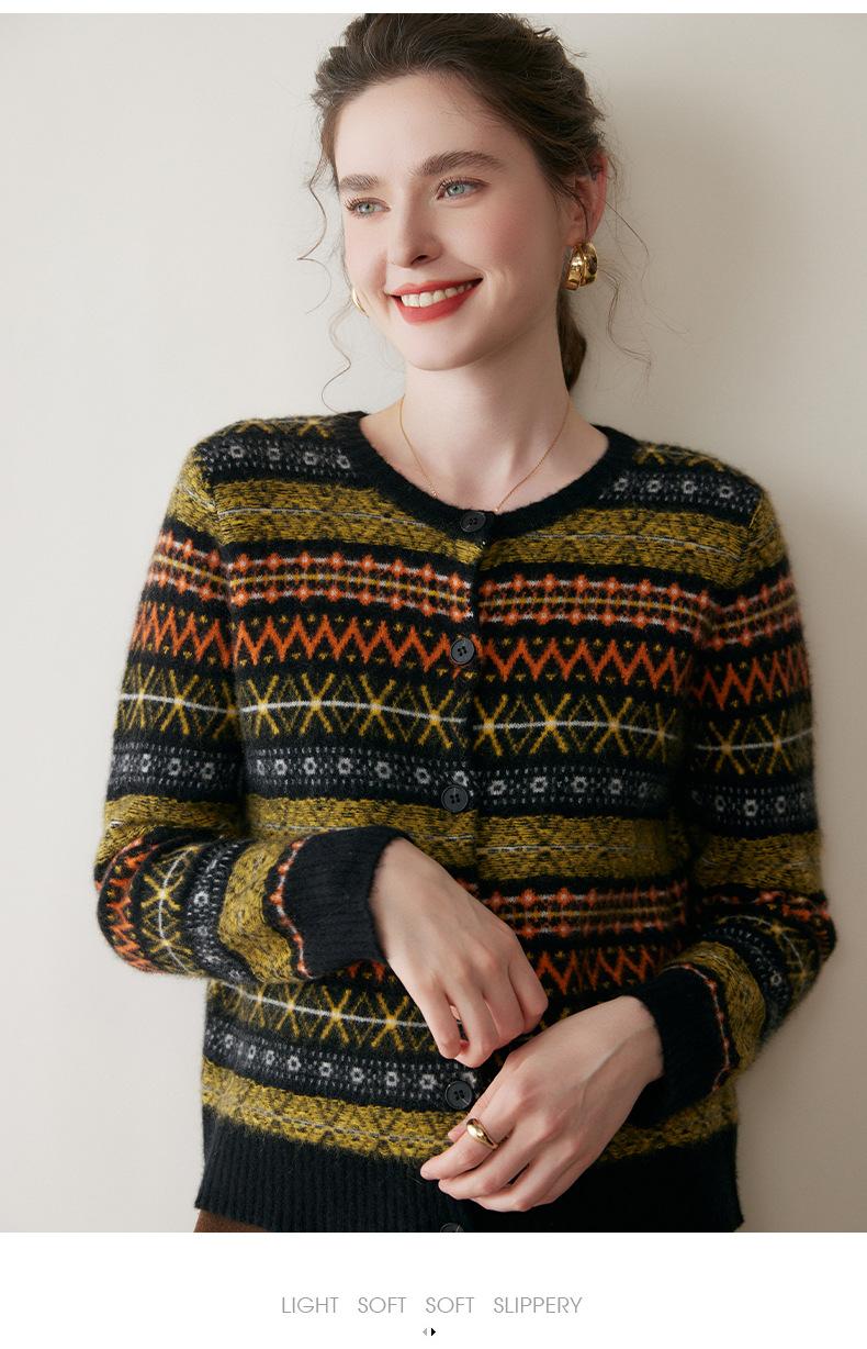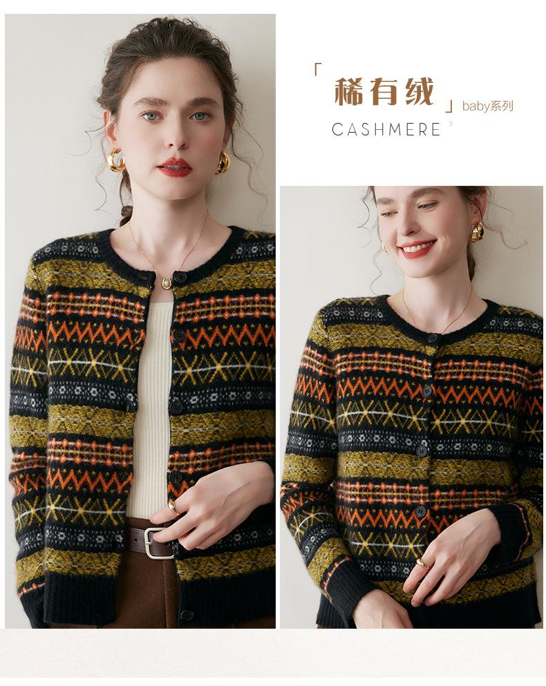 Cárdigan de Cachemira Fair Isle de Bloques de Color con Cuello Redondo para Mujer, Suéter Tejido Casual Retro Nuevo, Suave Suéter Top Ropa Exterior