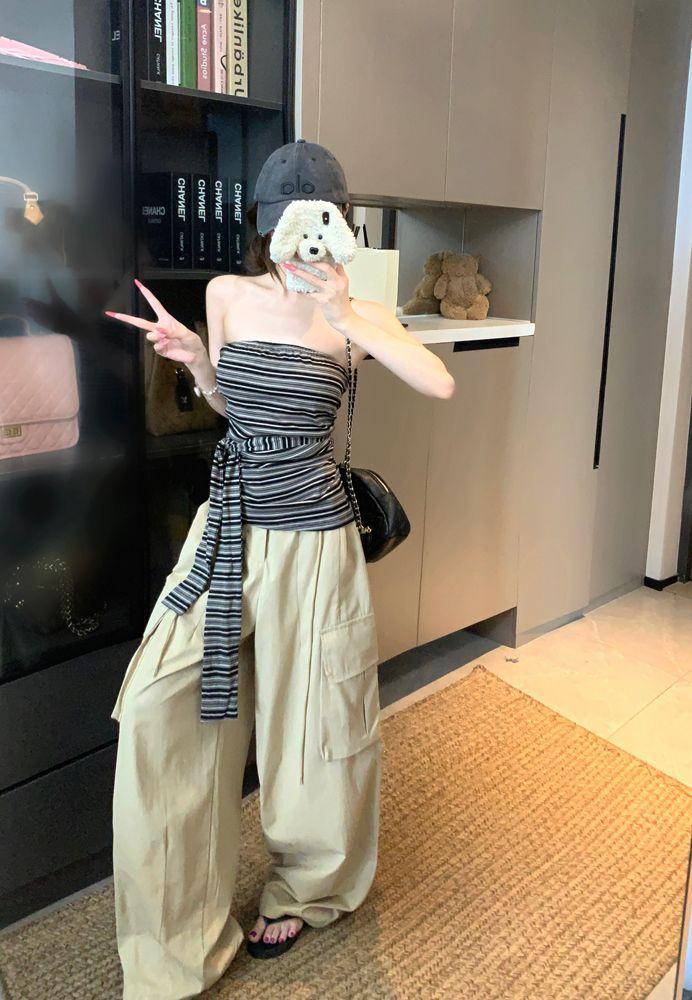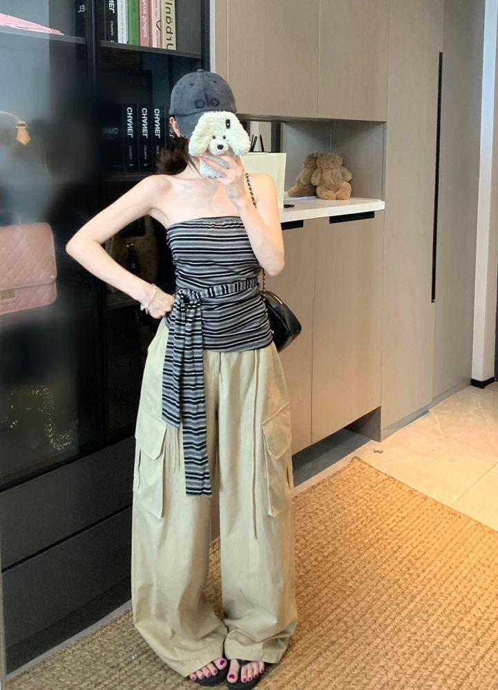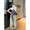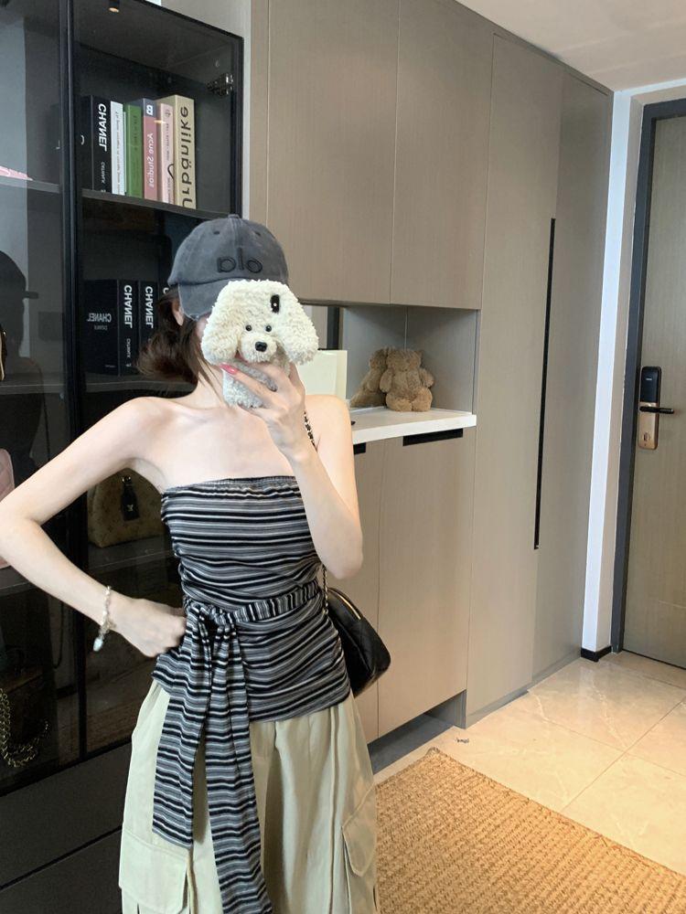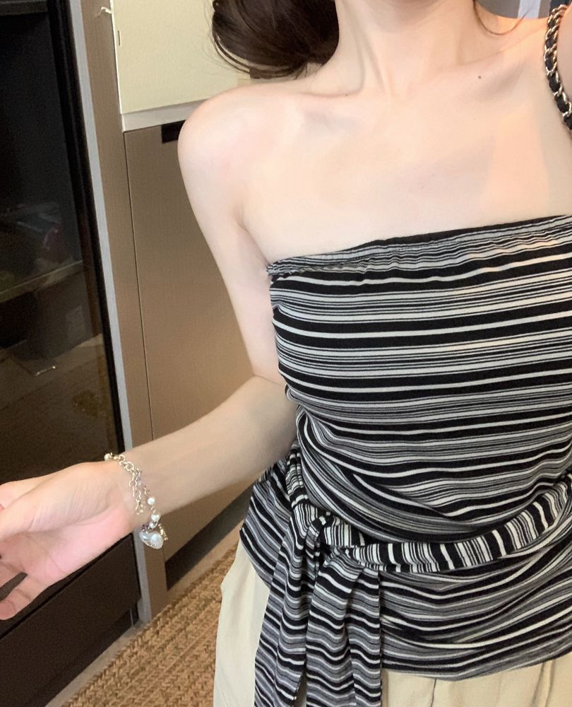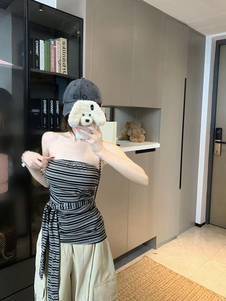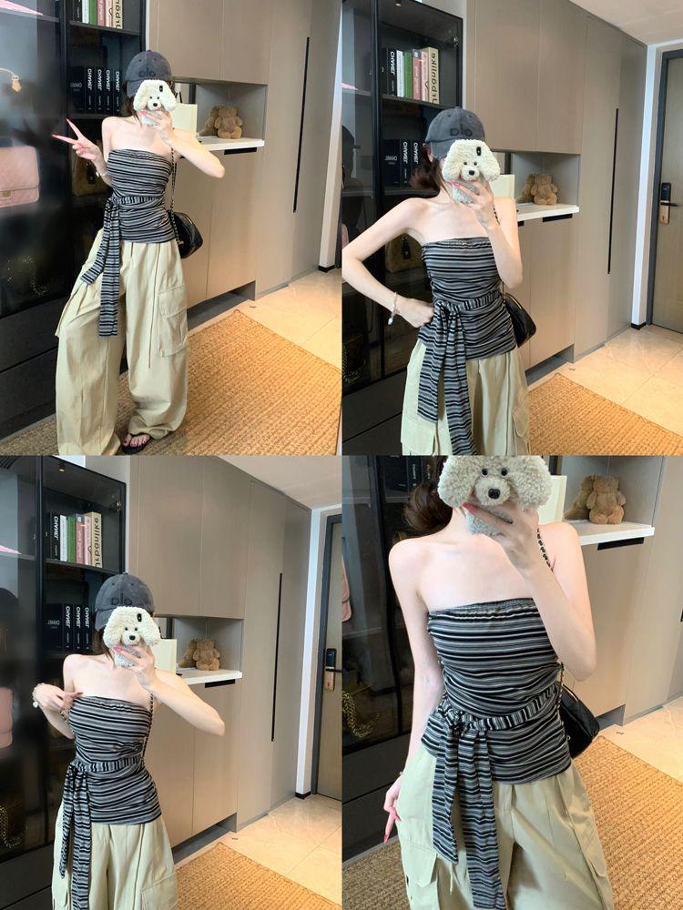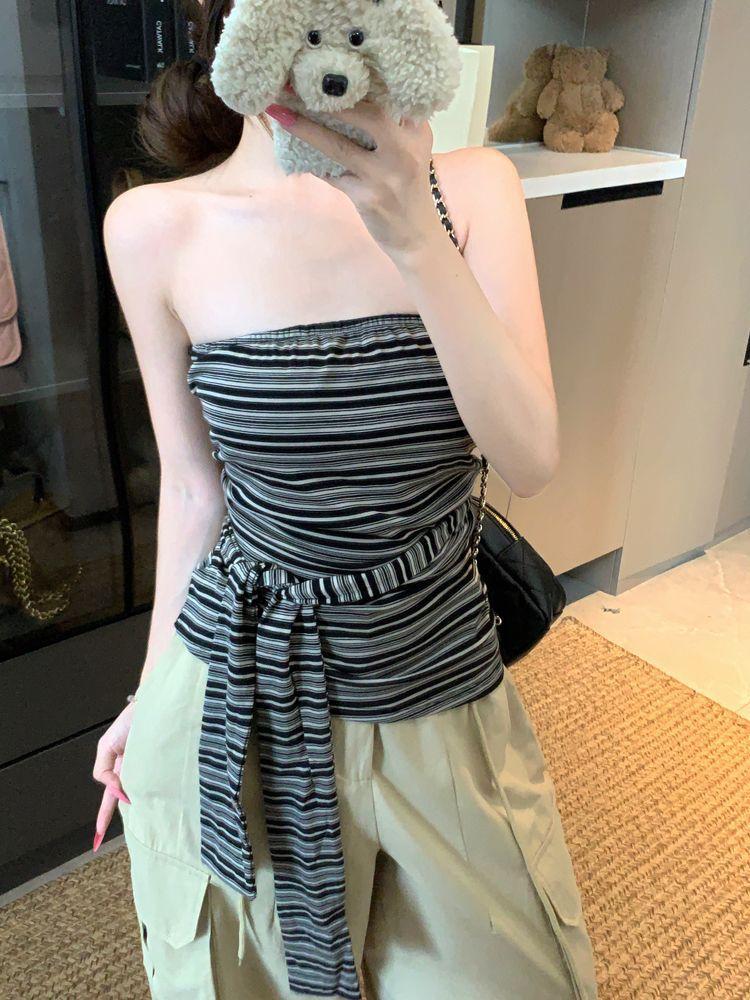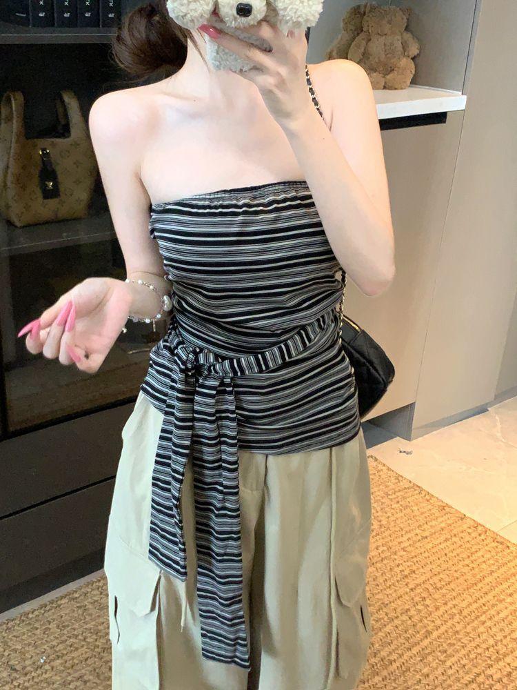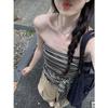Top Tank Bandeau Retro de Bloques de Color a Rayas sin Espalda para Mujer Verano Encaje Ajustado sin Mangas Diseño Sensual Top de Chica Picante