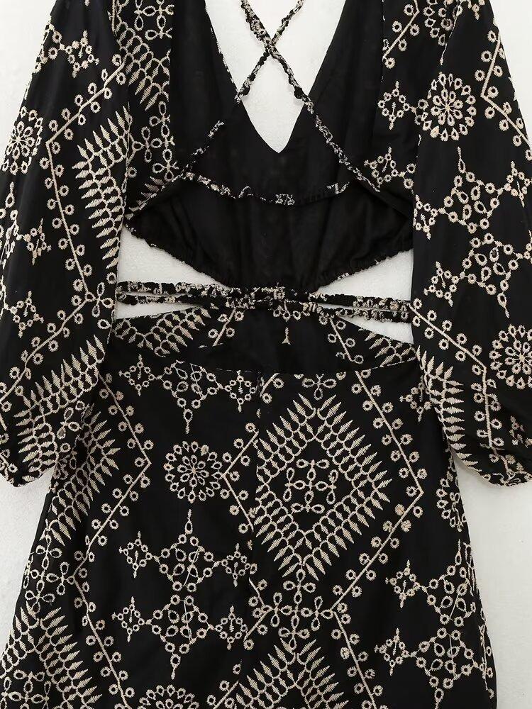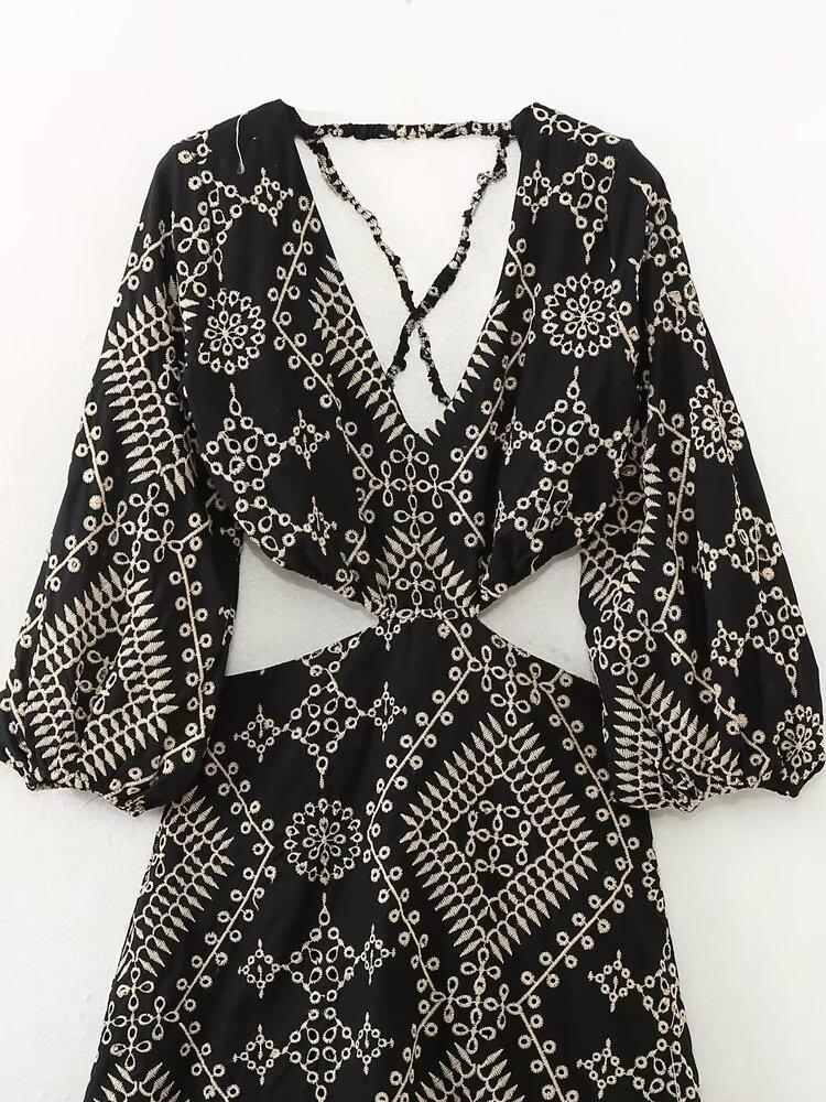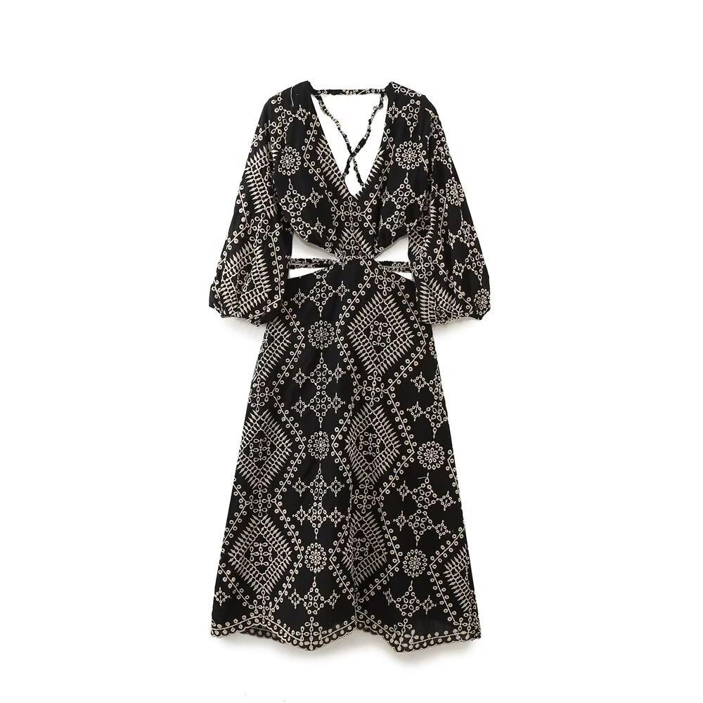 Venta al por Mayor Transfronteriza Verano Nuevo Estilo Europeo y Americano Moda Slim Diseño Abierto Vestido Midi Bordado 3347994
