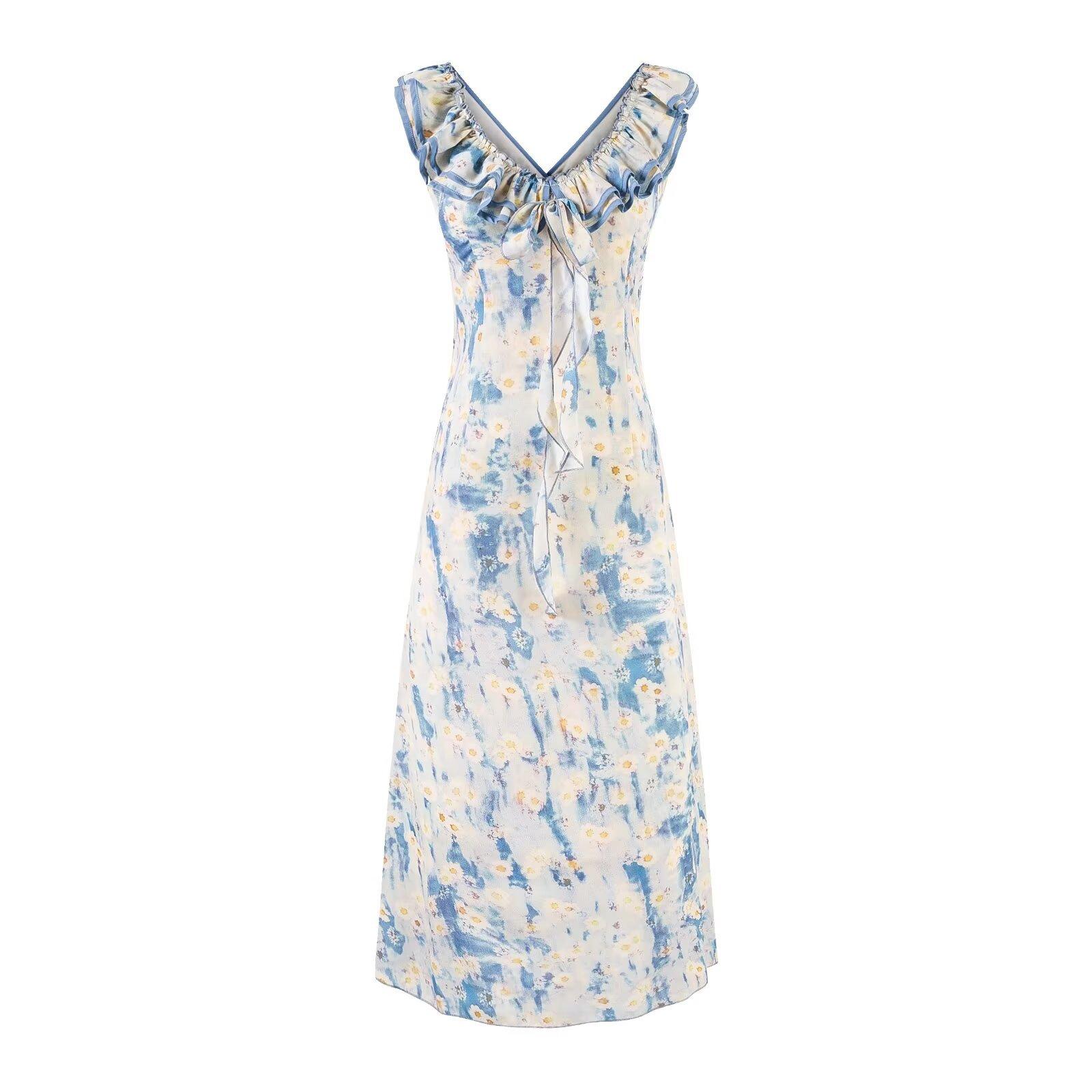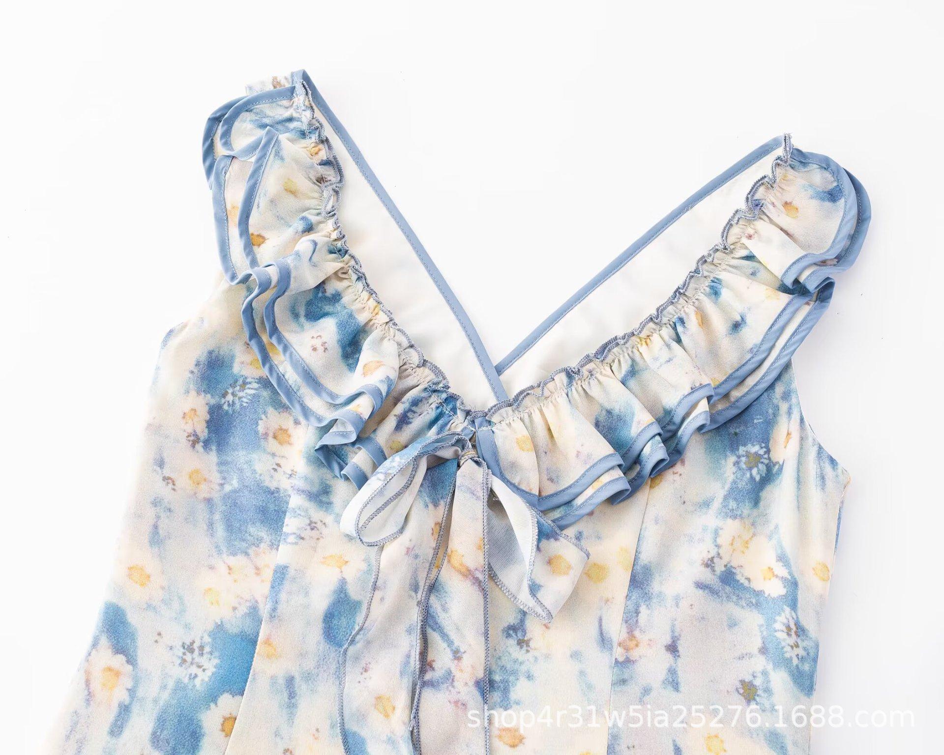 Vestido de Playa Retro Francés 2025 Verano Nuevo Vacaciones con Tirantes Espagueti, Vestido Ajustado con Degradado