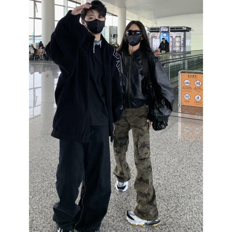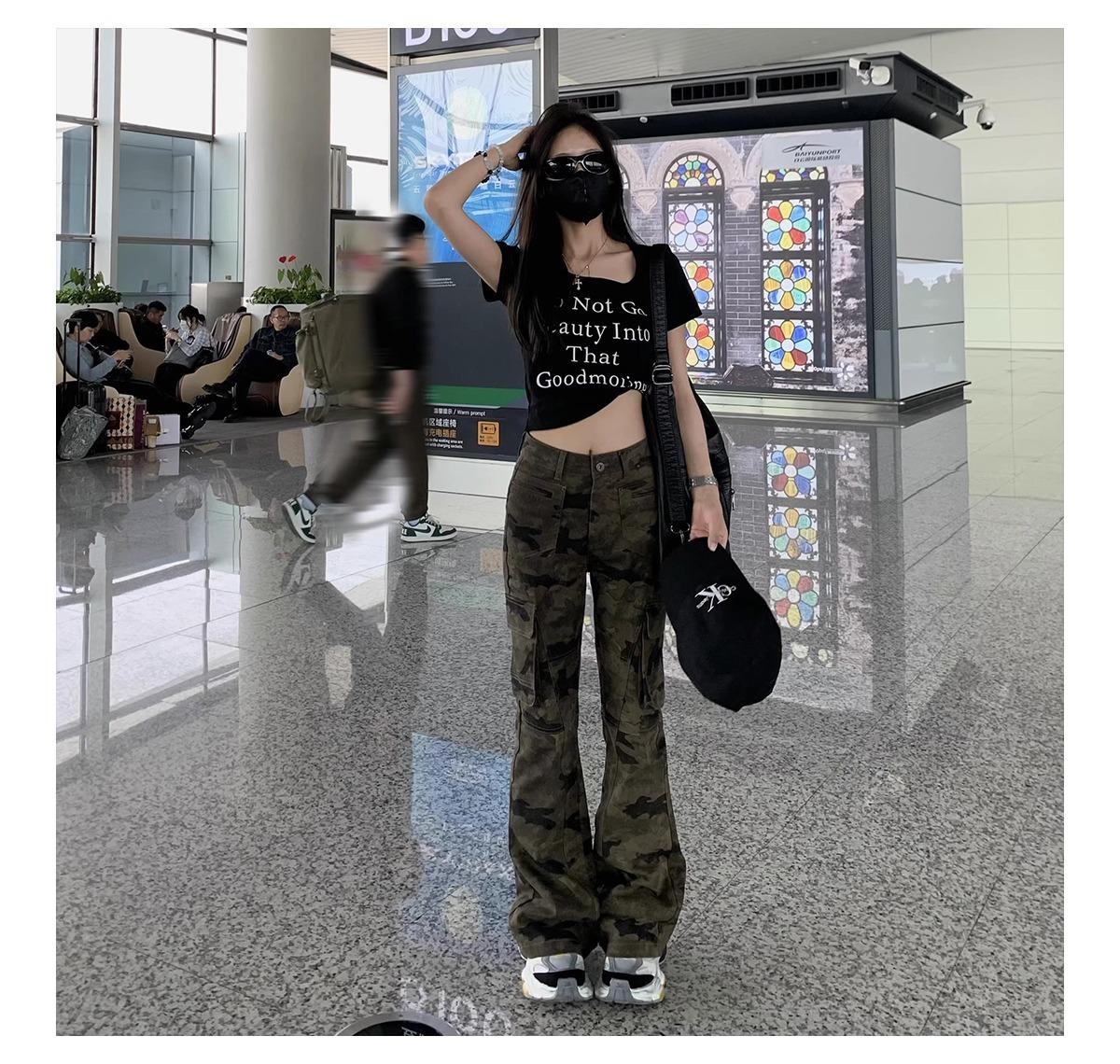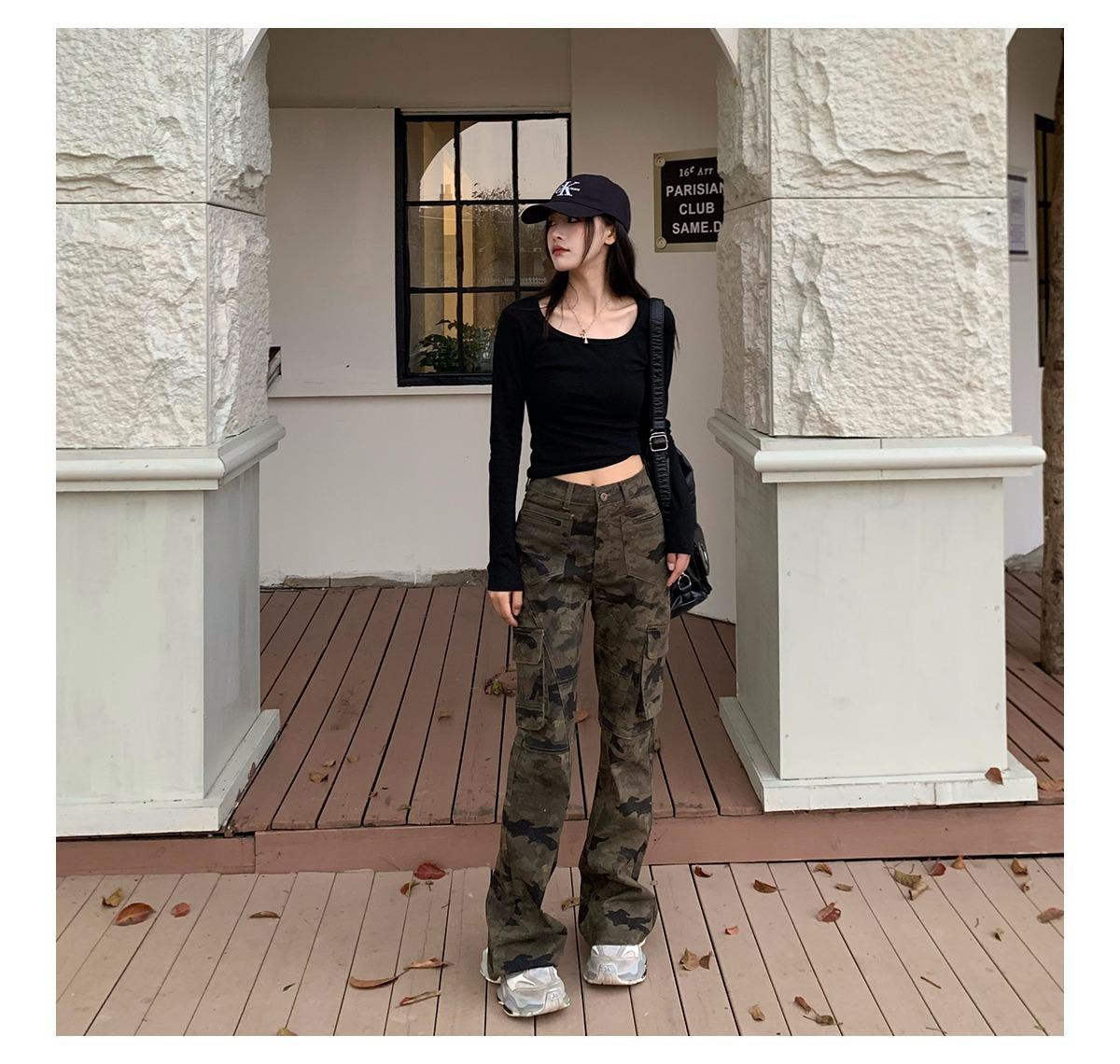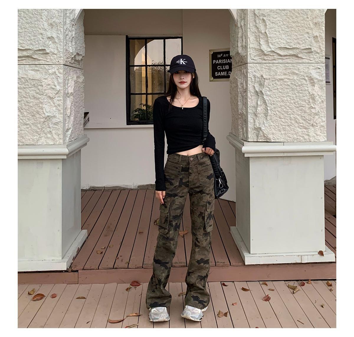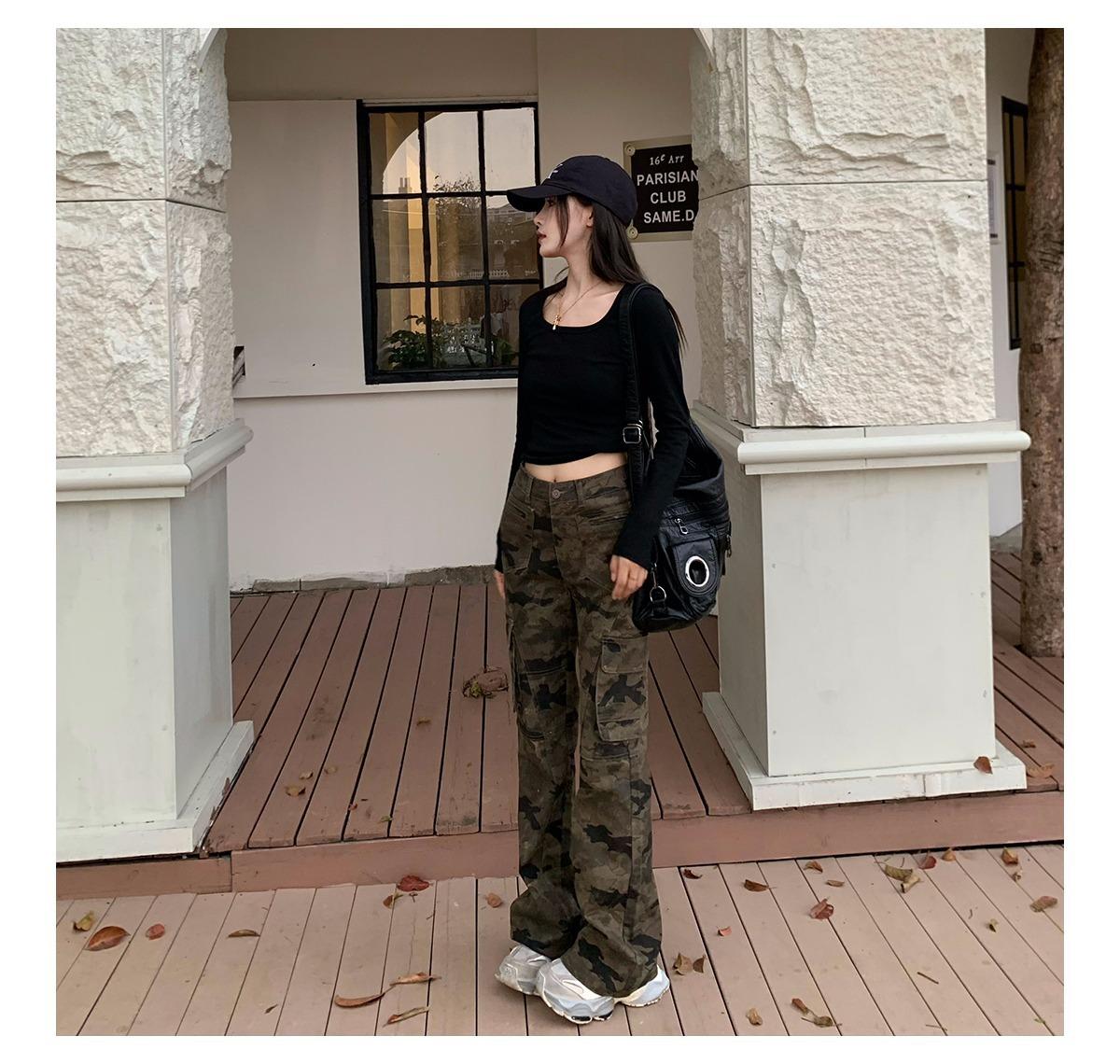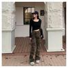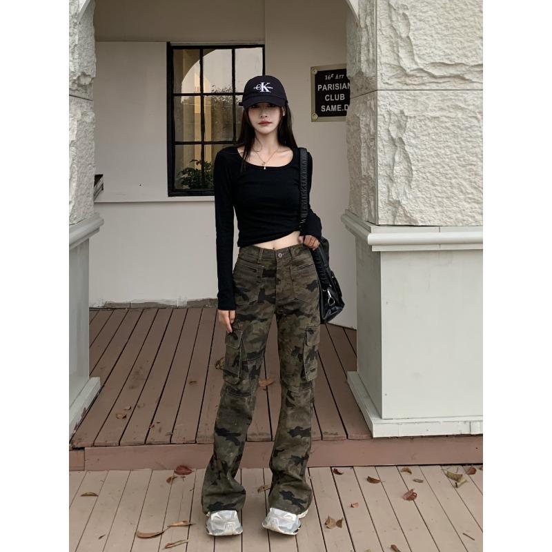 Comercio transfronterizo 202 Peto retro camuflaje multibolsillos para mujer, marca de moda, pierna recta, ligeramente acampanado, corte entallado adelgazante, casual