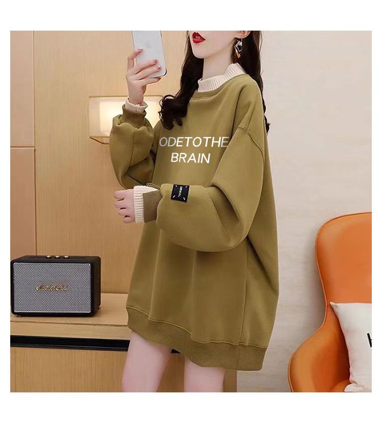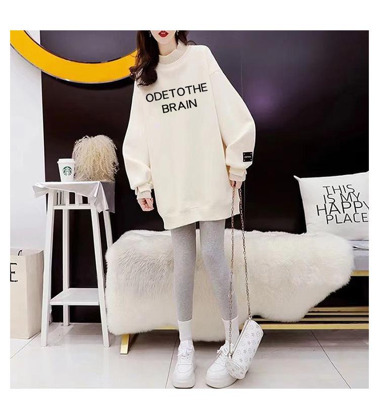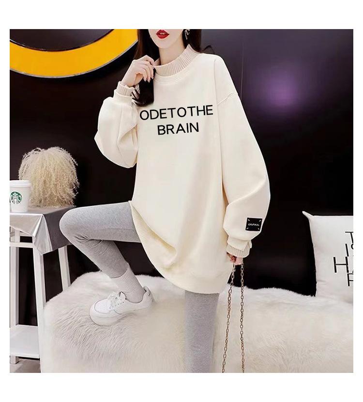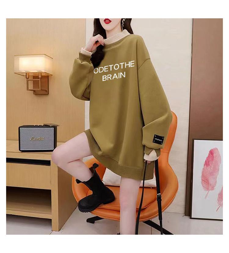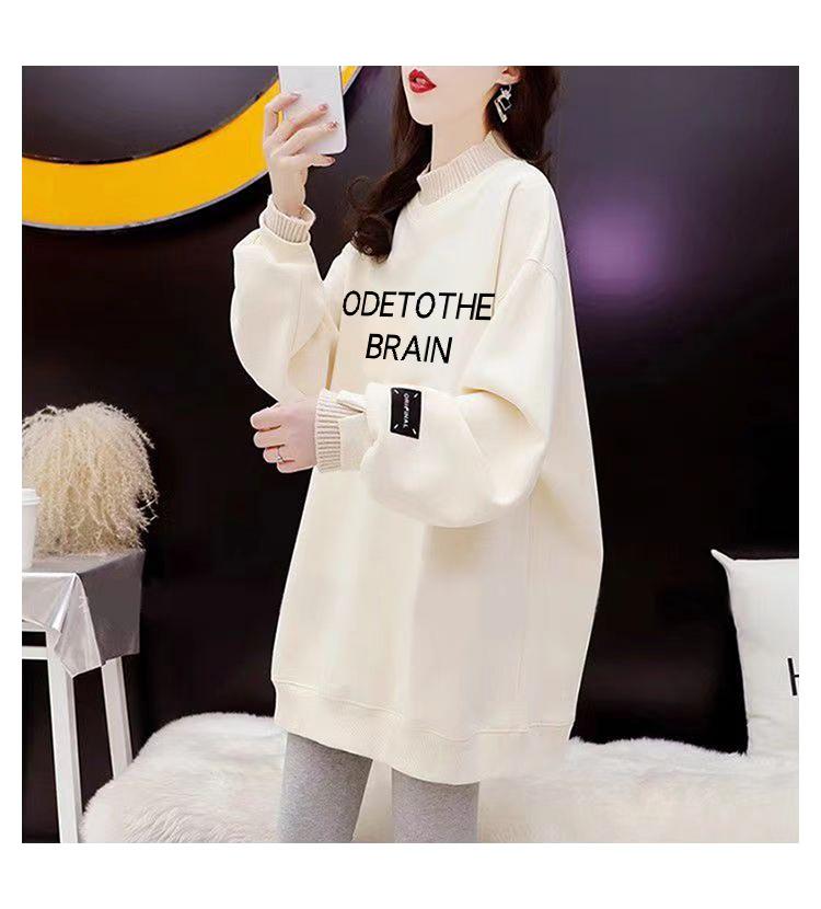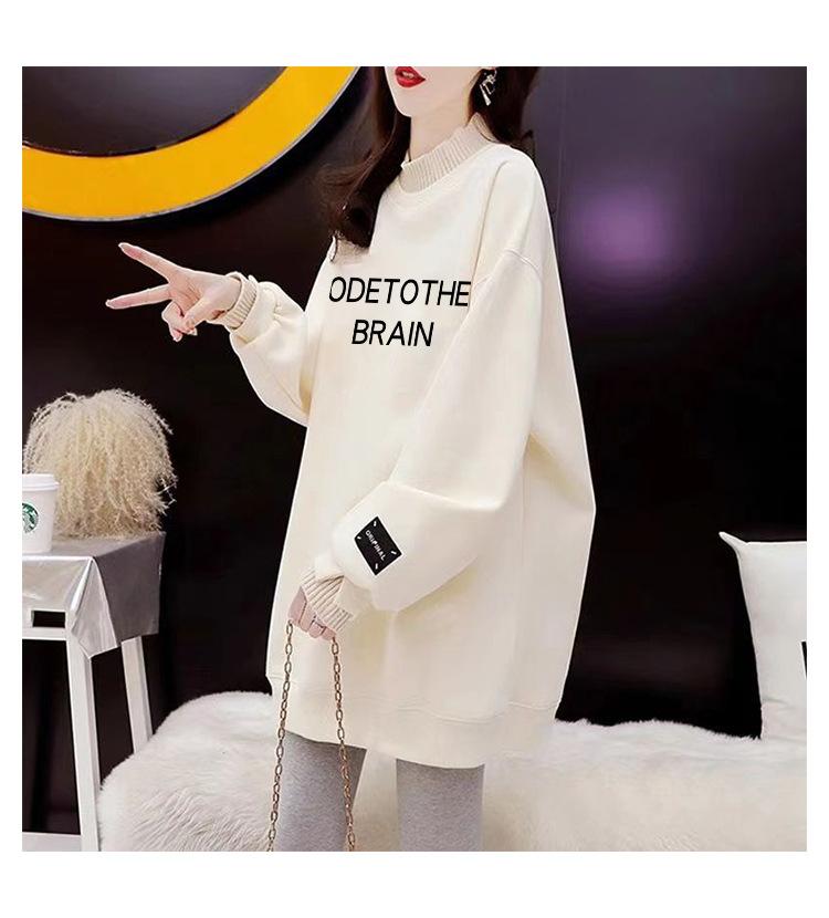 Otoño e Invierno Forrado de vellón Engrosado Cuello medio alto Costuras Suéter holgado para mujer Estilo pequeño fresco Estampado de letras Largo medio Versátil Top