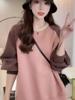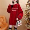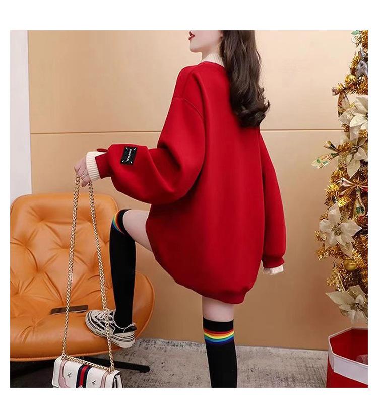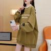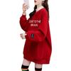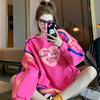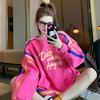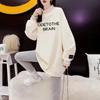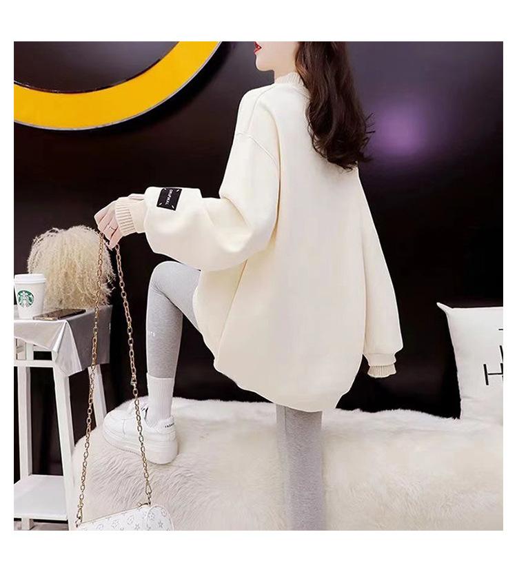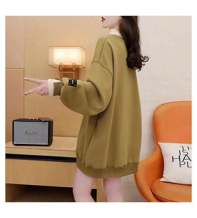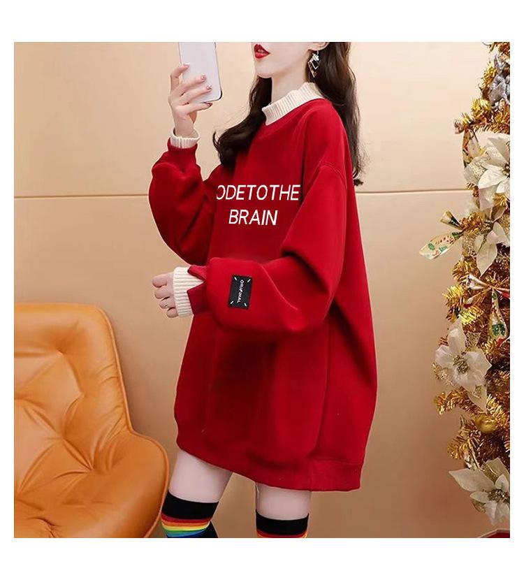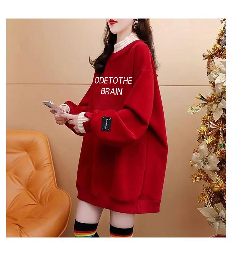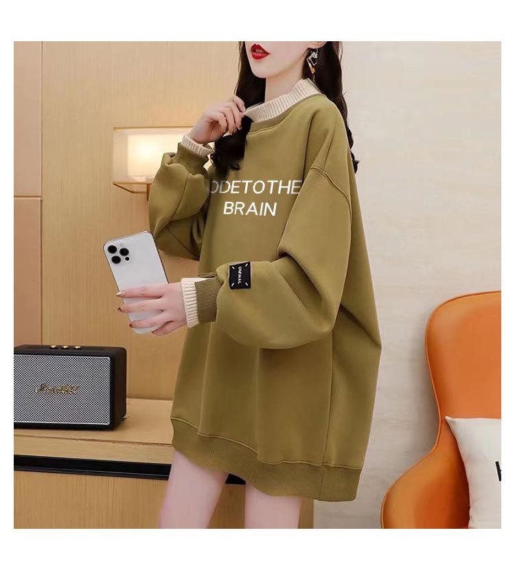 Otoño e Invierno Forrado de vellón Engrosado Cuello medio alto Costuras Suéter holgado para mujer Estilo pequeño fresco Estampado de letras Largo medio Versátil Top