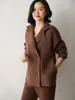 Cárdigan de Cachemira de Moda Coreana para Mujer Nuevo Solapa Lazo Color Sólido Versátil Top de Punto Abrigo Holgado de Lana