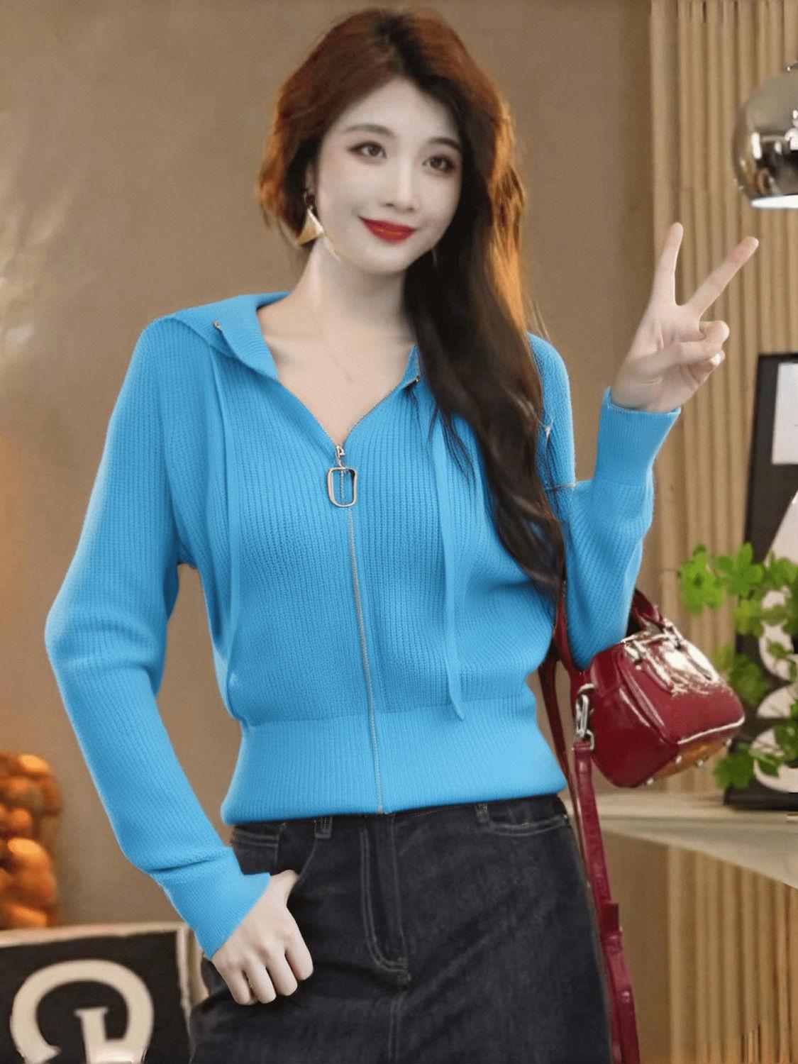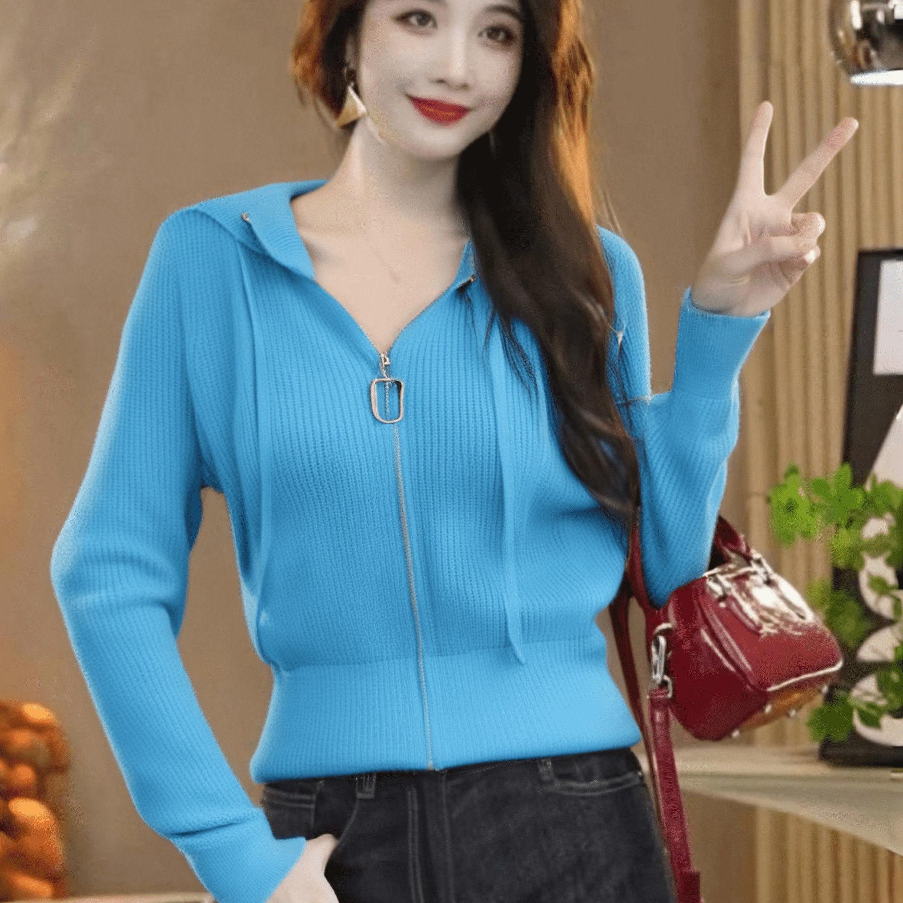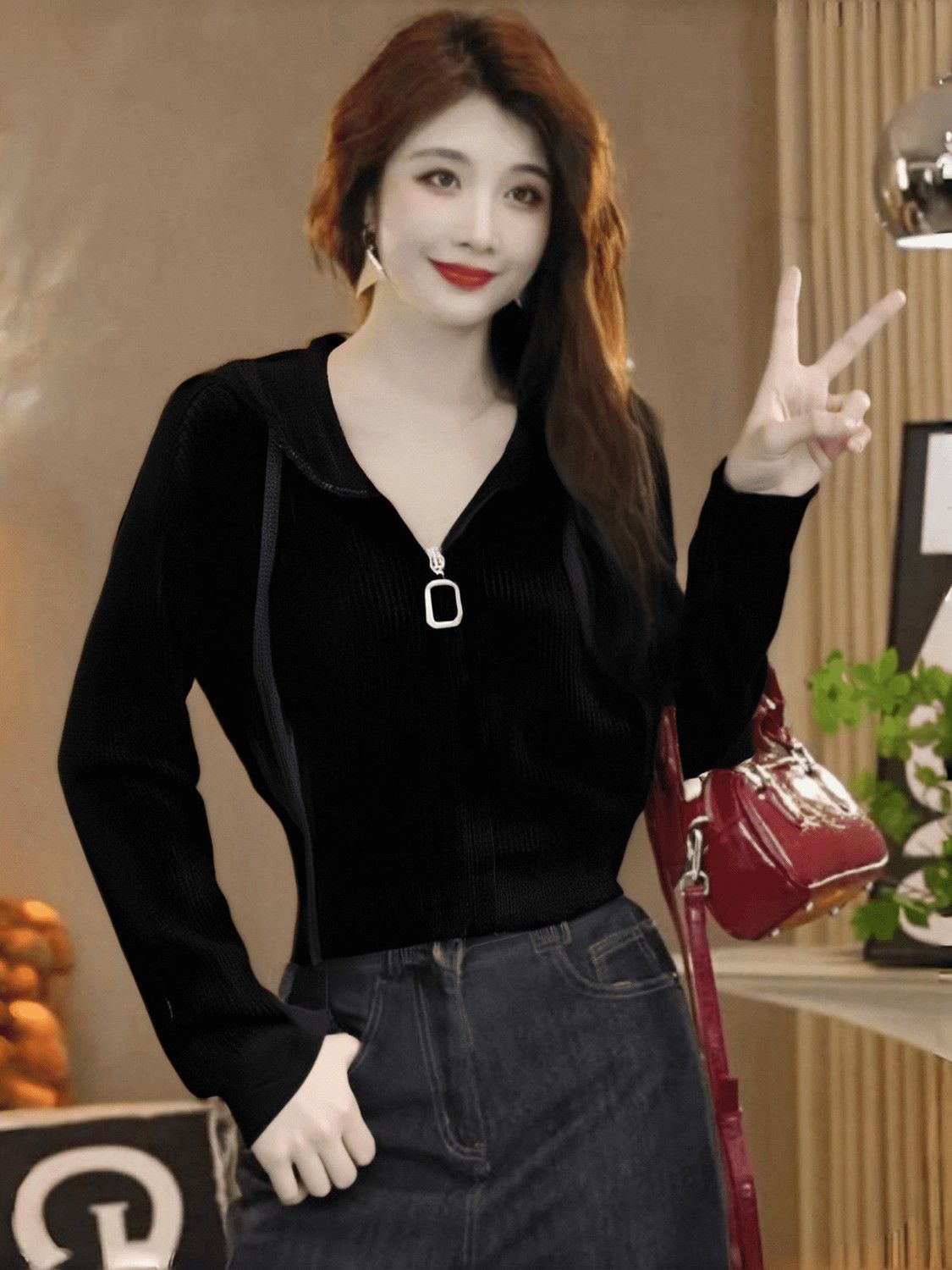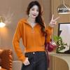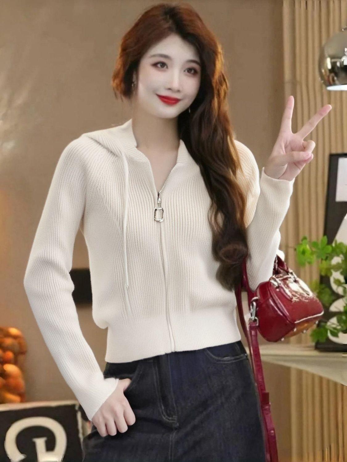 Otoño e Invierno Nuevo Suéter con Capucha Sudadera de Punto Chaqueta Cárdigan de Doble Cremallera Top Holgado Grueso de Moda