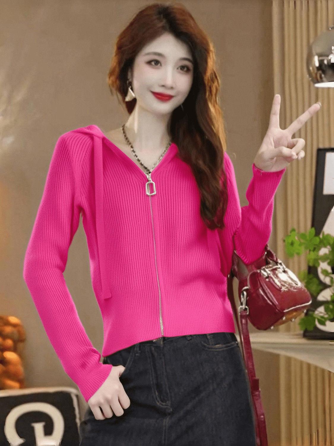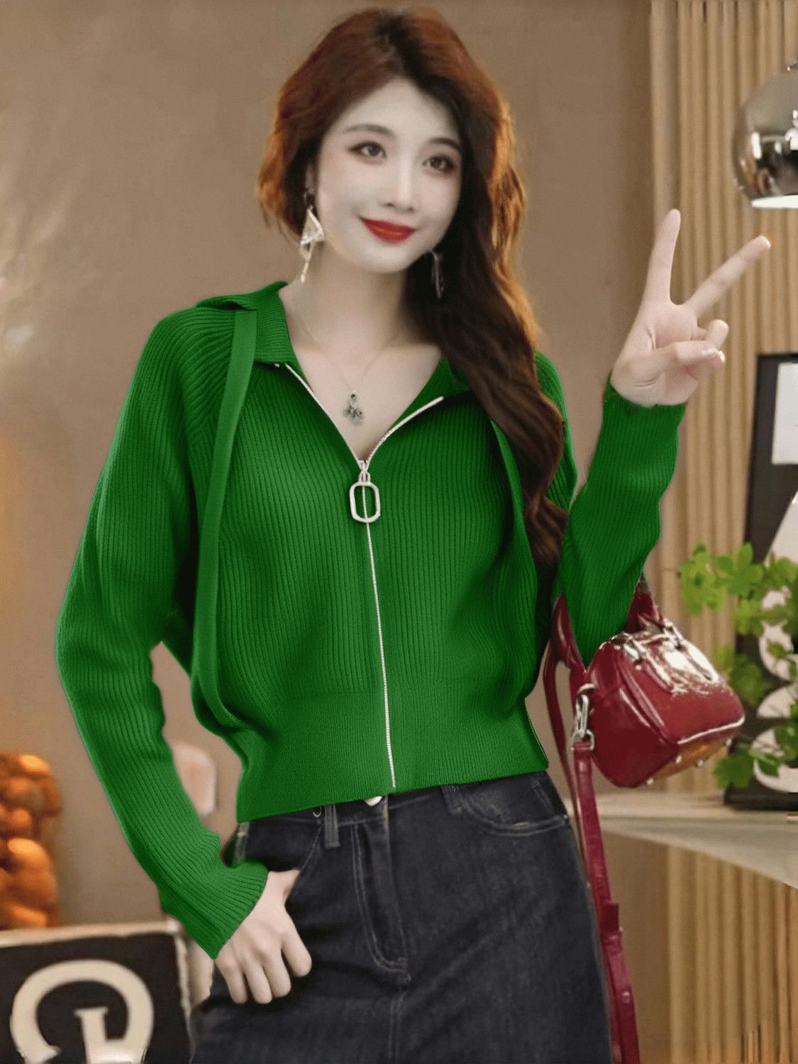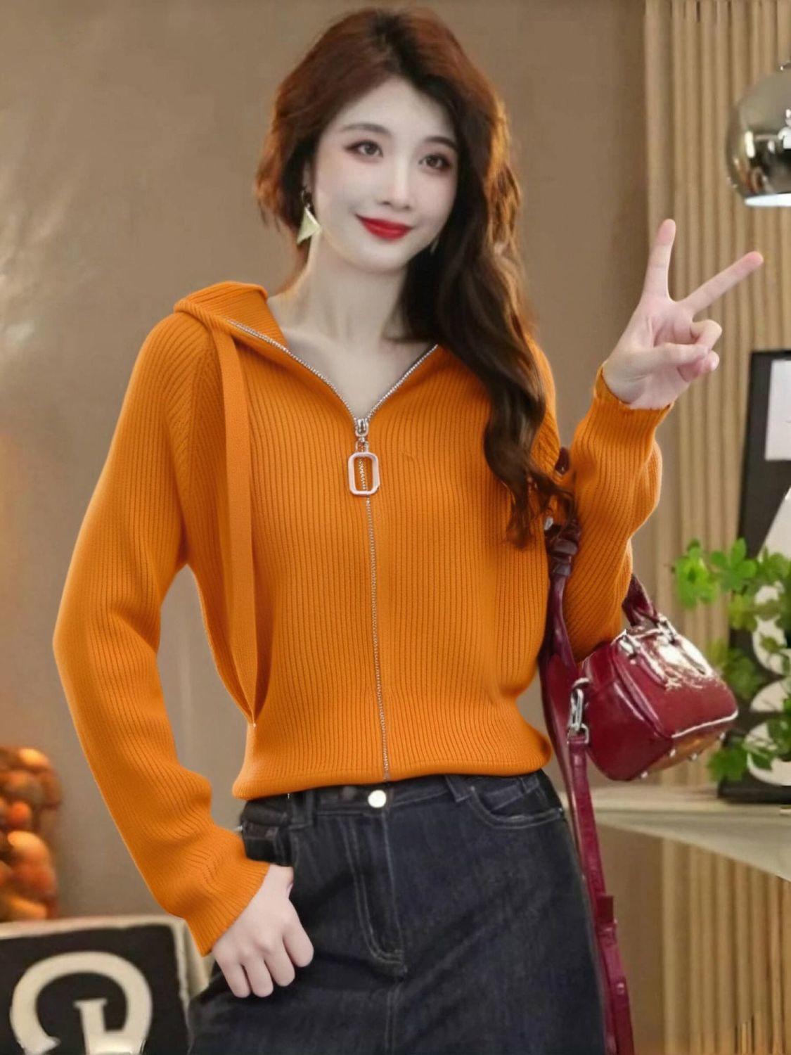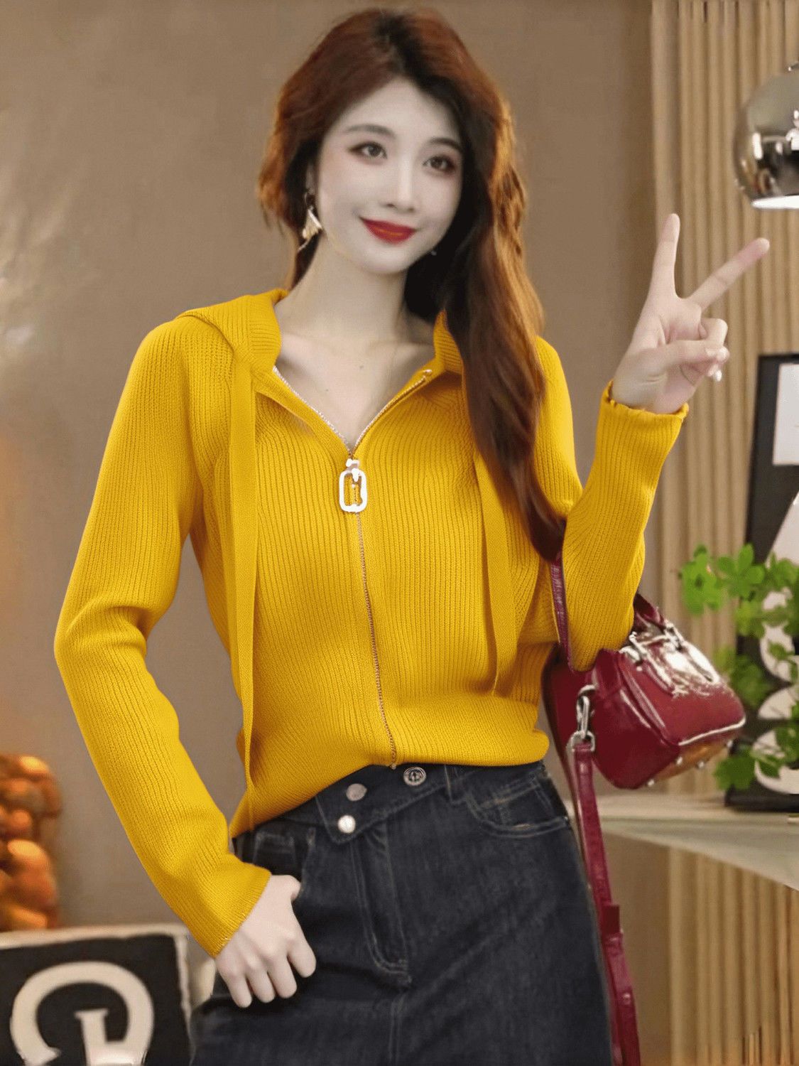 Otoño e Invierno Nuevo Suéter con Capucha Sudadera de Punto Chaqueta Cárdigan de Doble Cremallera Top Holgado Grueso de Moda