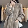 Estilo Coreano Otoño e Invierno Estilo Perezoso Línea Gruesa Talla Grande Suéter Cárdigan Elegante Largo Medio Suelto Tejido Abrigo Grueso para Mujer Moderno