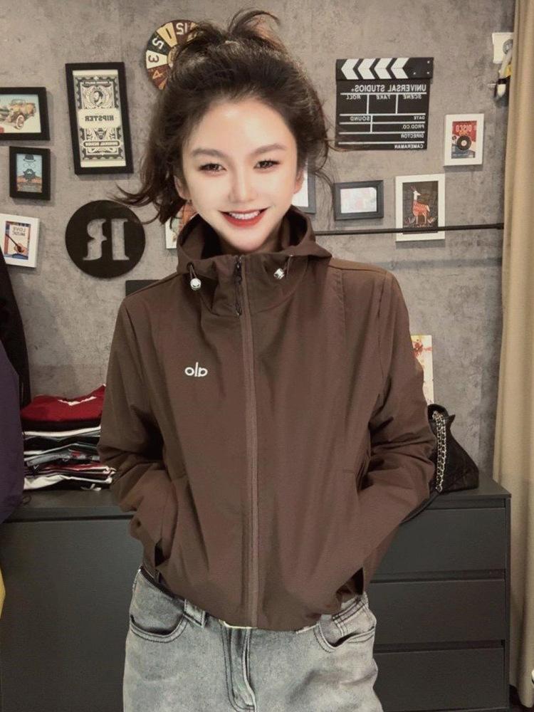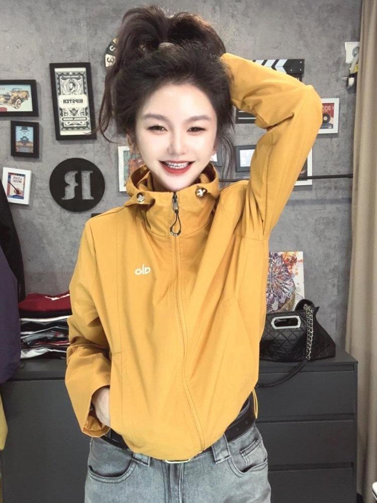 Nueva Chaqueta Cortavientos Corta con Capucha Estilo Corto Otoño Ajustada Abrigo para Mujer Chaqueta Cortavientos de Manga Larga para Mujer A7037