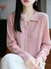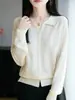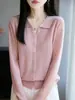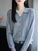 Cárdigan de Punto de Lana Merino Fina de Otoño Temprano 2025 con Cuello Vuelto, Manga Larga, Jacquard para Mujer, Holgado, Versátil, Top, Ropa Exterior