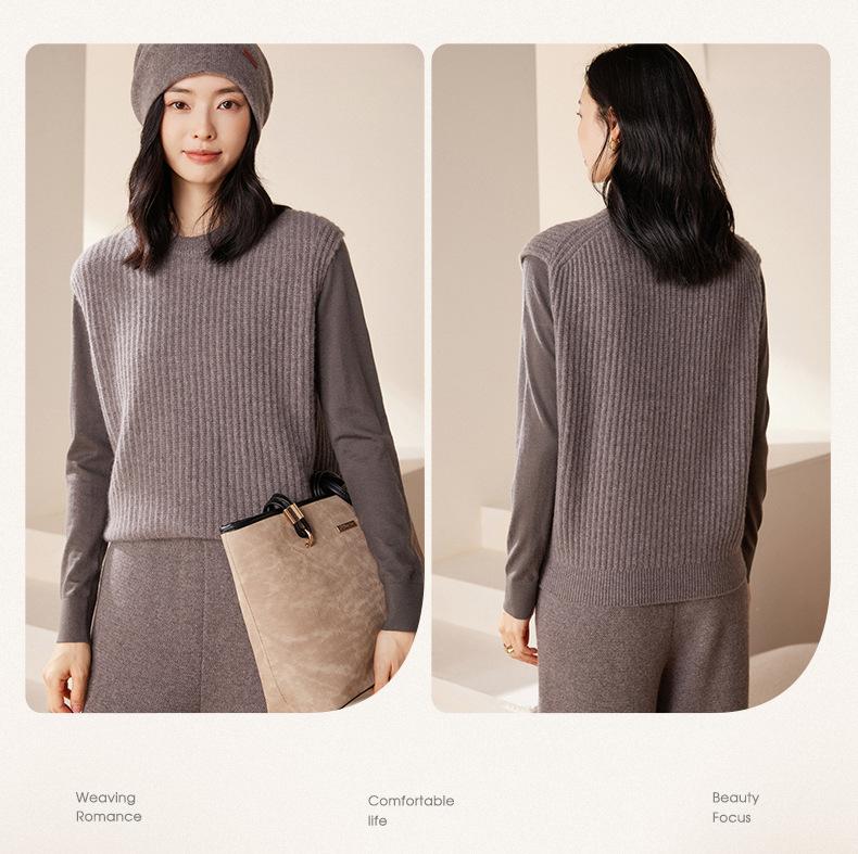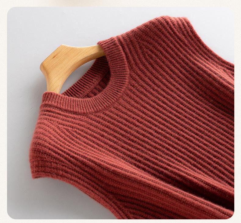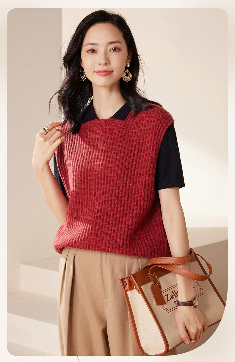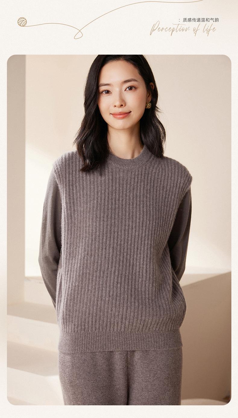 Chaleco de Punto Acanalado de Cachemira 100% Pura para Mujer Estilo Casual Holgado Versátil Ropa de Punto Nuevo Abrigo para Otoño e Invierno