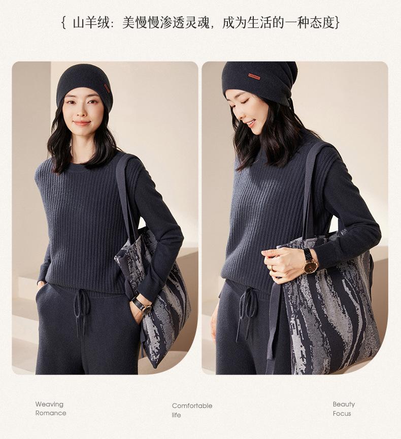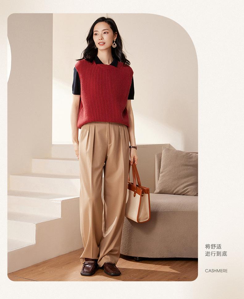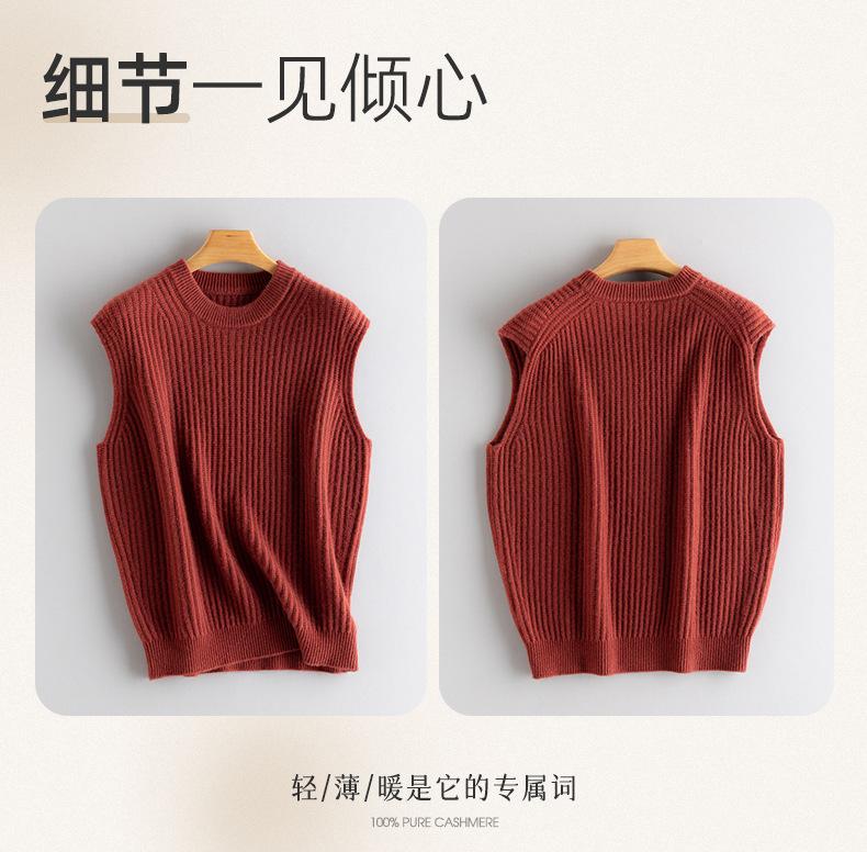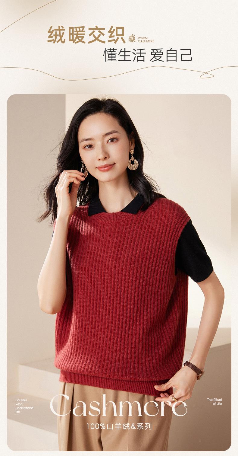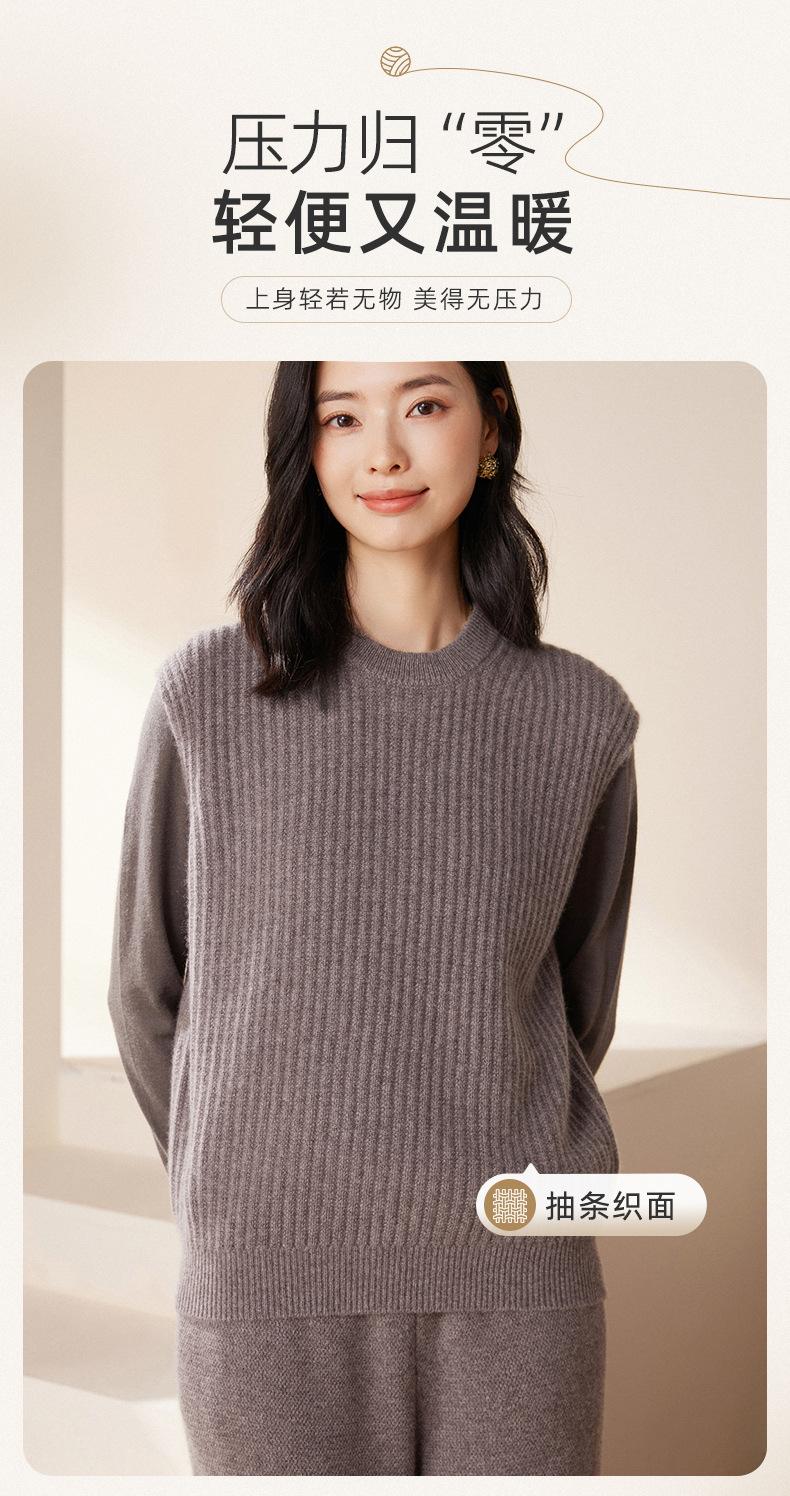 Chaleco de Punto Acanalado de Cachemira 100% Pura para Mujer Estilo Casual Holgado Versátil Ropa de Punto Nuevo Abrigo para Otoño e Invierno