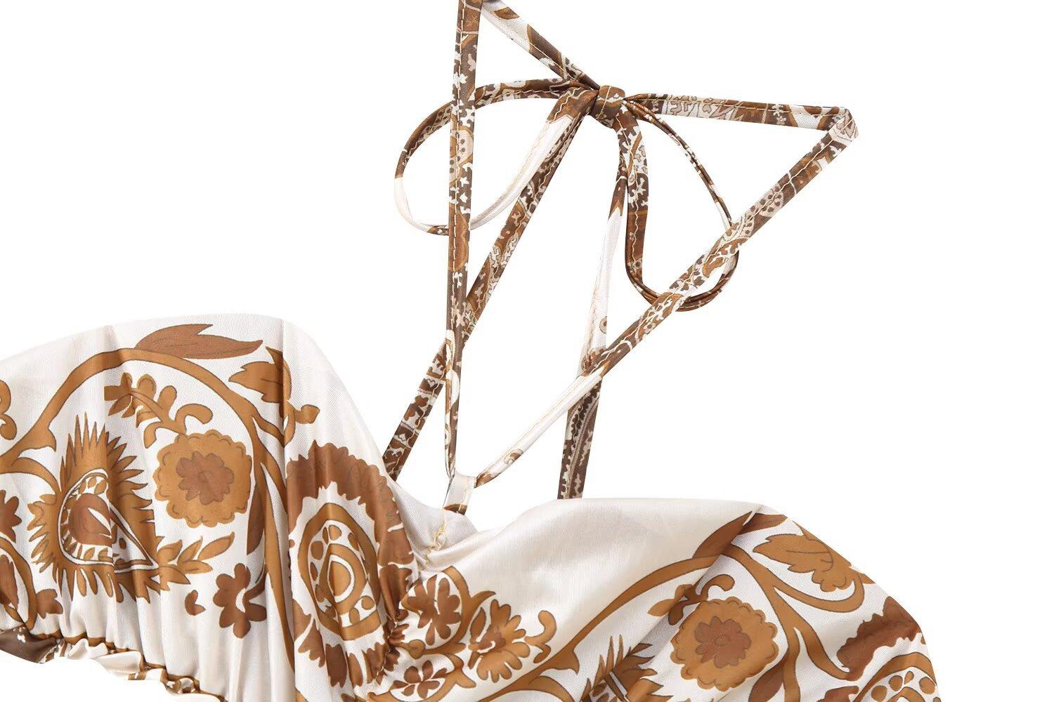 Otoño 2025 Ropa Nueva para Mujer Estilo Europeo y Americano Moda Sencilla Tirantes Halter Estampado Vestido Largo