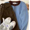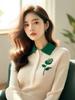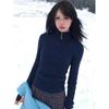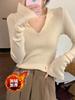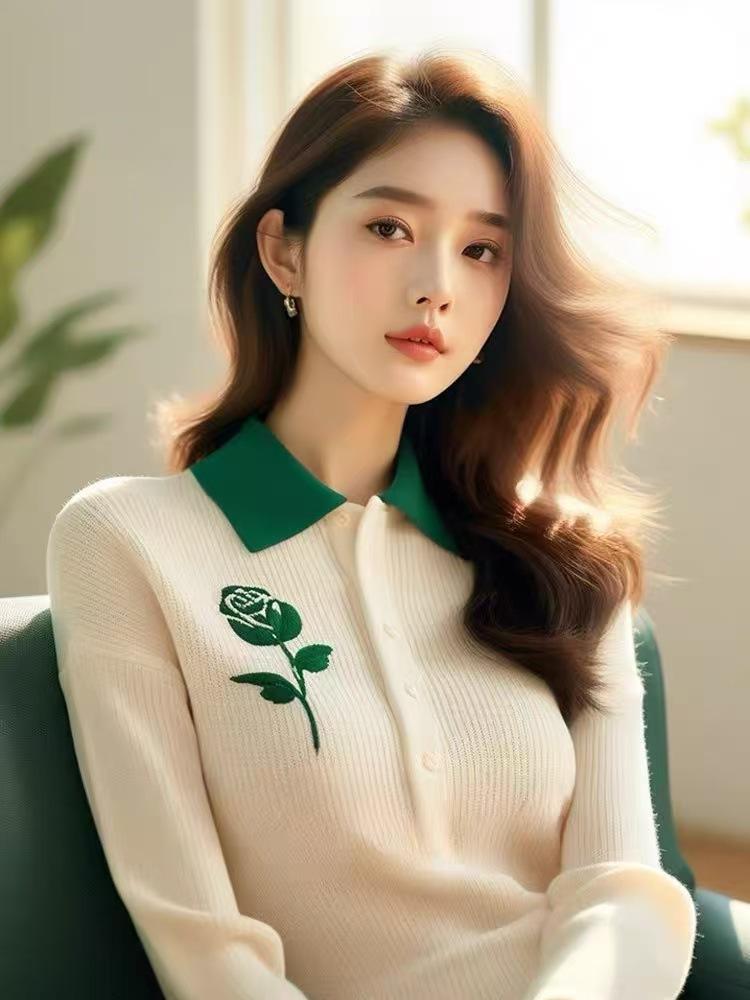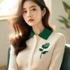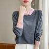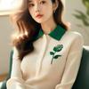 Suéter chic con cuello polo tejido base cárdigan para mujer diseño de otoño e invierno hombro recto manga larga empalmada top