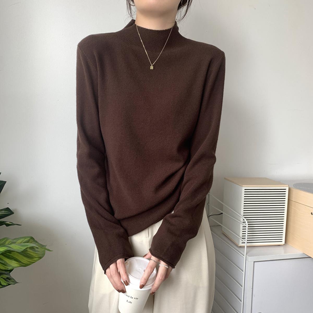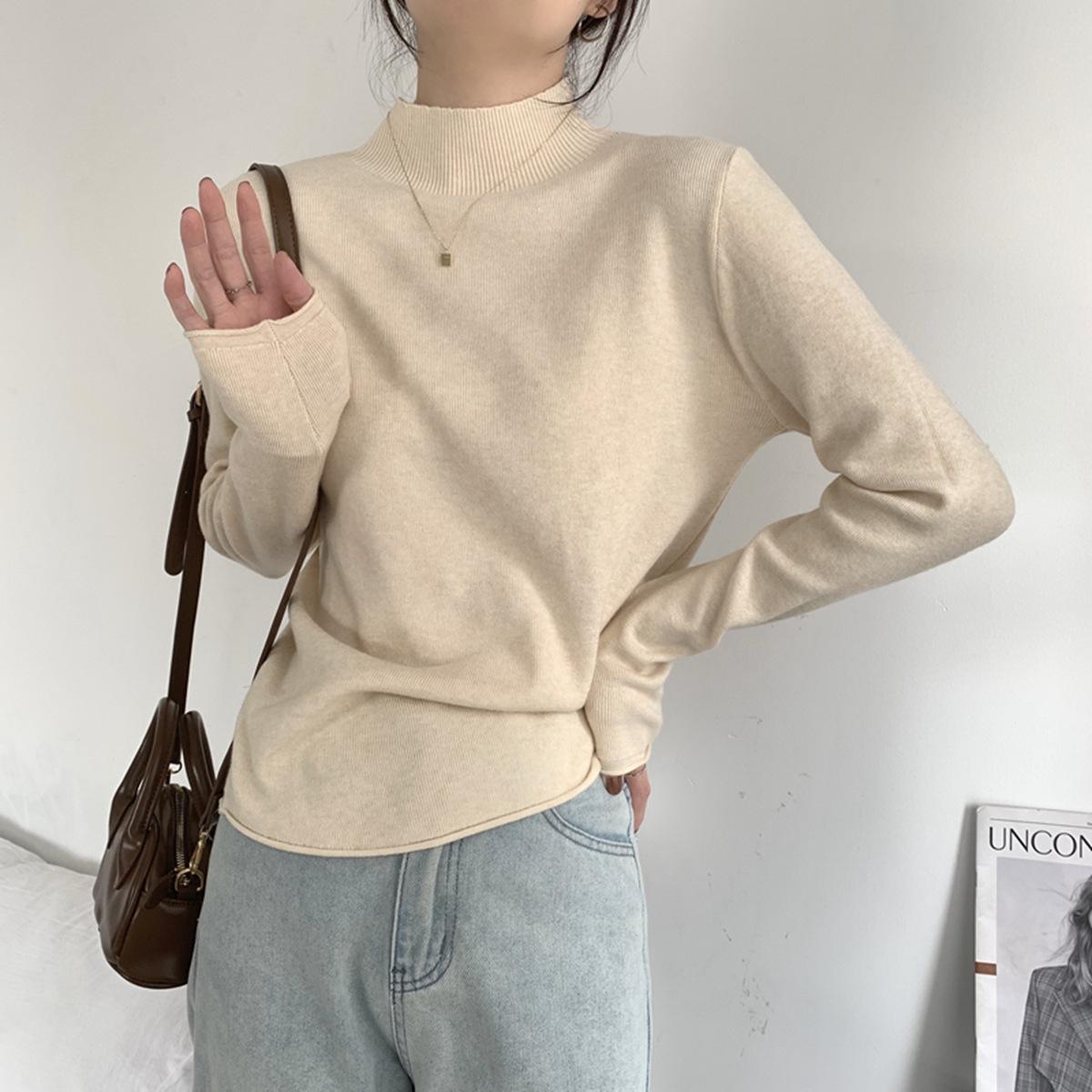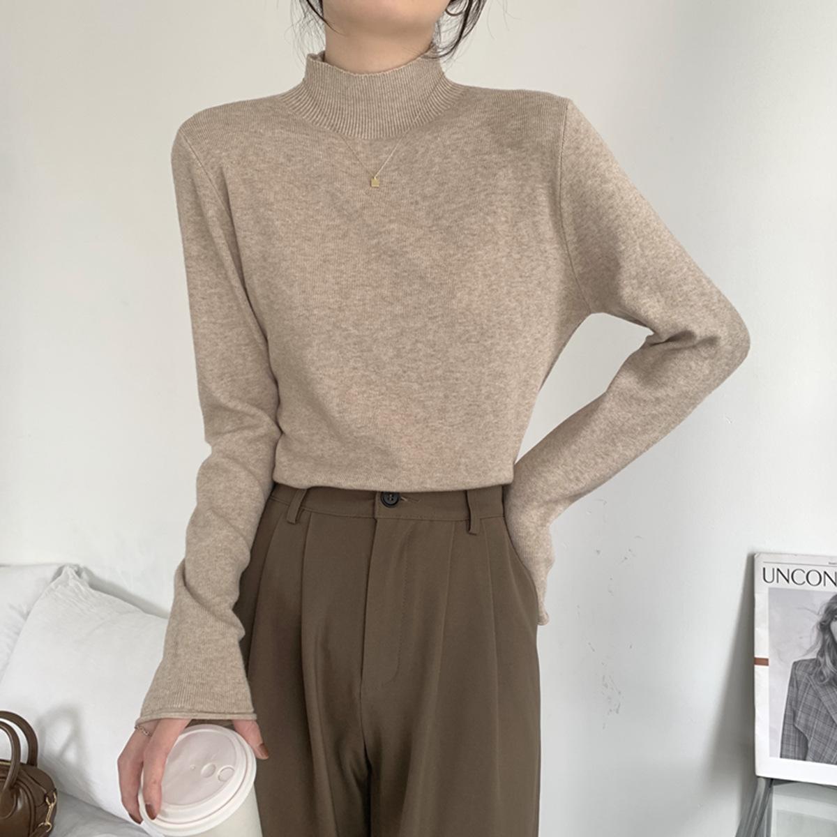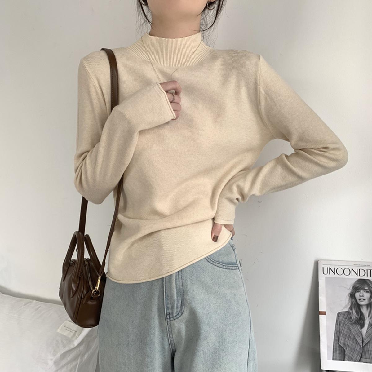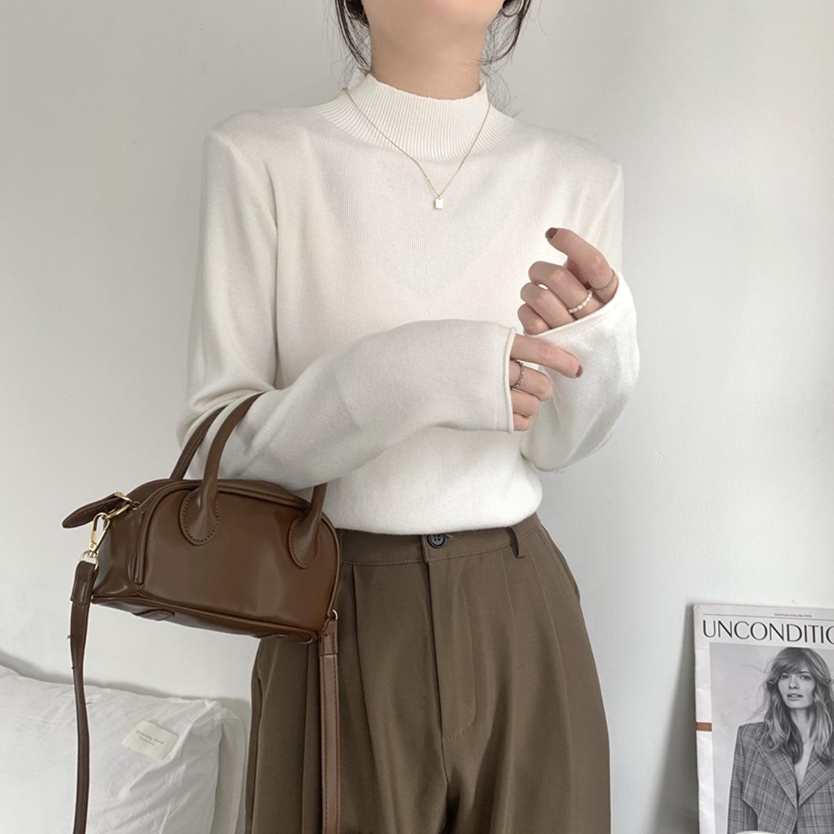 Top interior versátil de cuello alto medio estilo coreano para mujer Primavera 2025 Simple Casual de manga larga Camiseta básica de punto de bajo alto