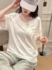 Camiseta de Fábrica de Cuello en V Oversize Versátil de Manga Corta con Hombro Caído para Mujer, Estilo Holgado Perezoso, Top Adelgazante de Verano para Chica Caliente