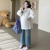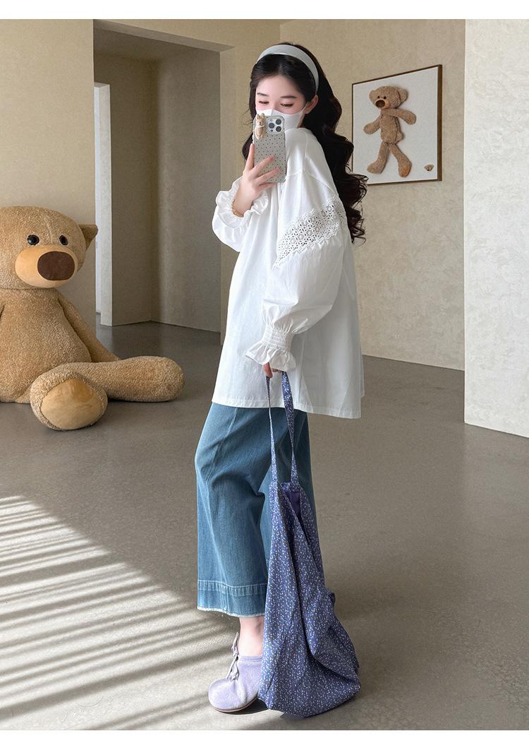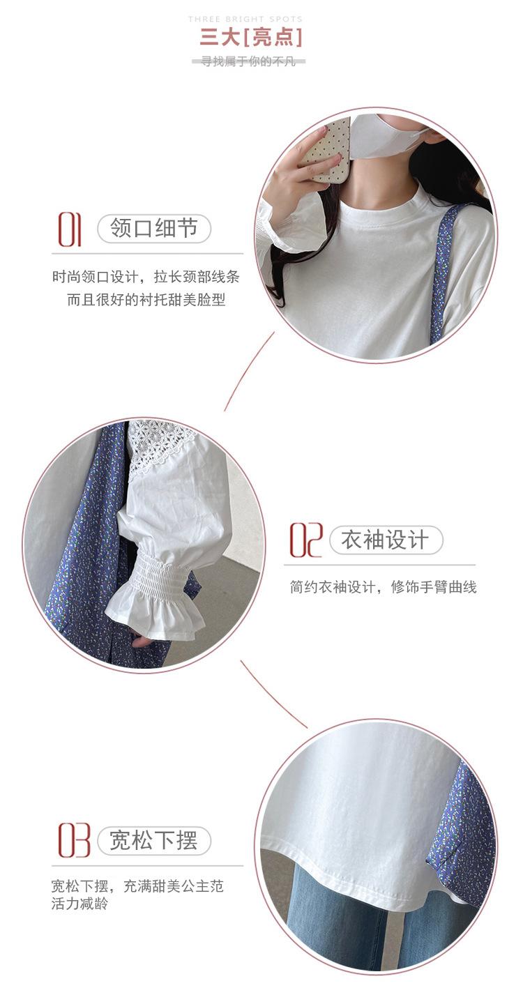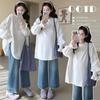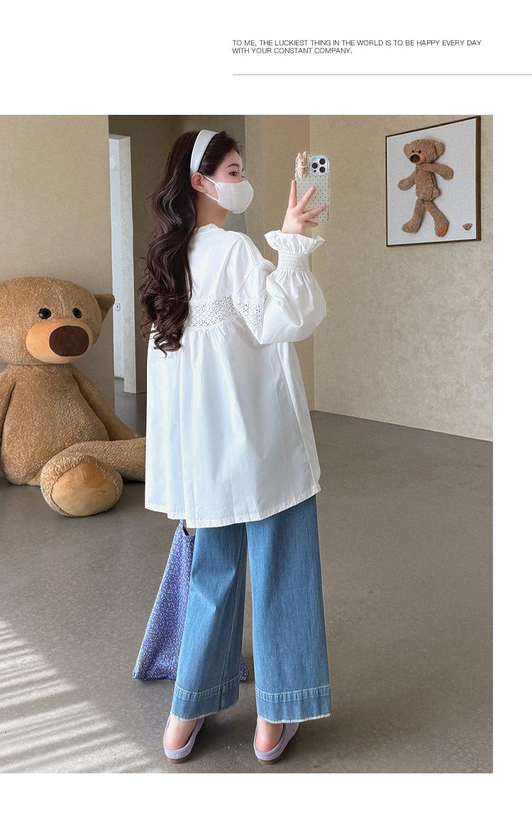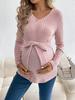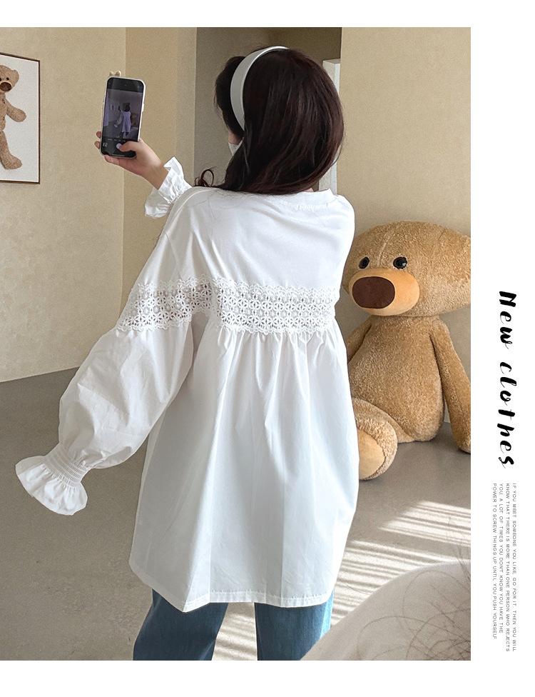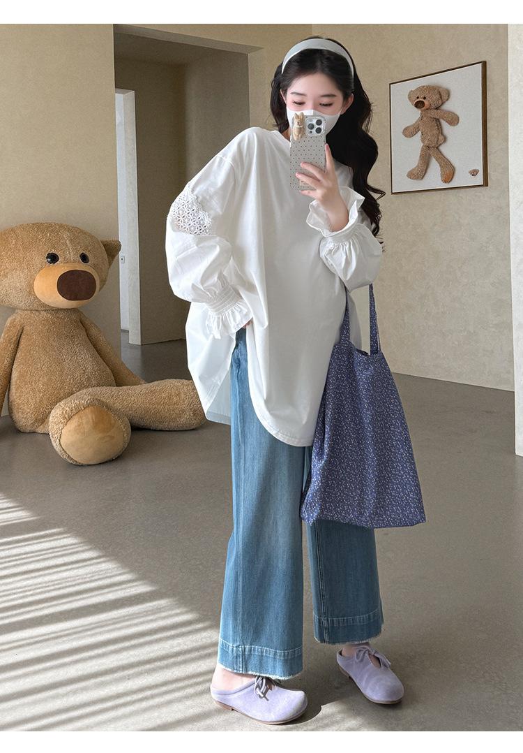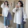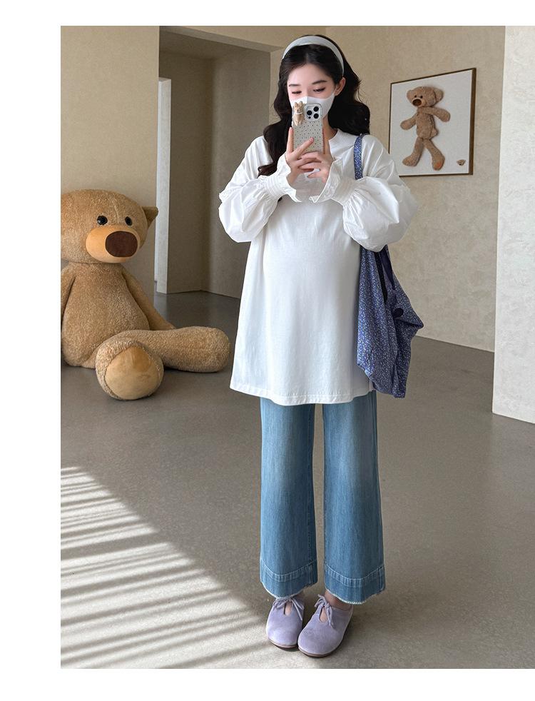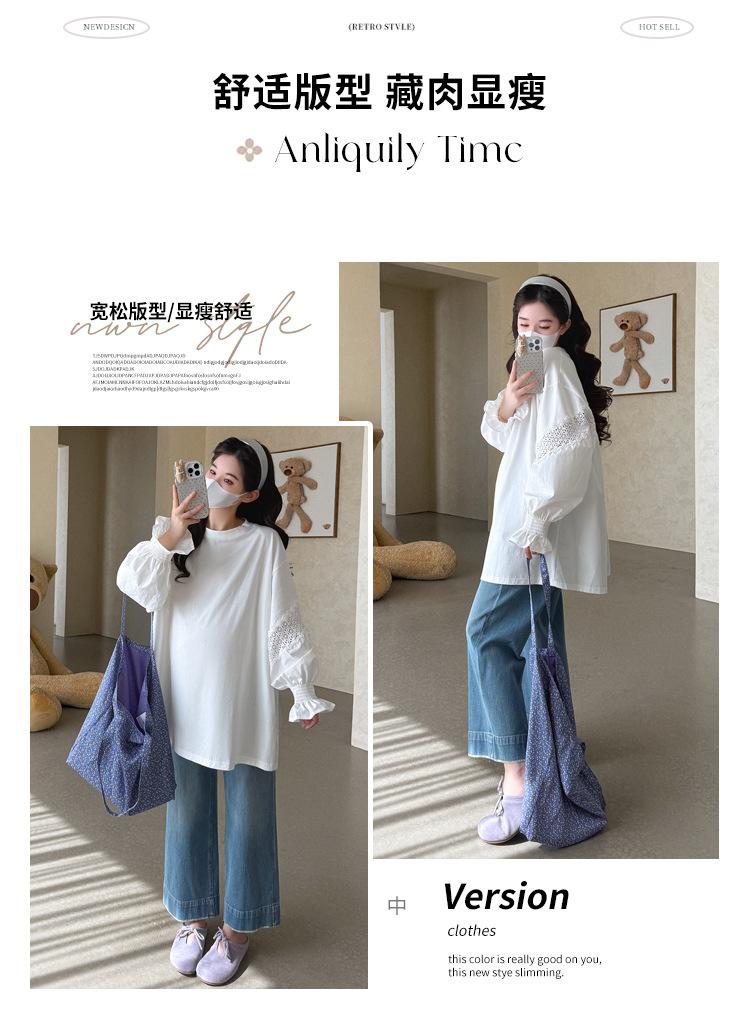 Mujeres embarazadas Camiseta de punto patchwork de algodón lavado de otoño e invierno suelta panel grande patchwork de encaje top básico que cubre la cadera