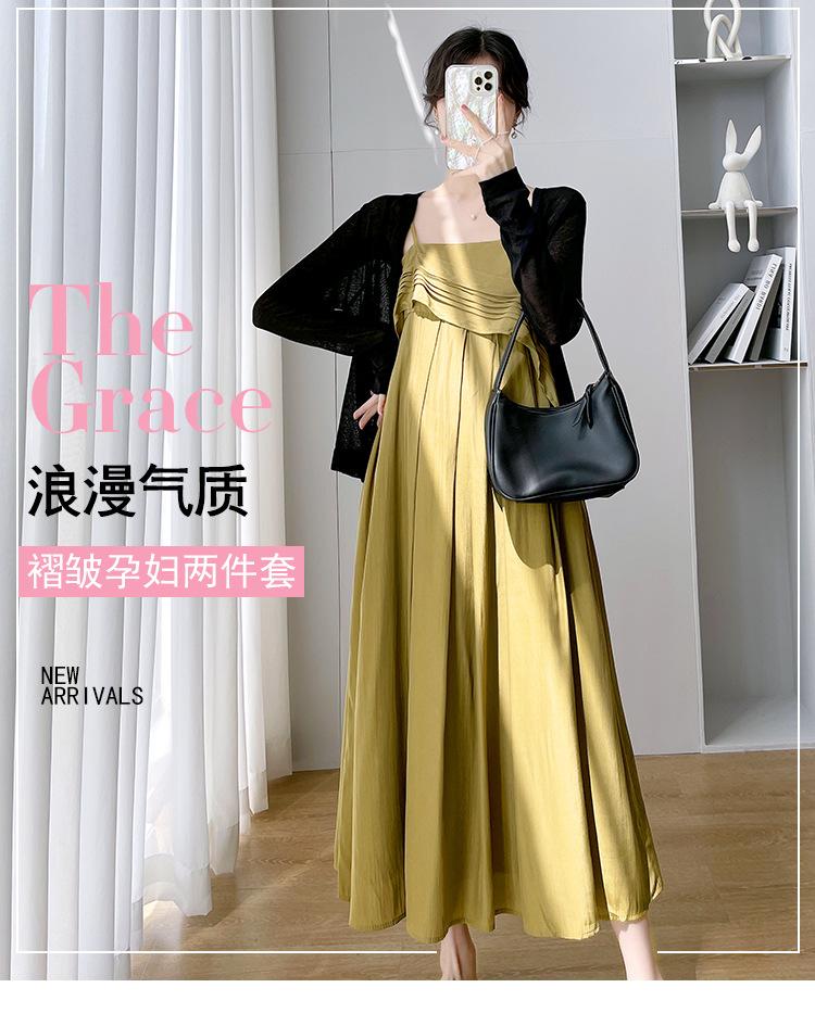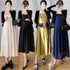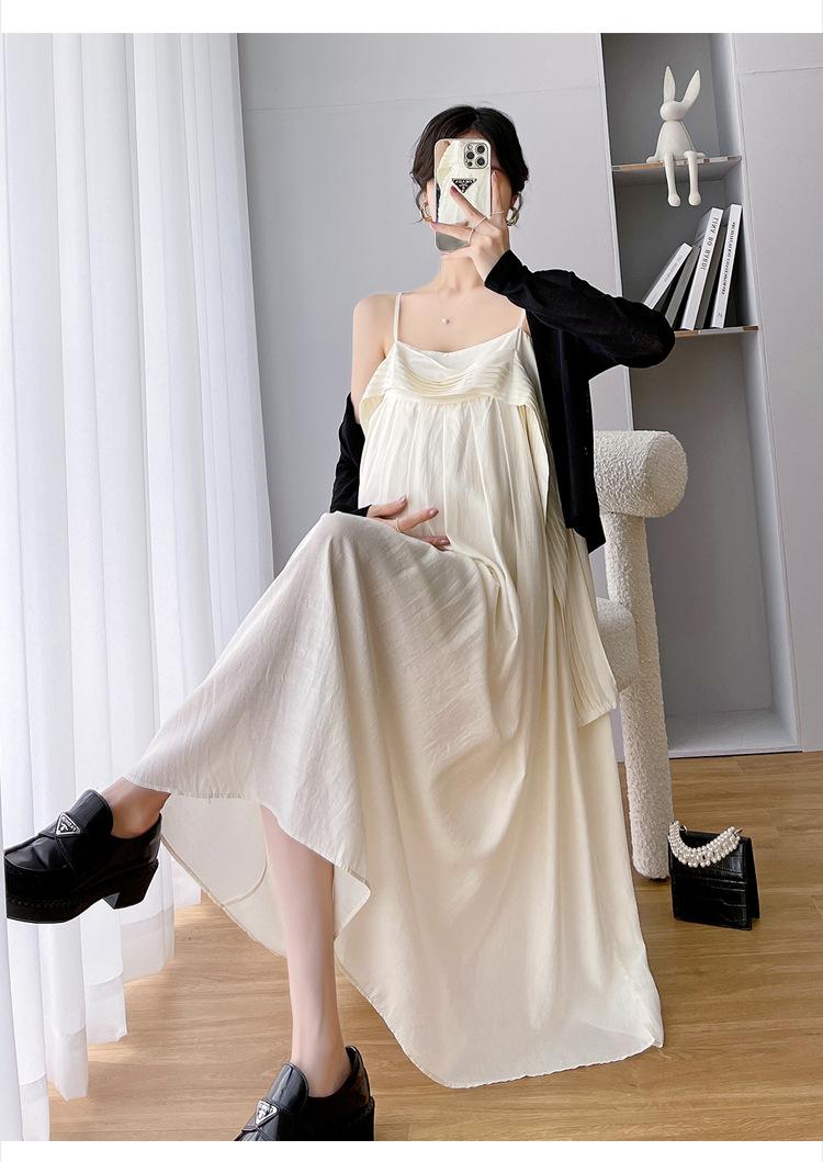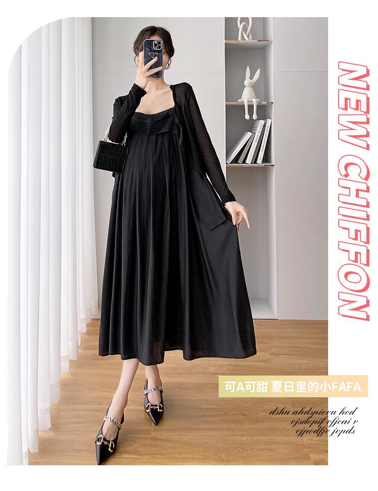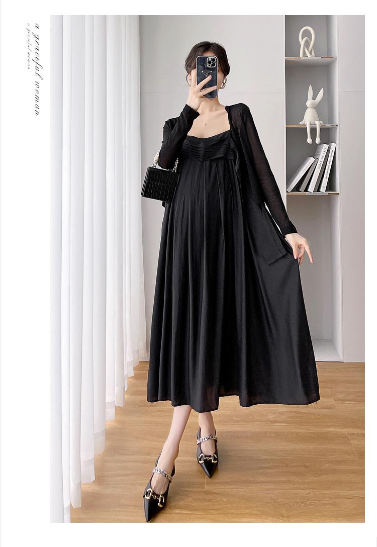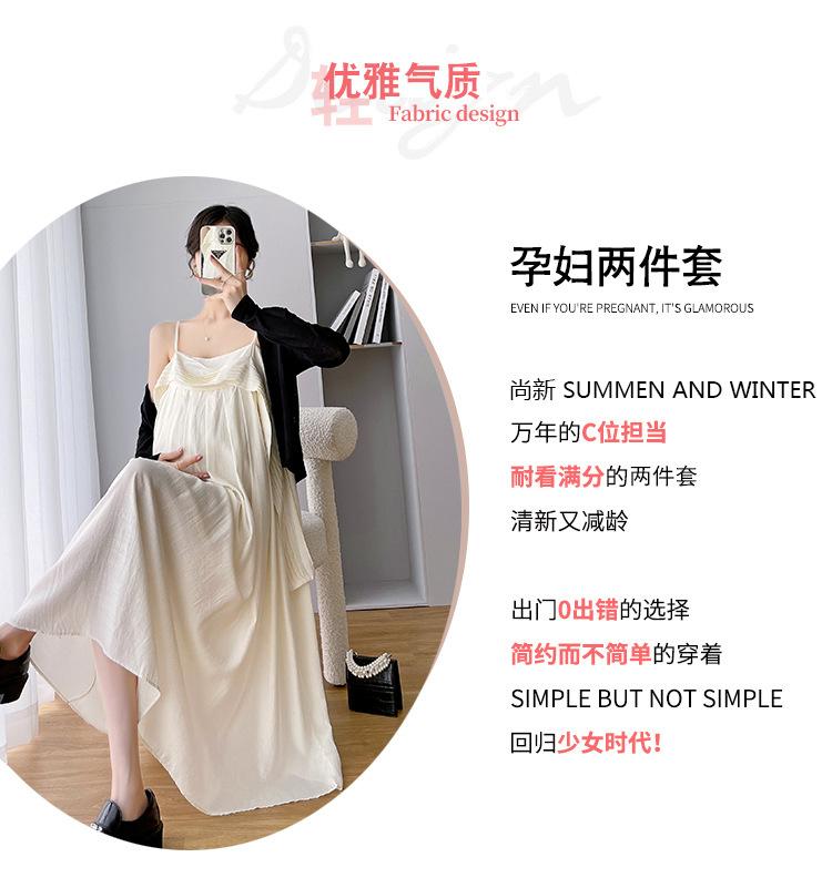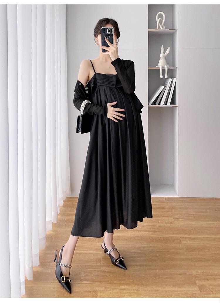2024 Nuevo Verano Ropa de Maternidad Suelta Retro Francés Falda de Tirantes Vestido de Maternidad + Chaqueta Cárdigan Negra