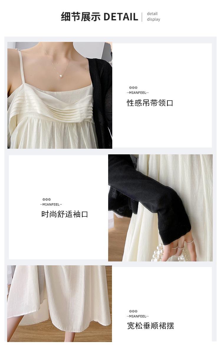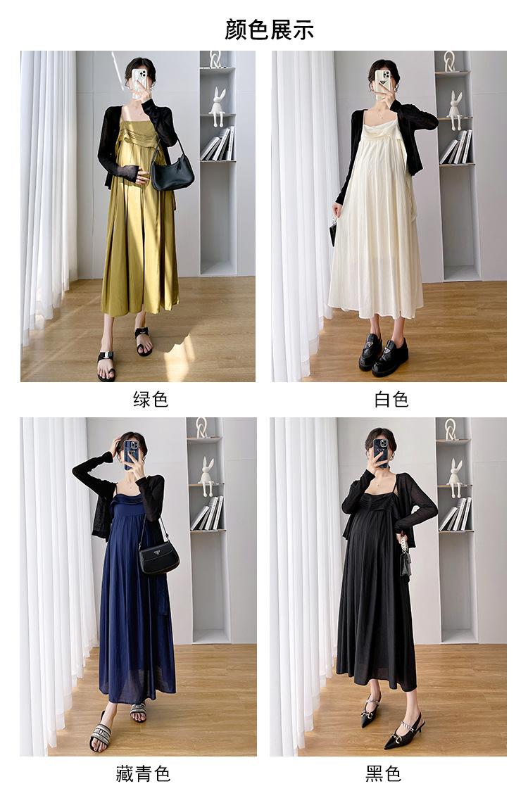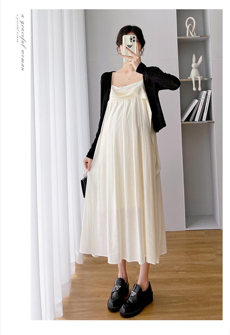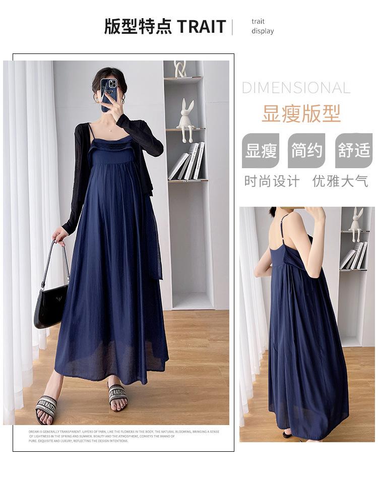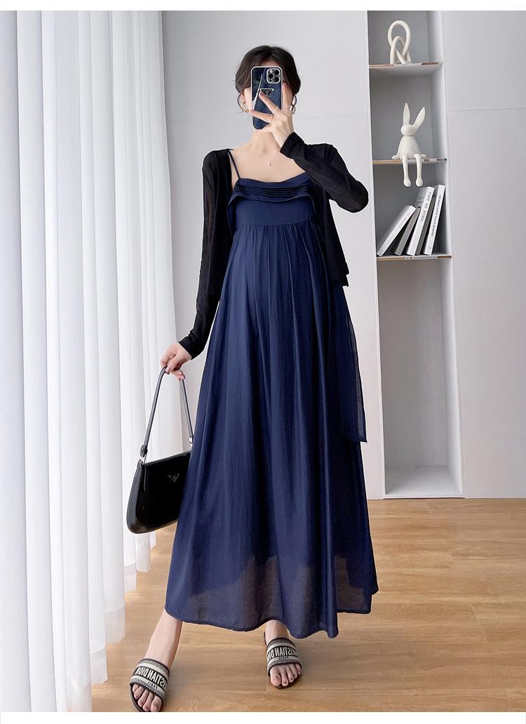 2024 Nuevo Verano Ropa de Maternidad Suelta Retro Francés Falda de Tirantes Vestido de Maternidad + Chaqueta Cárdigan Negra