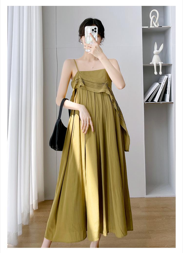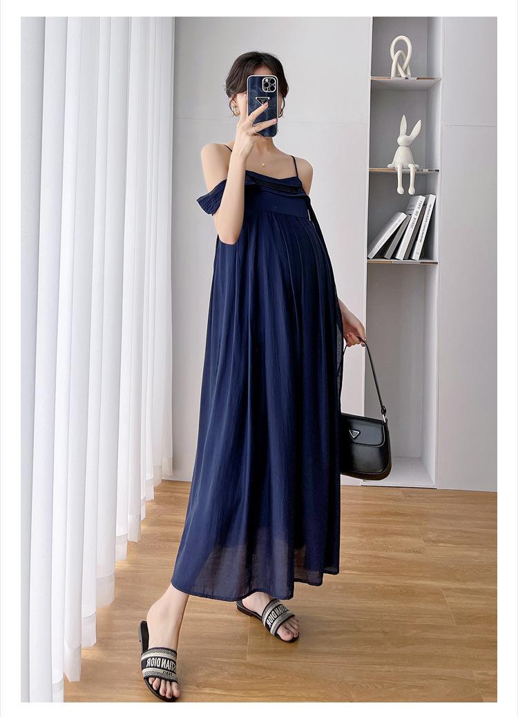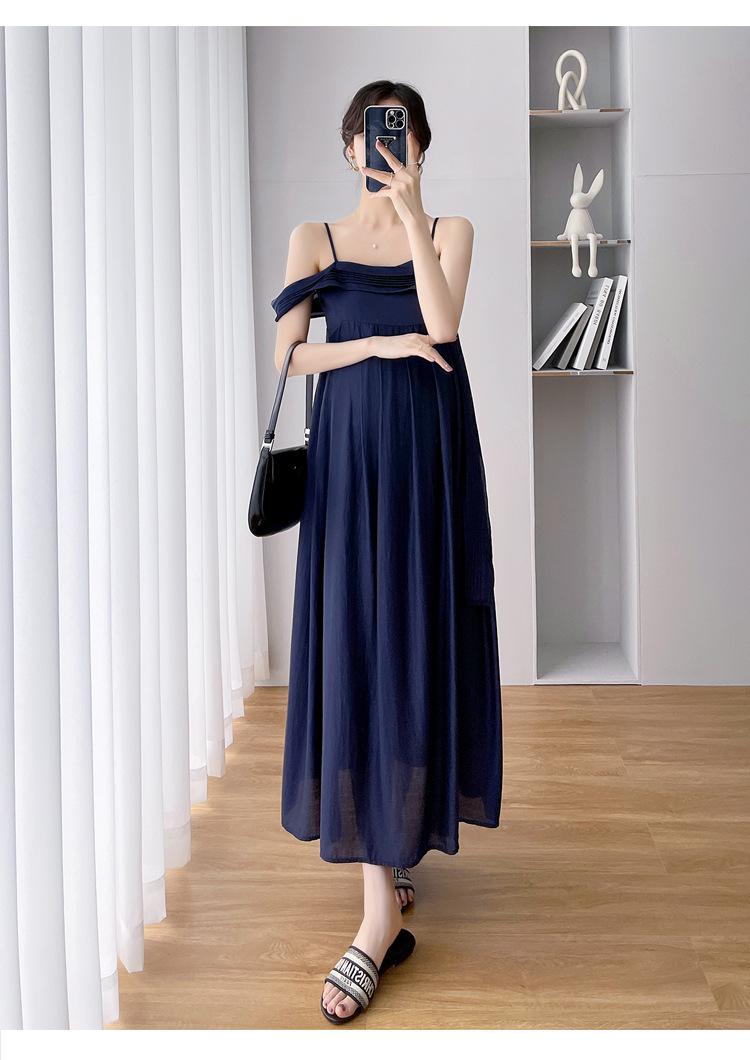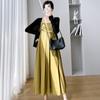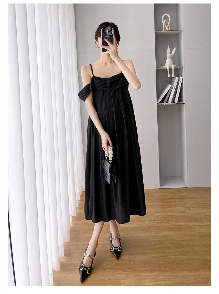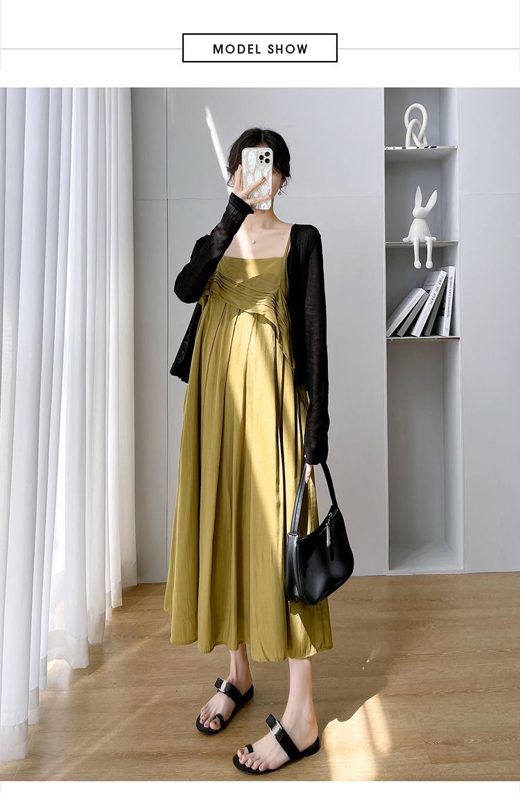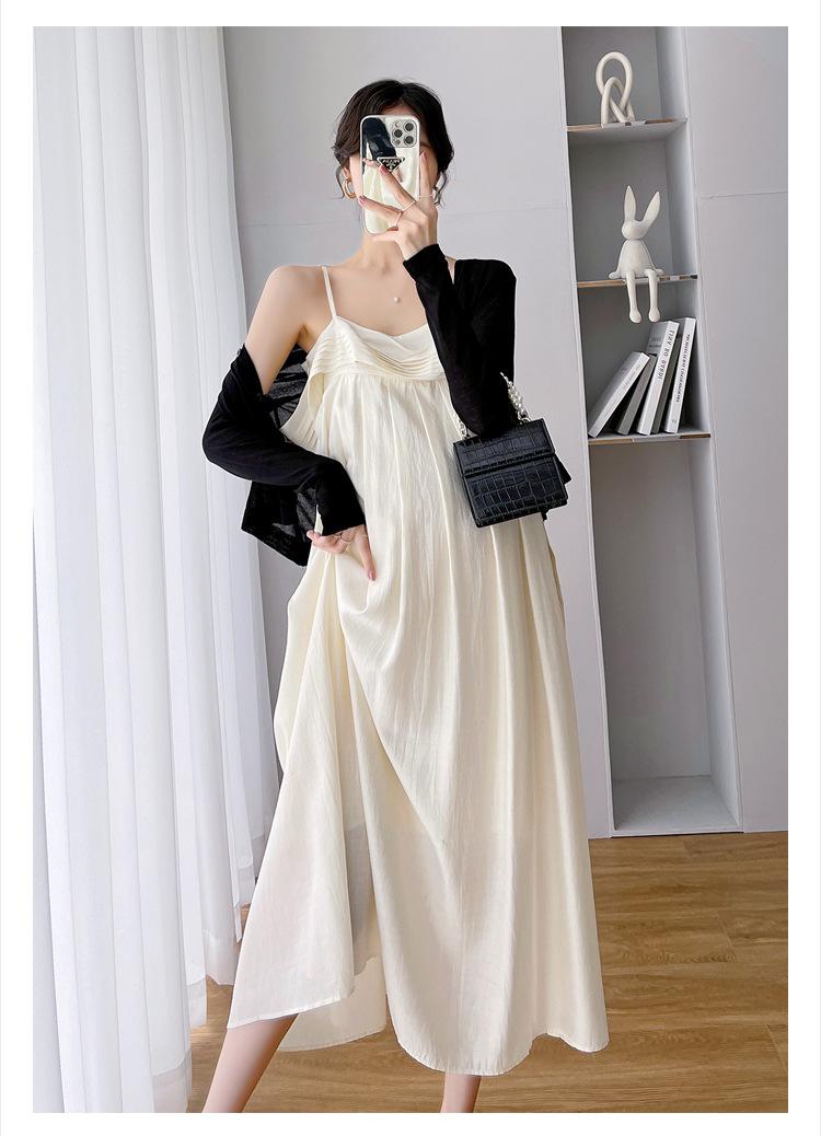 2024 Nuevo Verano Ropa de Maternidad Suelta Retro Francés Falda de Tirantes Vestido de Maternidad + Chaqueta Cárdigan Negra