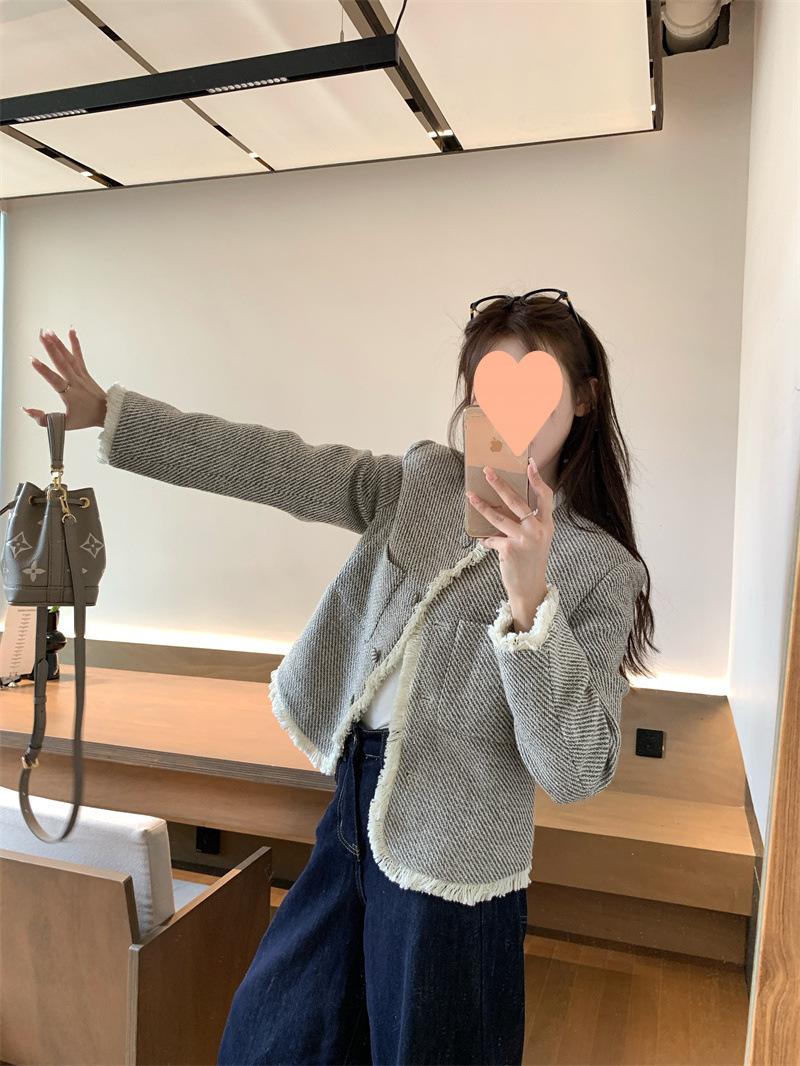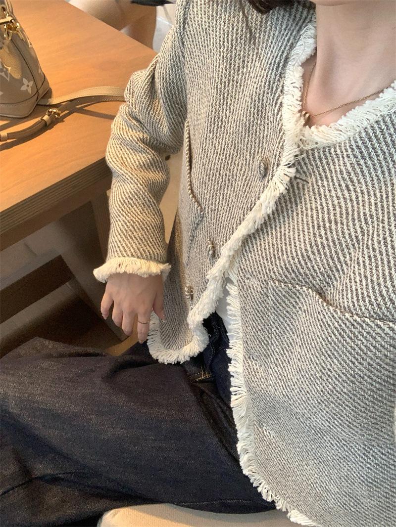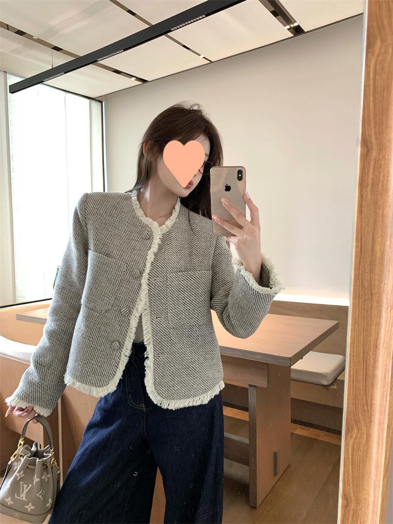 Abrigo de tweed de estilo Chanel corto con flecos de alta gama para mujer otoño 2024 nuevo top francés suelto con temperamento