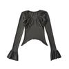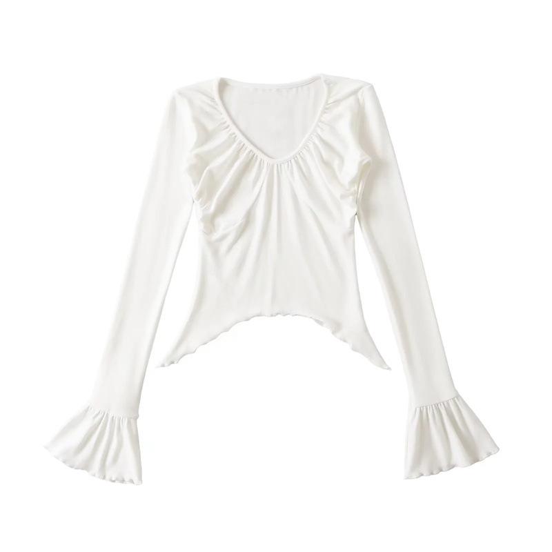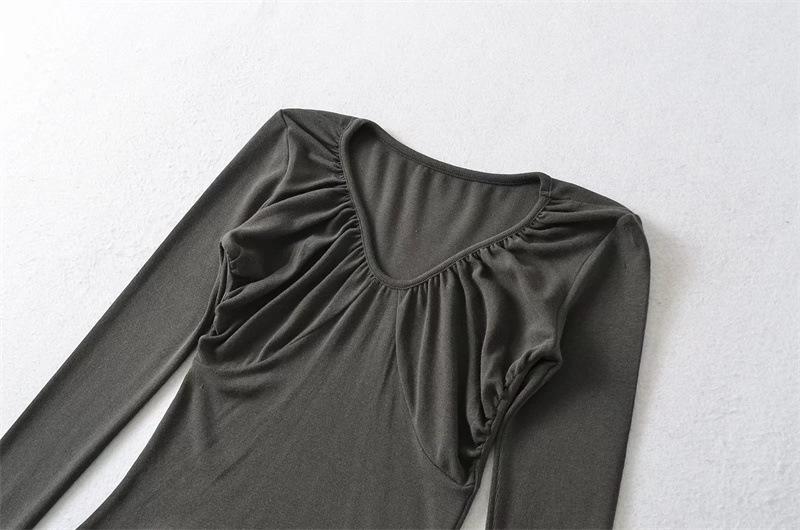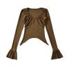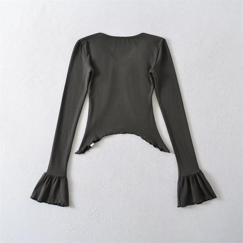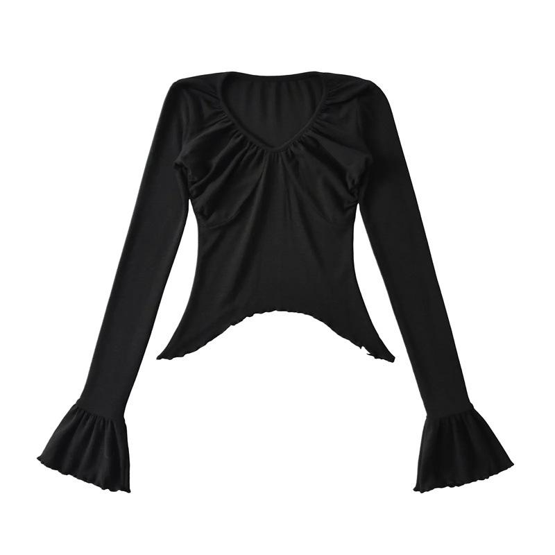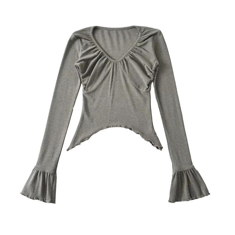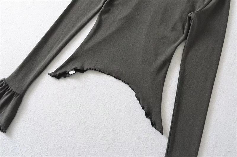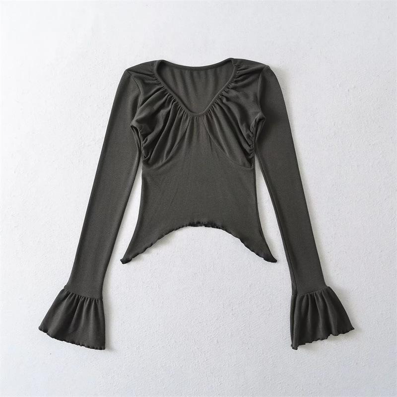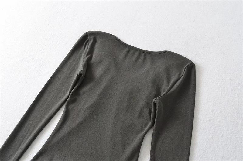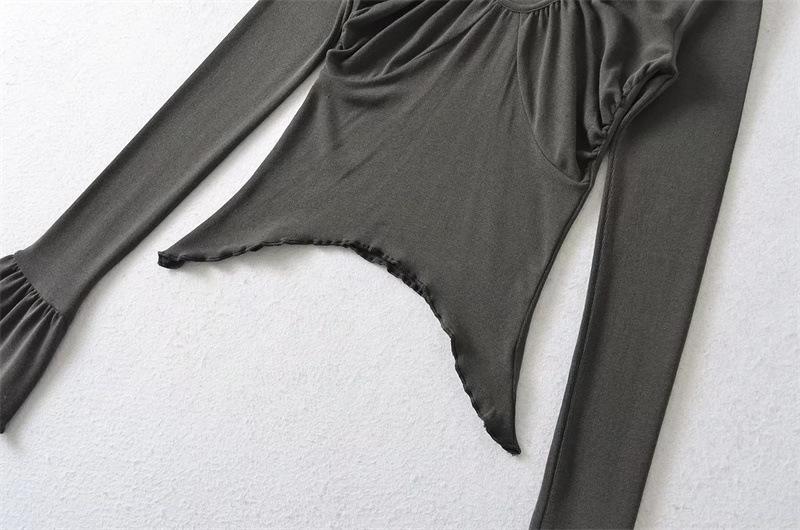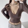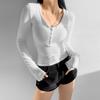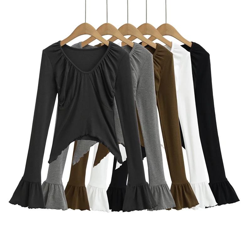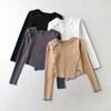 Nuevo Diseño Sexy de Otoño e Invierno Americano Camiseta Básica con Cuello en V de Corte Ajustado y Camiseta Asimétrica de Manga Larga para Mujer