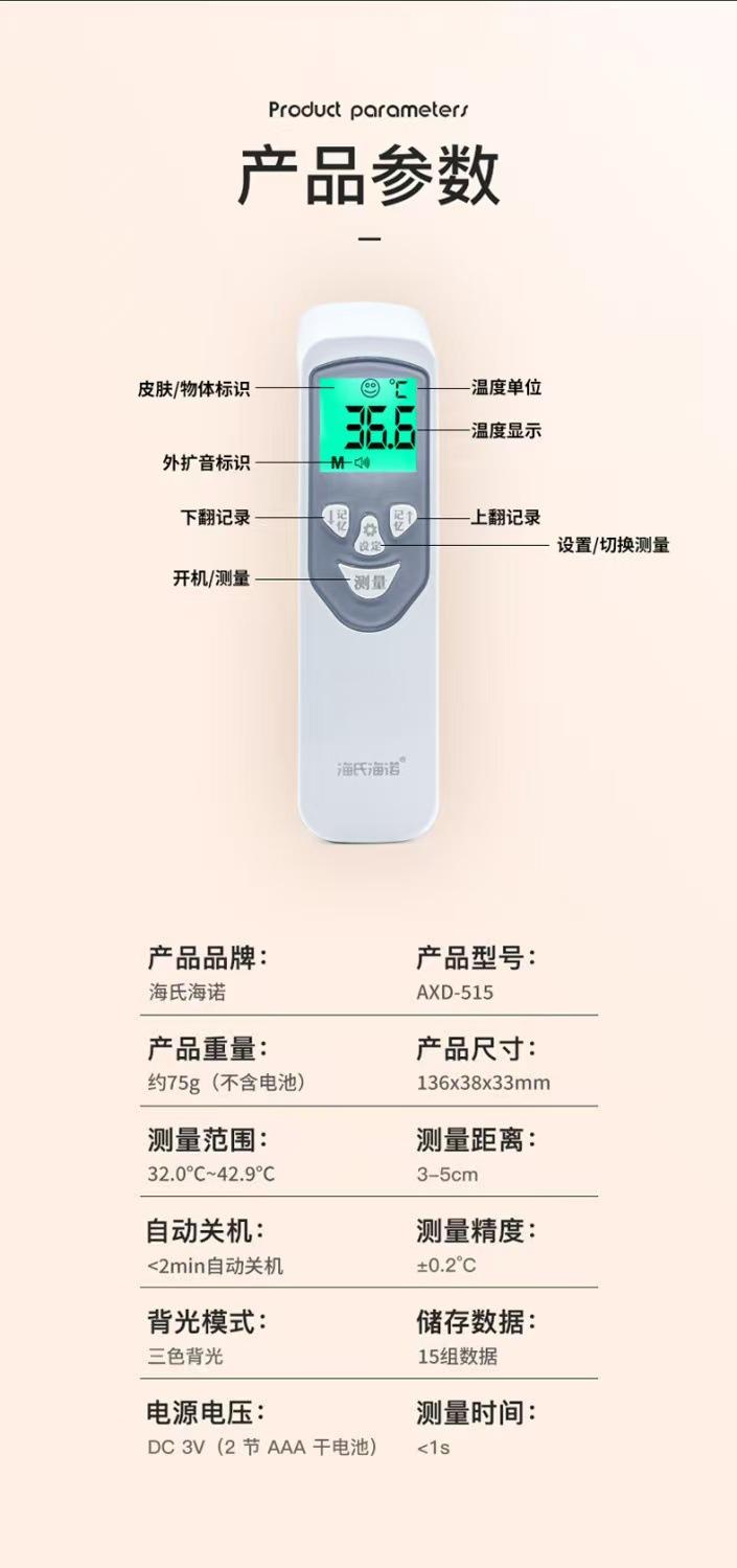 Haishi hainuo medical infrared thermometer (replacement for new model ch-815) --1 box (original axd-515), Hain...