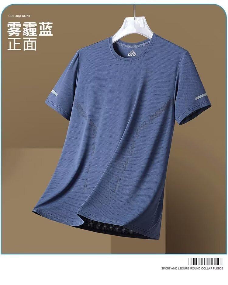 Nueva Camiseta de Malla de Verano para Hombre Delgada Transpirable de Secado Rápido Cuello Redondo Manga Larga Holgada Deportiva Casual Top de Manga Corta