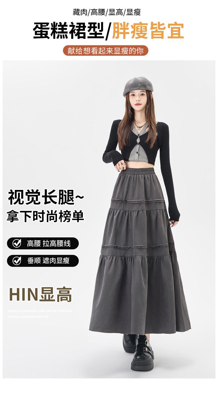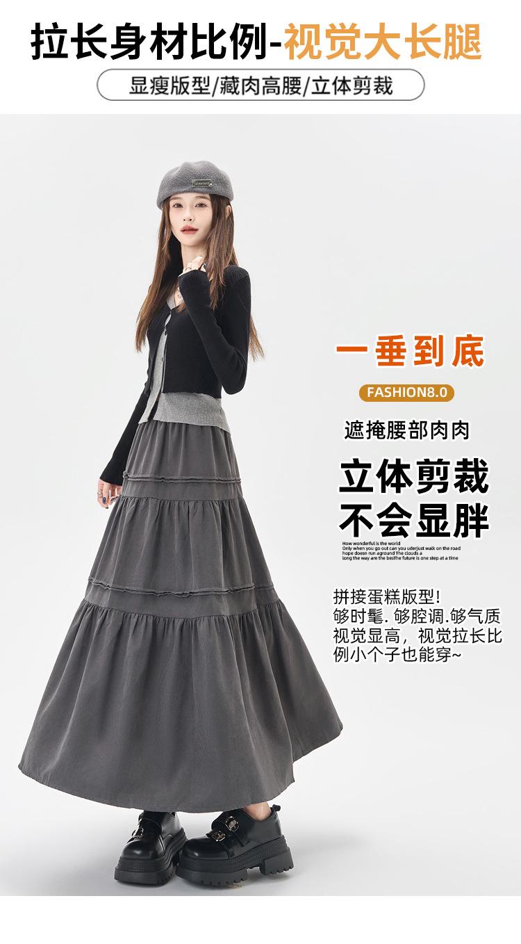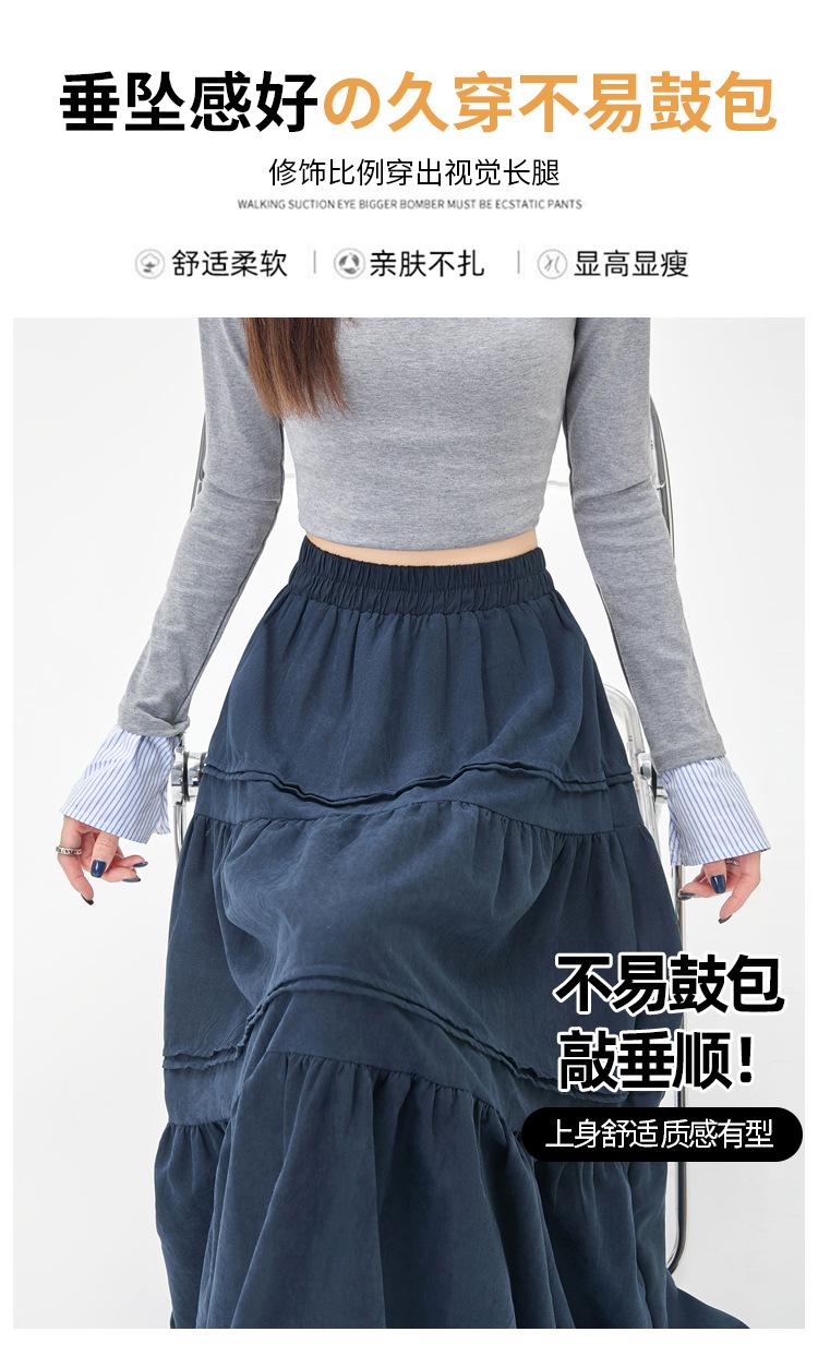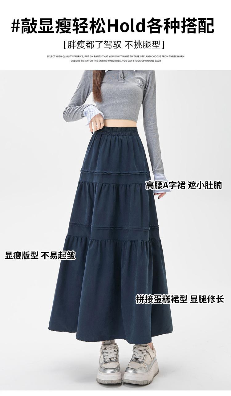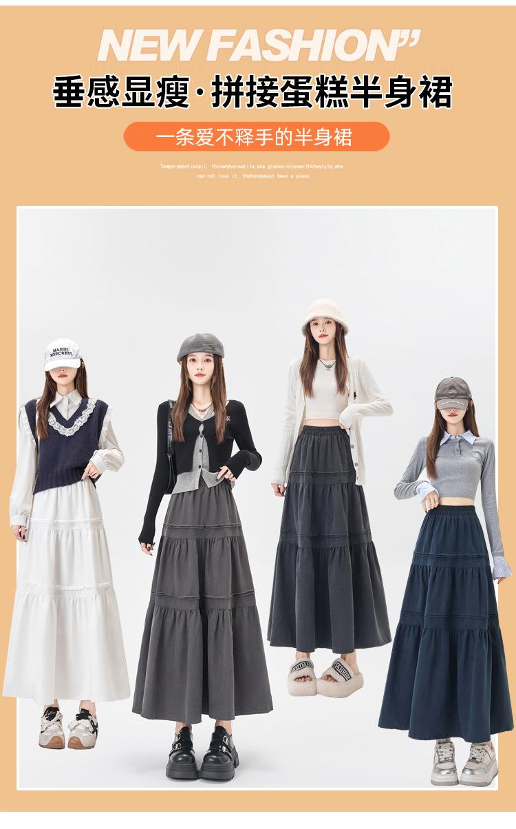 Falda Midi de Pastel Patchwork Plisada Tendencia de Moda Femenina 2025 Otoño Cintura Alta Adelgazante Largo Medio Falda Abullonada Falda Paraguas de Vuelo Completo
