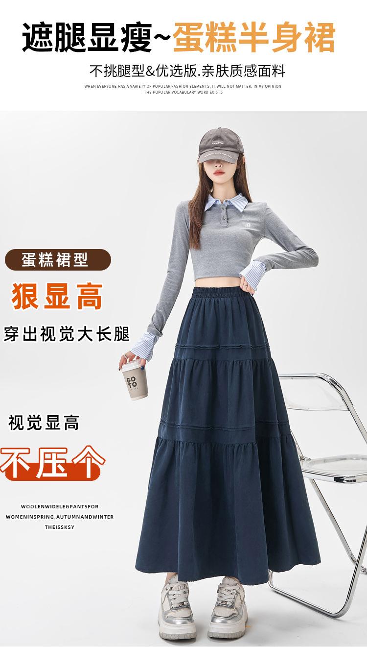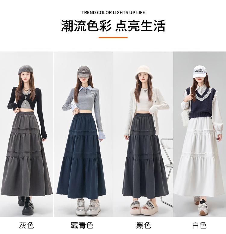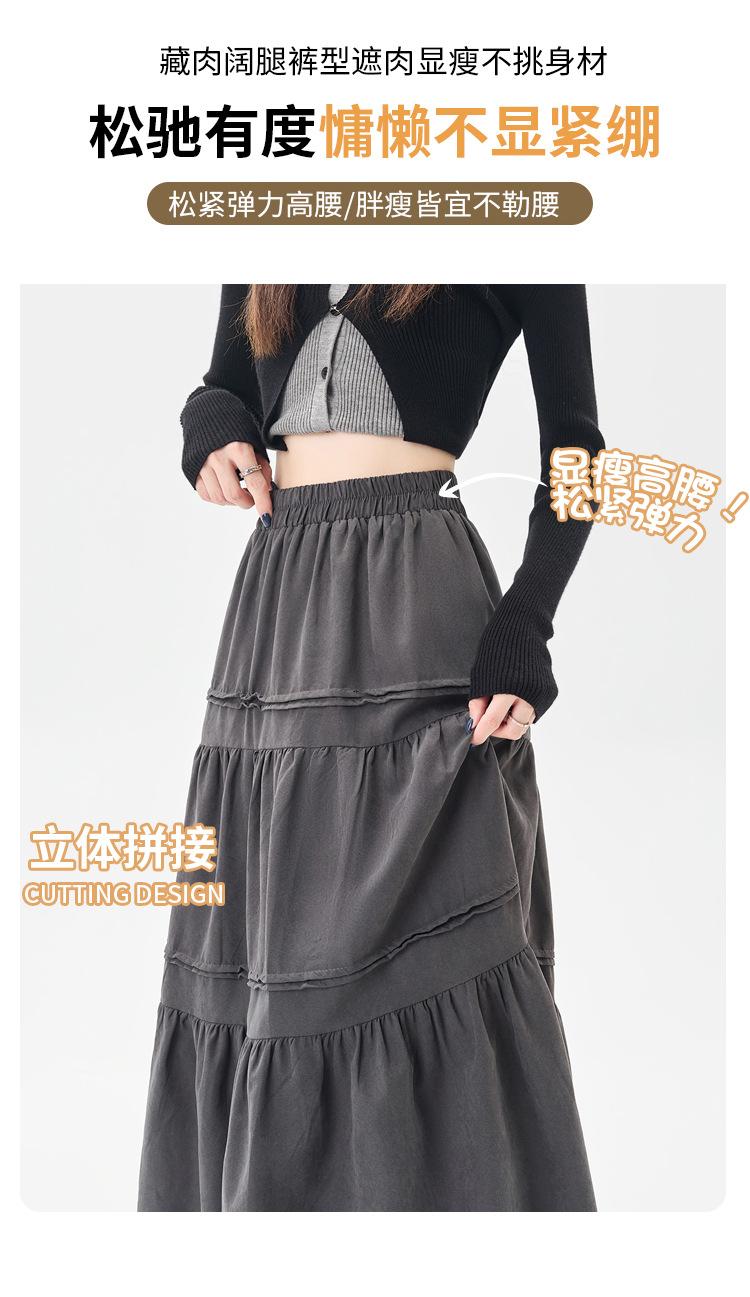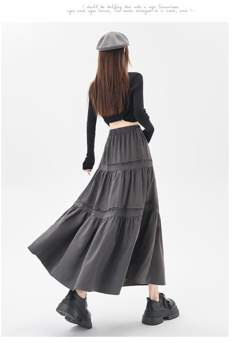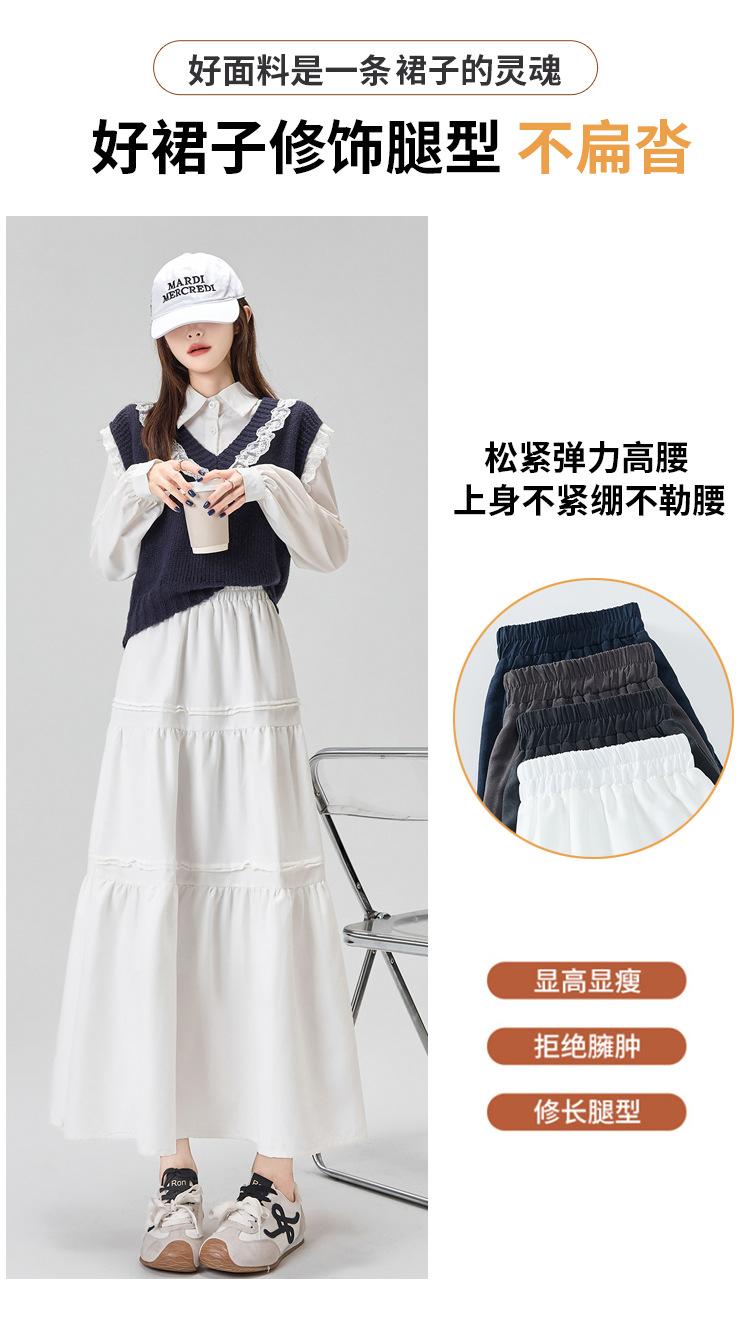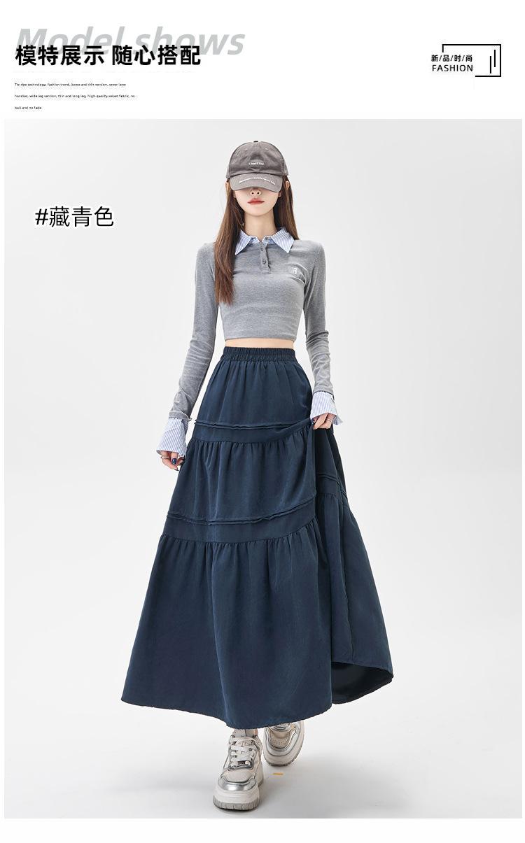 Falda Midi de Pastel Patchwork Plisada Tendencia de Moda Femenina 2025 Otoño Cintura Alta Adelgazante Largo Medio Falda Abullonada Falda Paraguas de Vuelo Completo