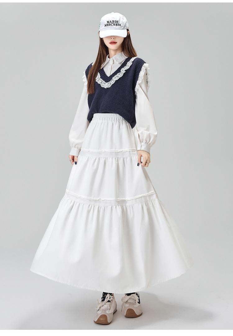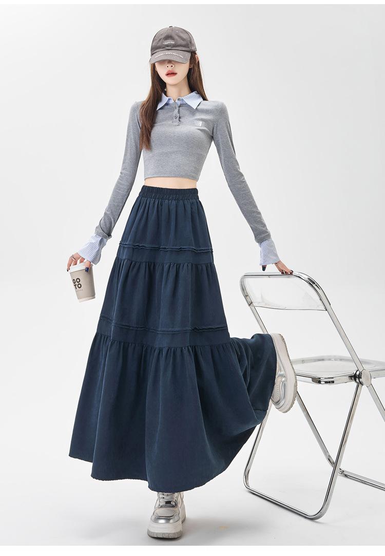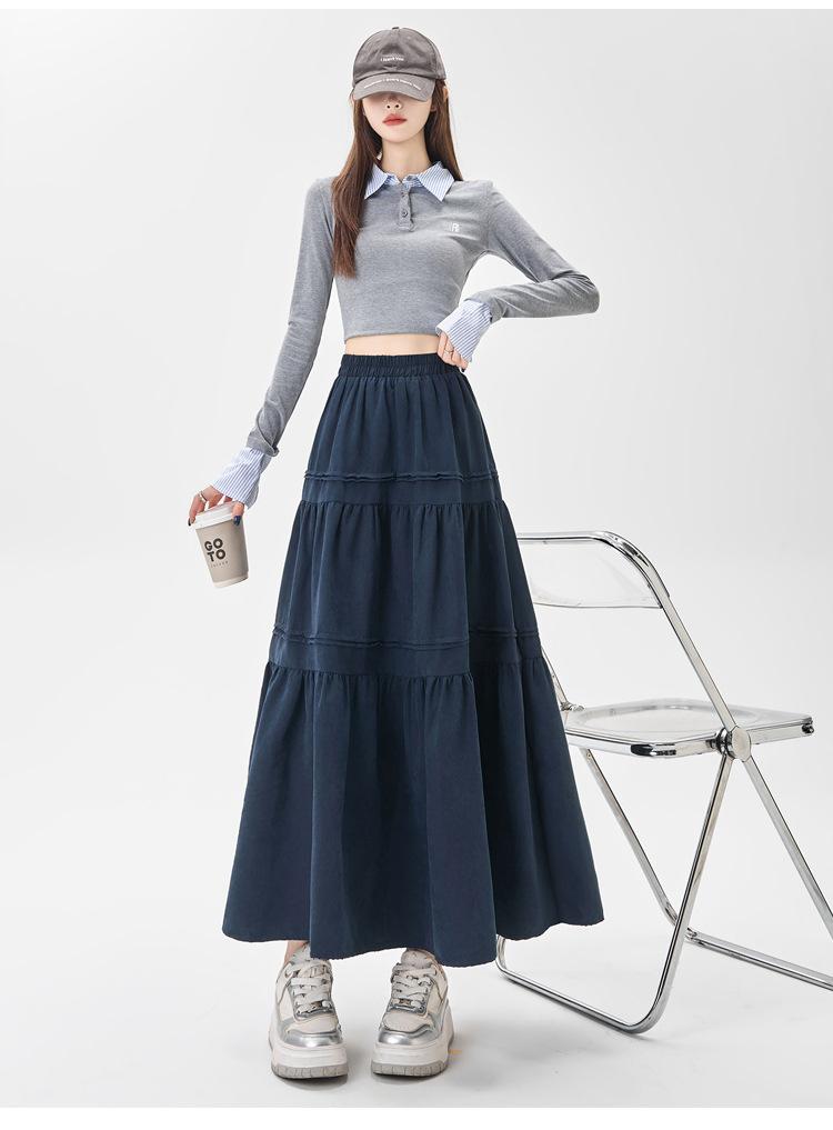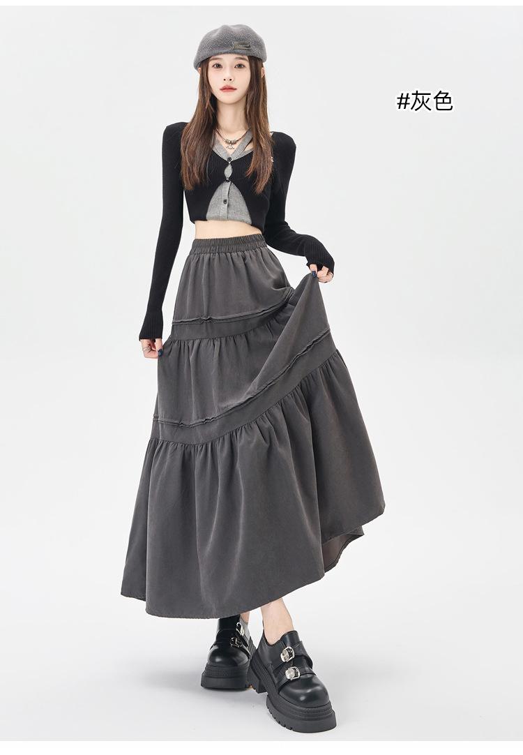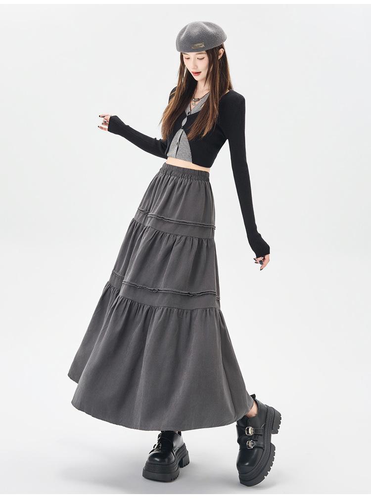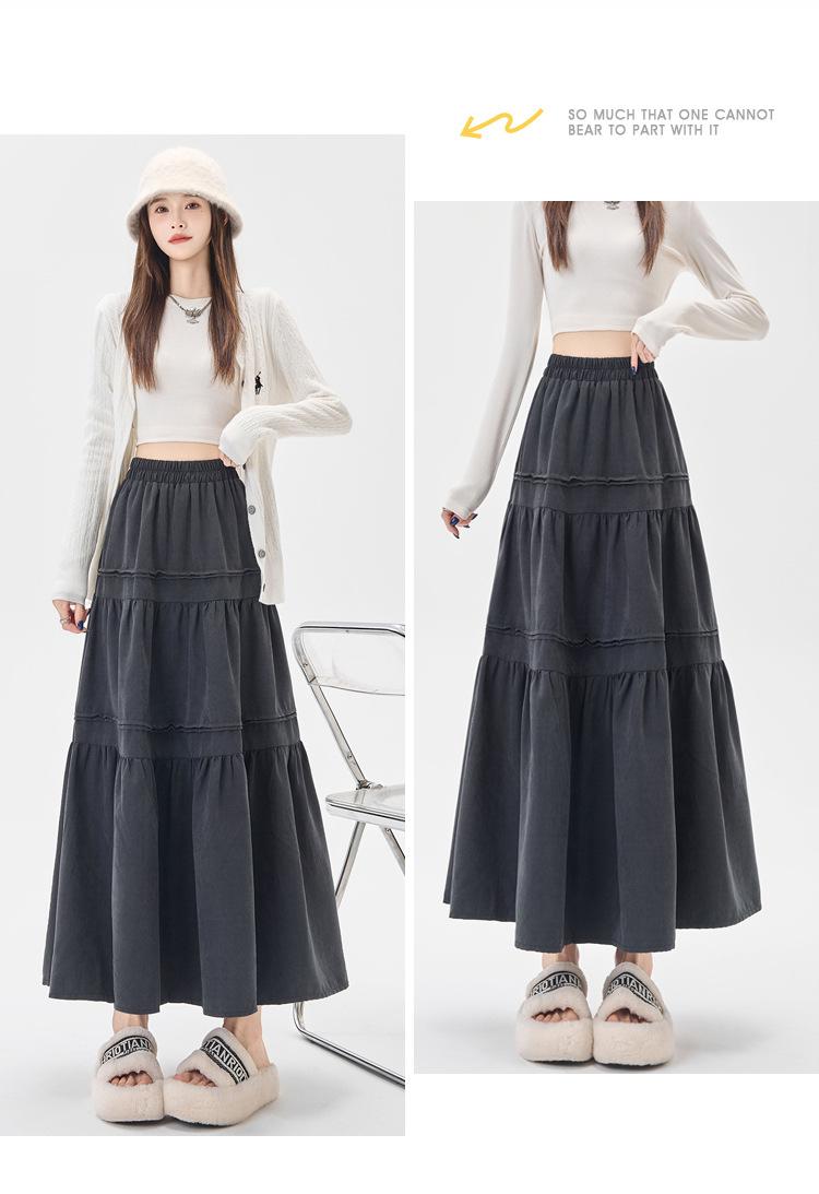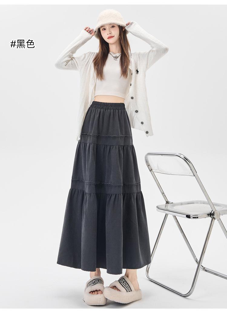 Falda Midi de Pastel Patchwork Plisada Tendencia de Moda Femenina 2025 Otoño Cintura Alta Adelgazante Largo Medio Falda Abullonada Falda Paraguas de Vuelo Completo